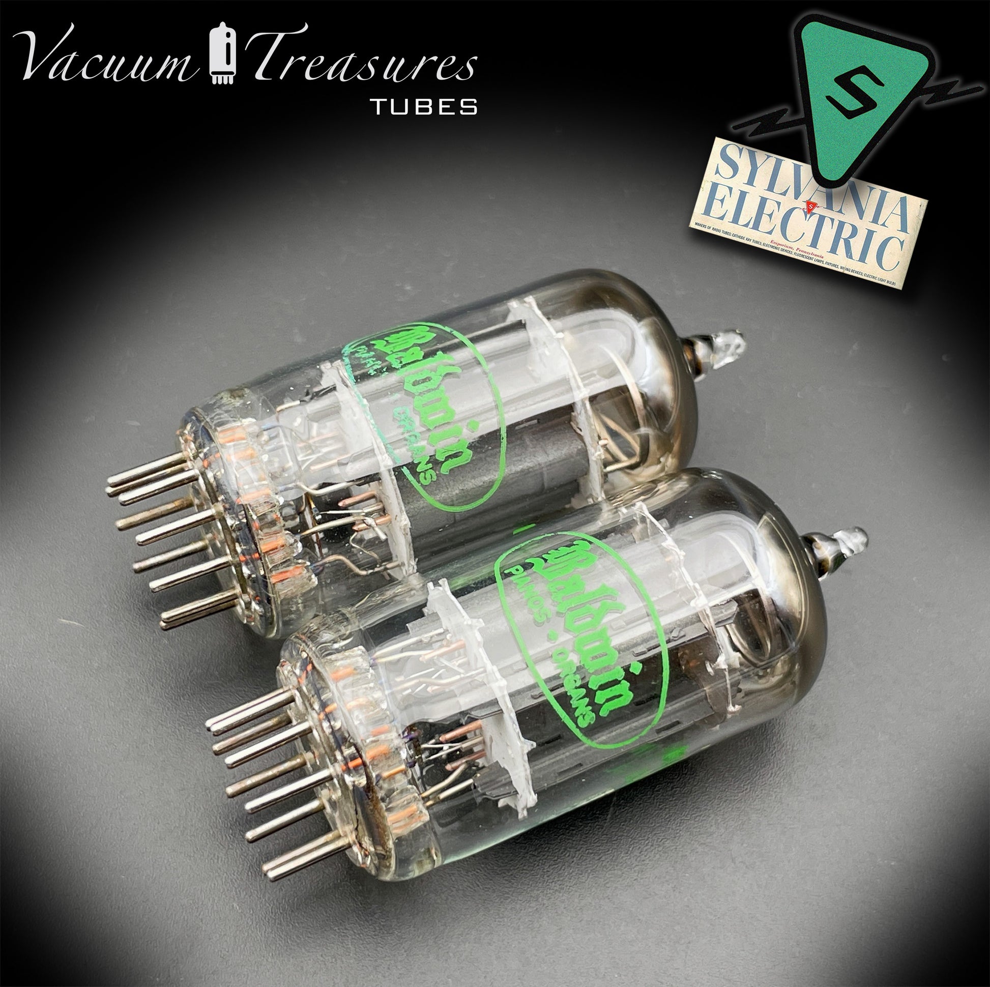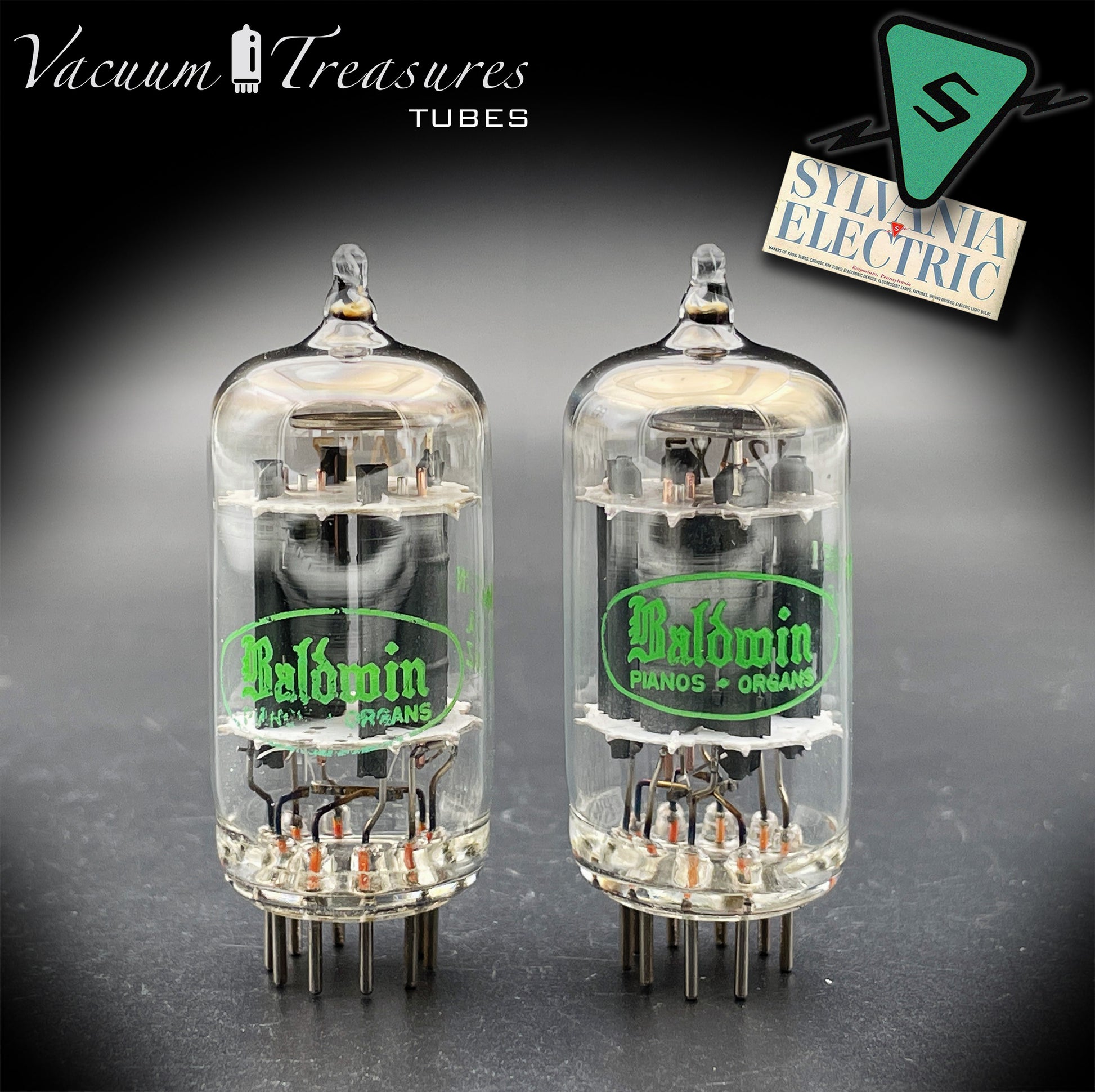 12AX7 / ECC83 Baldwin by Sylvania Matched Pair Long Gray Plates Halo Getter Made in USA