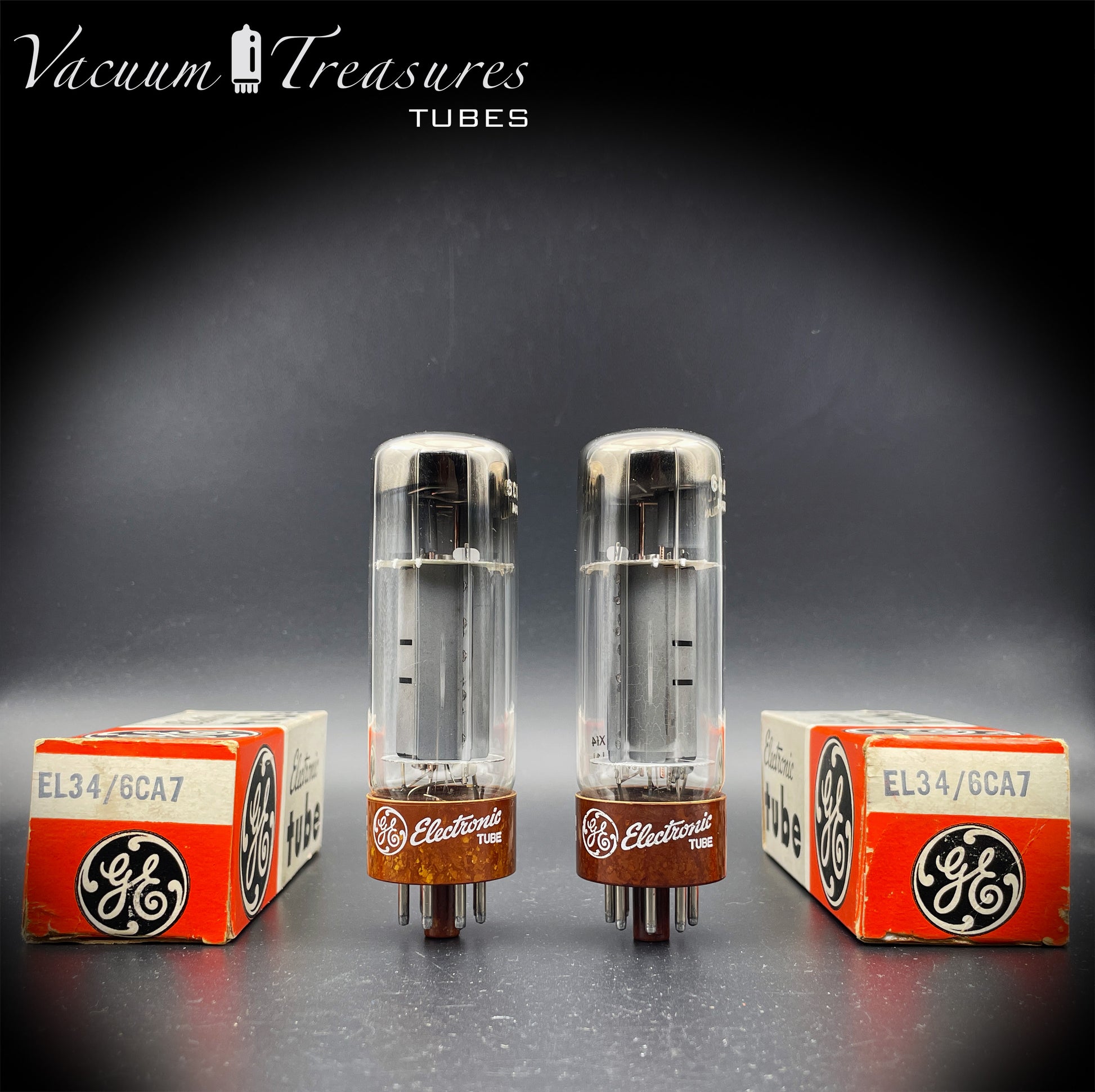 6CA7 ( EL34 ) GE Xf4 Philips/MBLE Brown Base DD-Getter NOS NIB Matched Pair Made in Holland '61