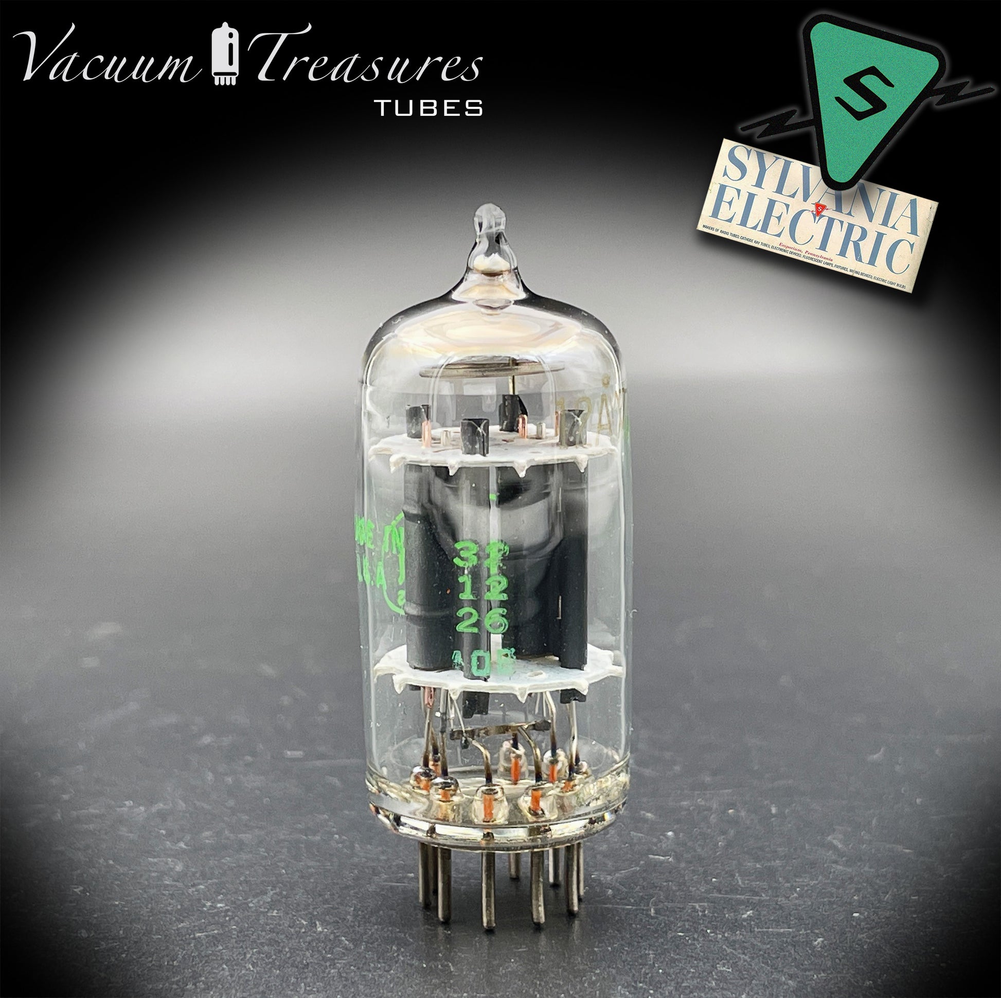 12AX7 ( ECC83 ) Baldwin by SYLVANIA Long Gray plates Halo Getter Tested Tube Made in USA