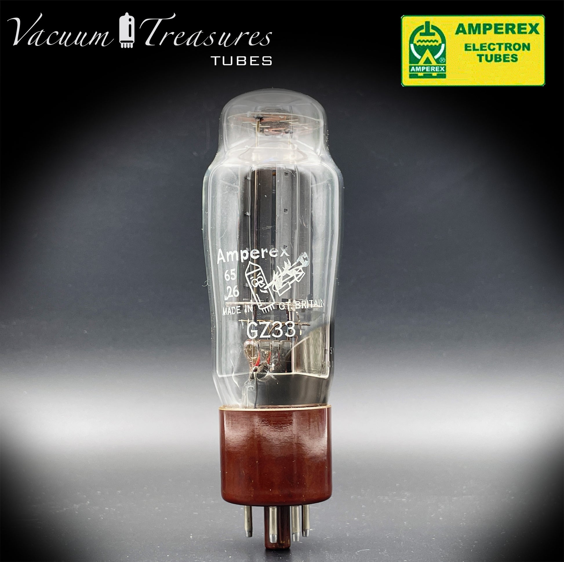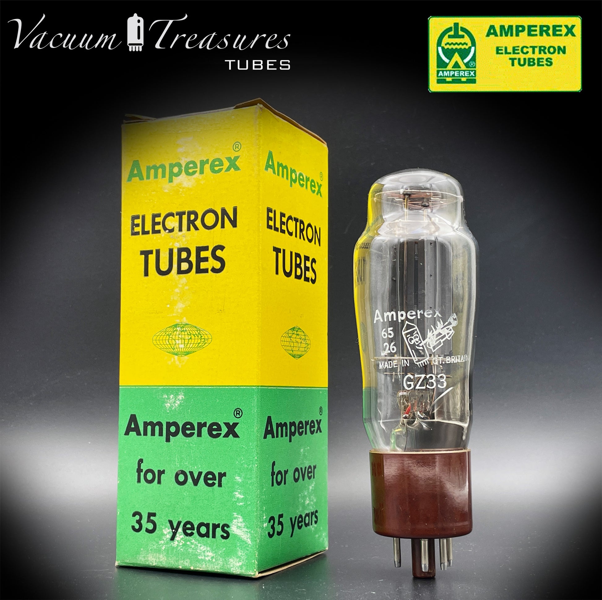 The Mullard GZ33 is one of the most respected rectifiers in audio: hard to find, even rarer if marked Amperex Bugle Boy . This example, although used , has very strong test values and a well-preserved aesthetic. An excellent choice for those who want original Mullard performance , at a more affordable price than a NOS NIB.
