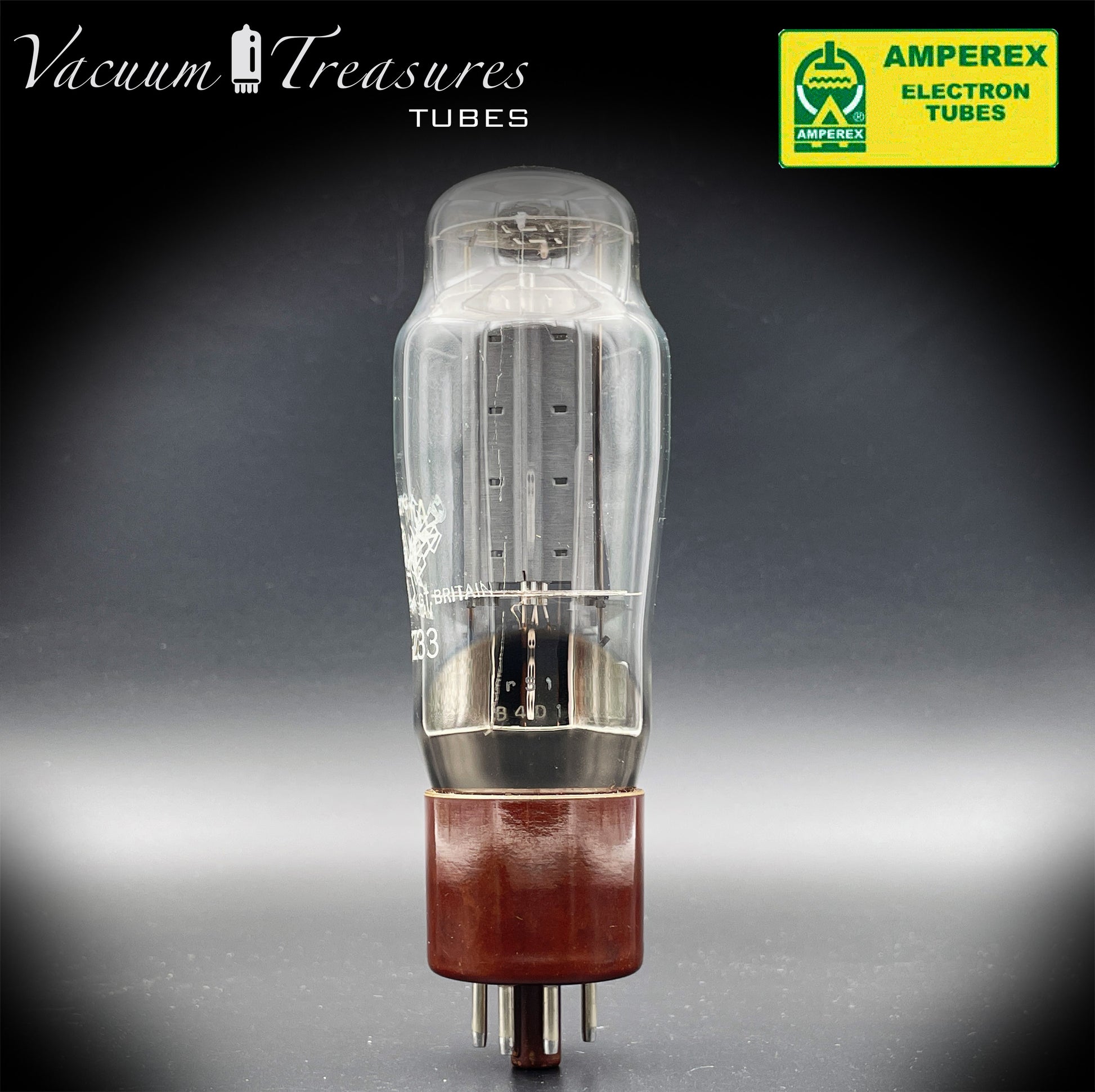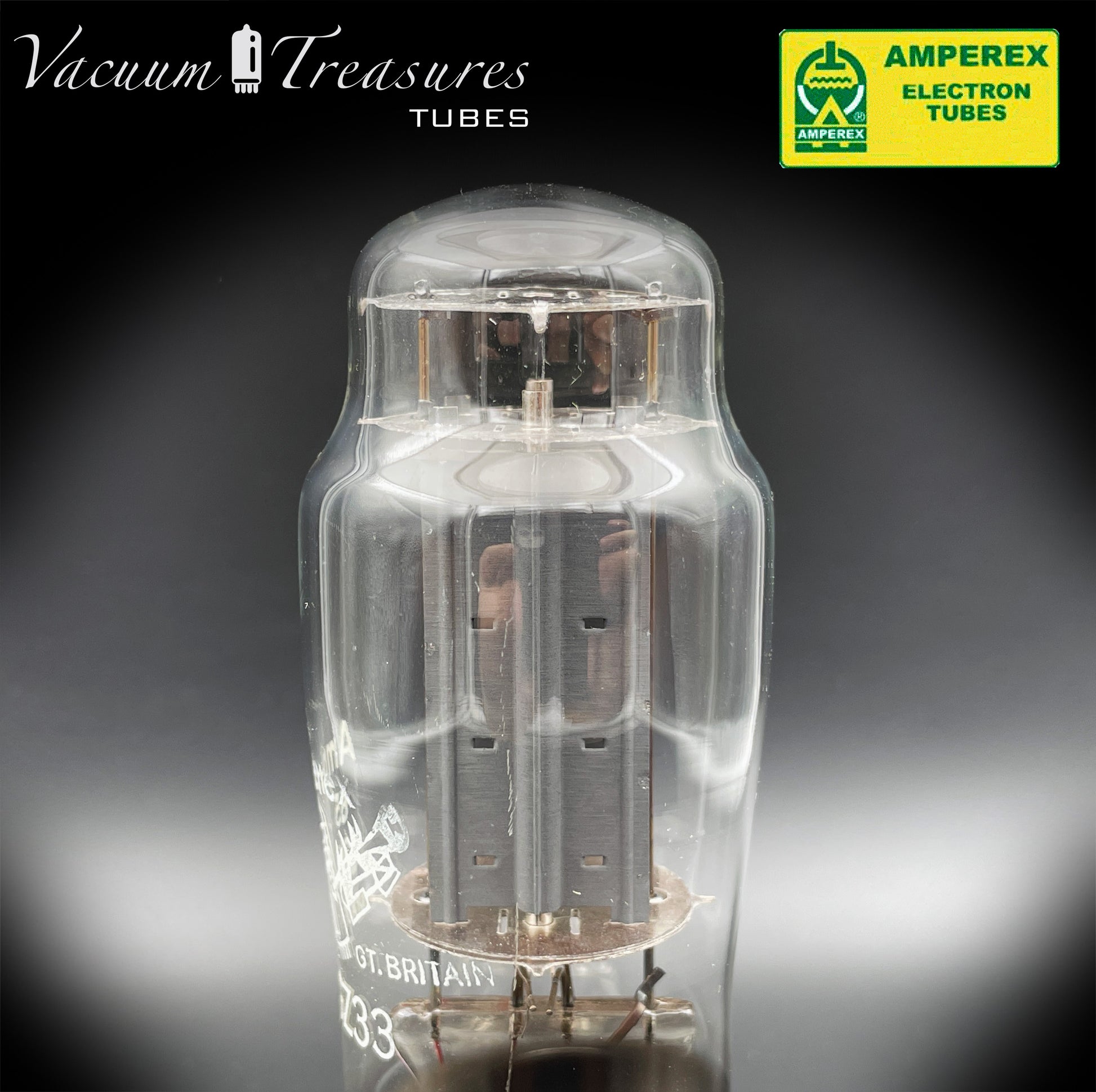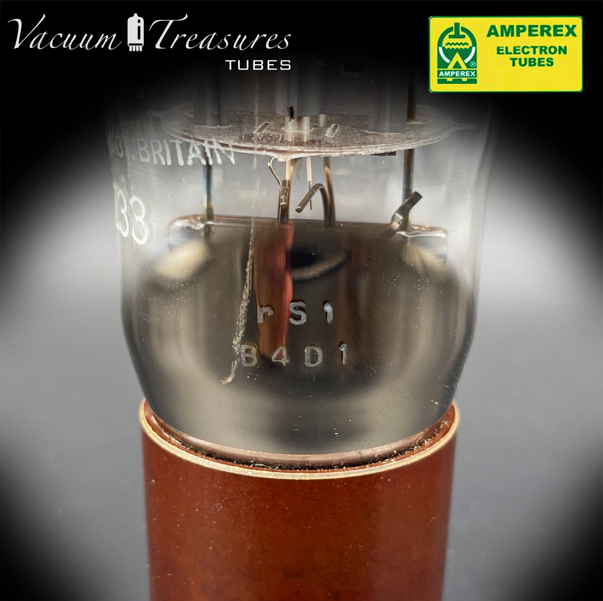 The internal structure is the classic one of the best British GZ33s: ring-shaped getter (halo getter) , generous black plates , robust construction, thick, slightly burnished glass. The Bugle Boy branding is still clearly visible, confirming the authenticity of the Mullard production for Amperex.