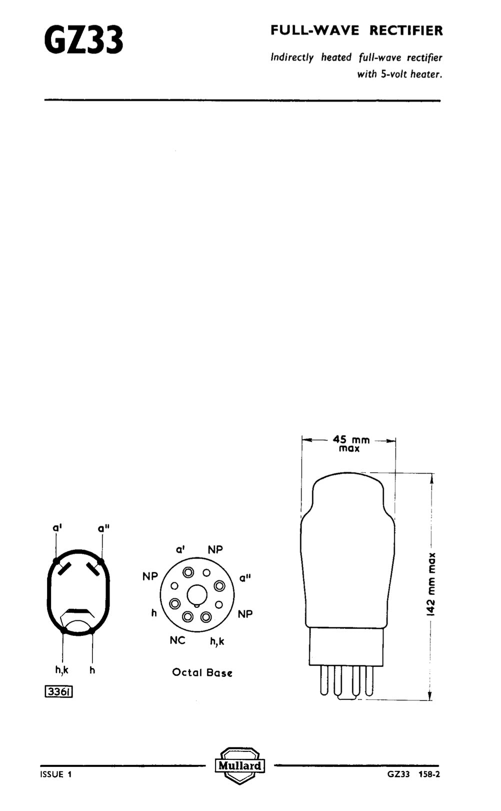The GZ33 is a rare but excellent choice for boutique applications, such as custom guitar or bass amplifiers with point-to-point architecture. It is less compressed than the GZ34, providing greater headroom while maintaining definition even on clean or crunch sounds.