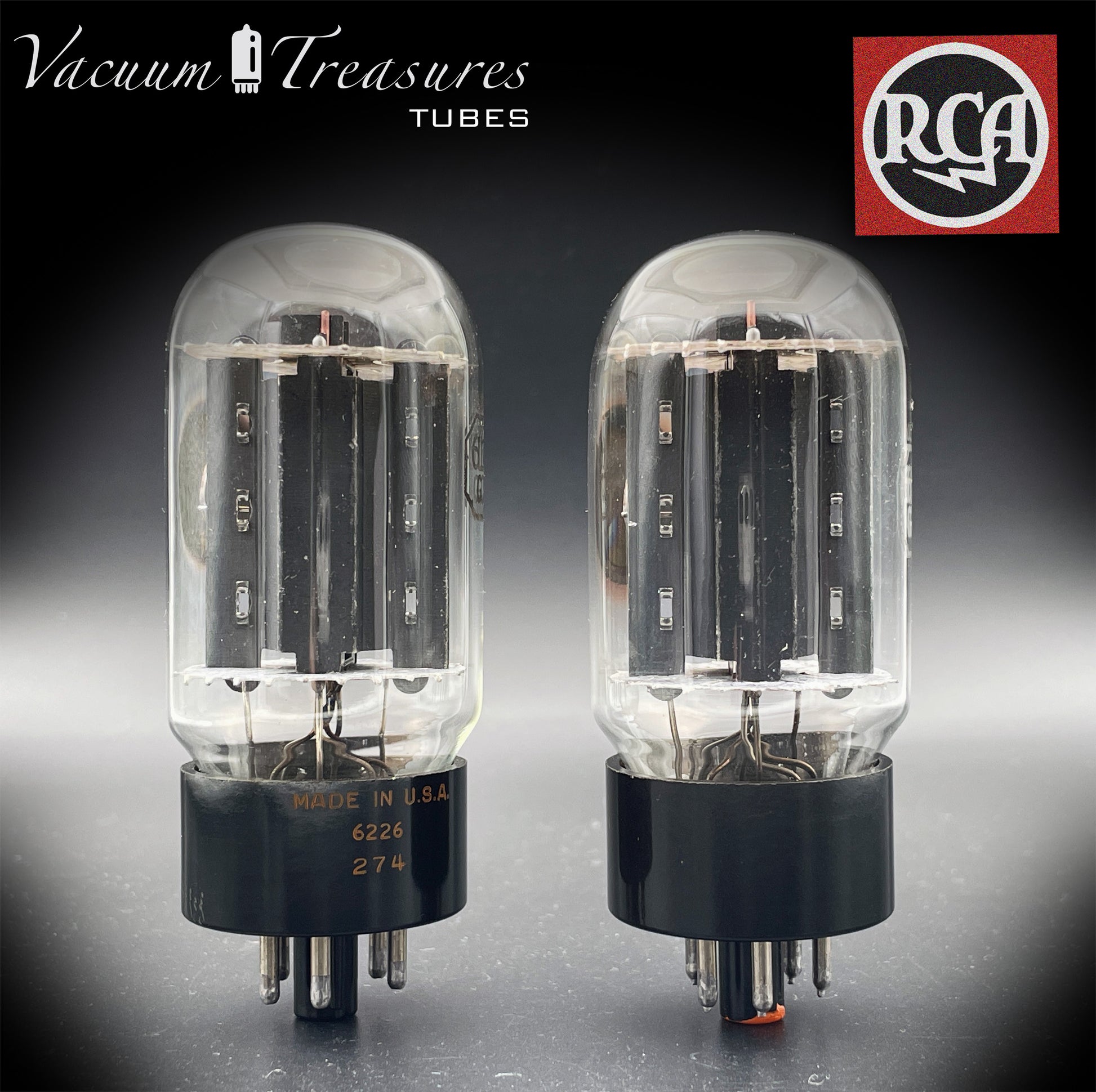 6L6GC RCA Black Plates Side Halo Getter – AMPLITREX Matched Pair – Made in USA – Like NOS
