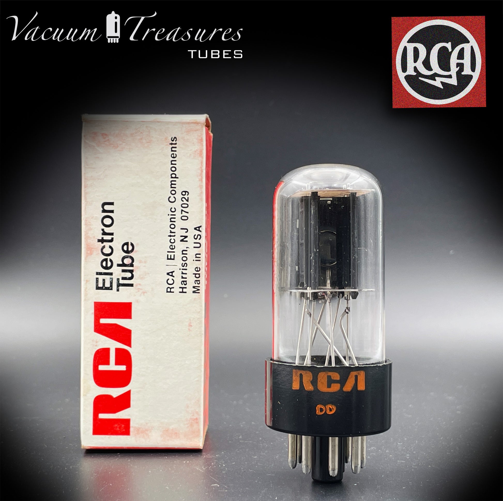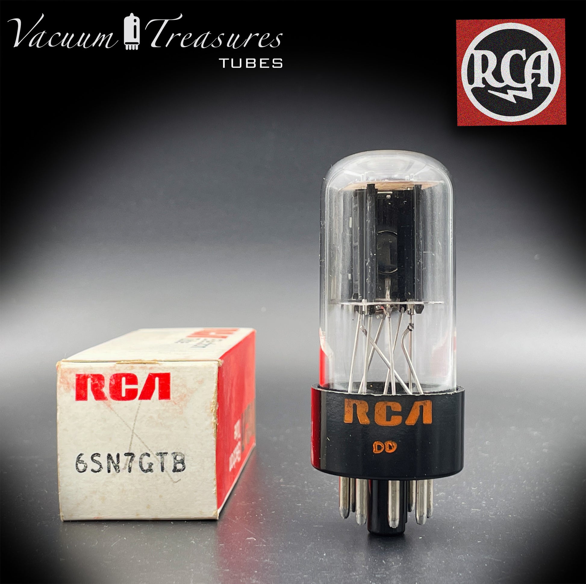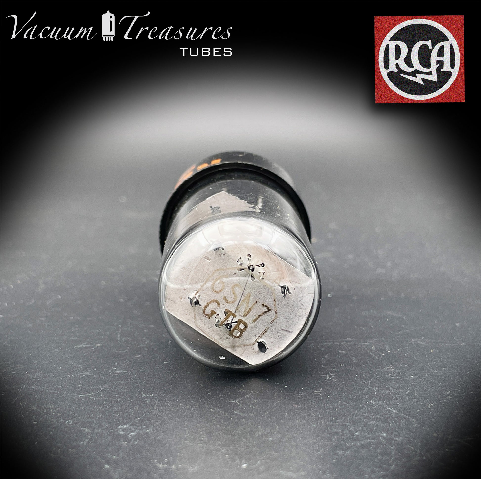 6SN7GTB NOS NIB RCA – Black Plates Halo Getter Tested Tube USA 1970