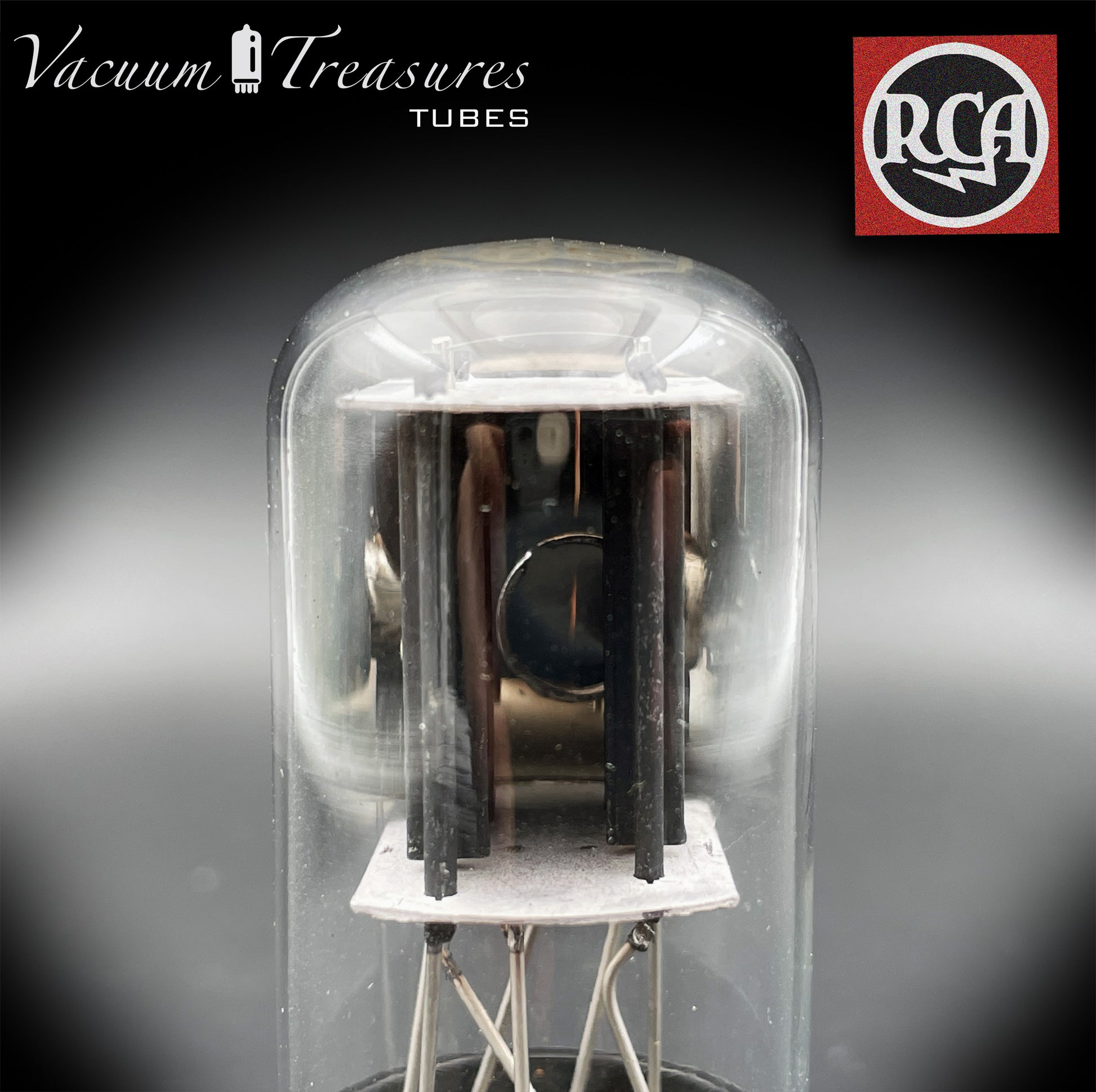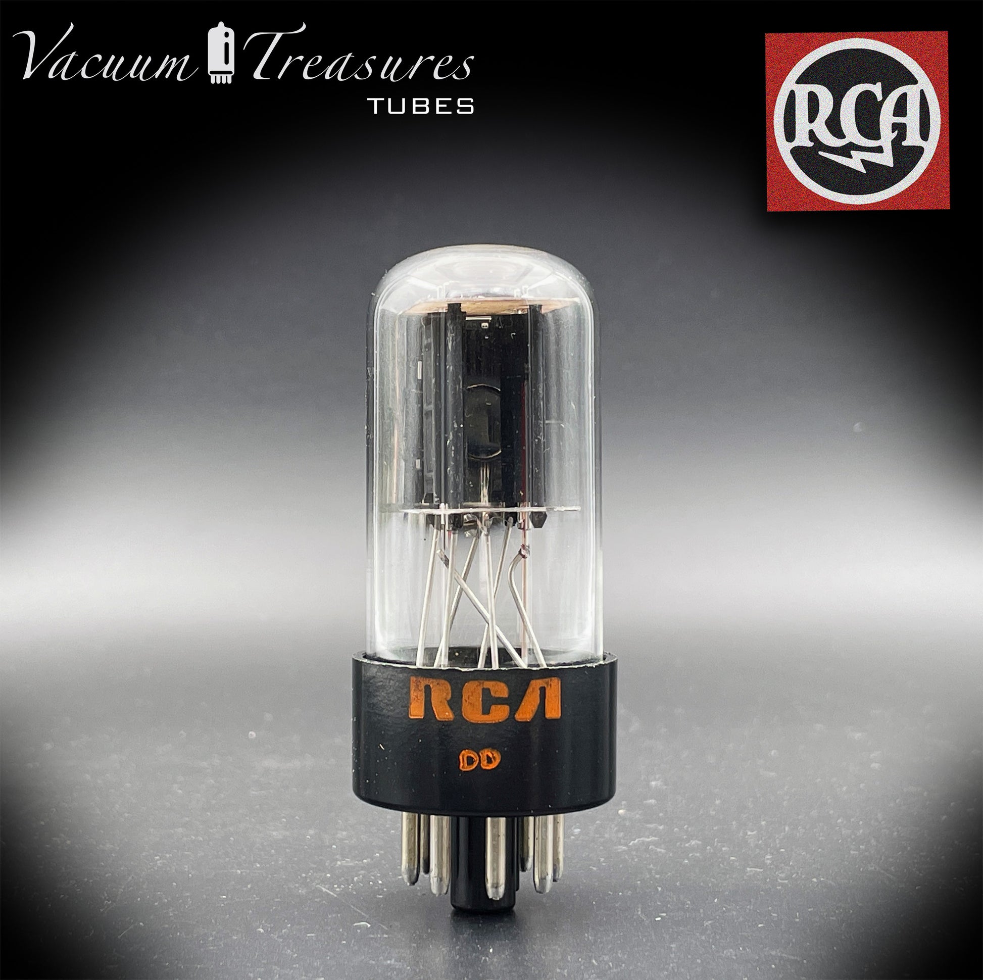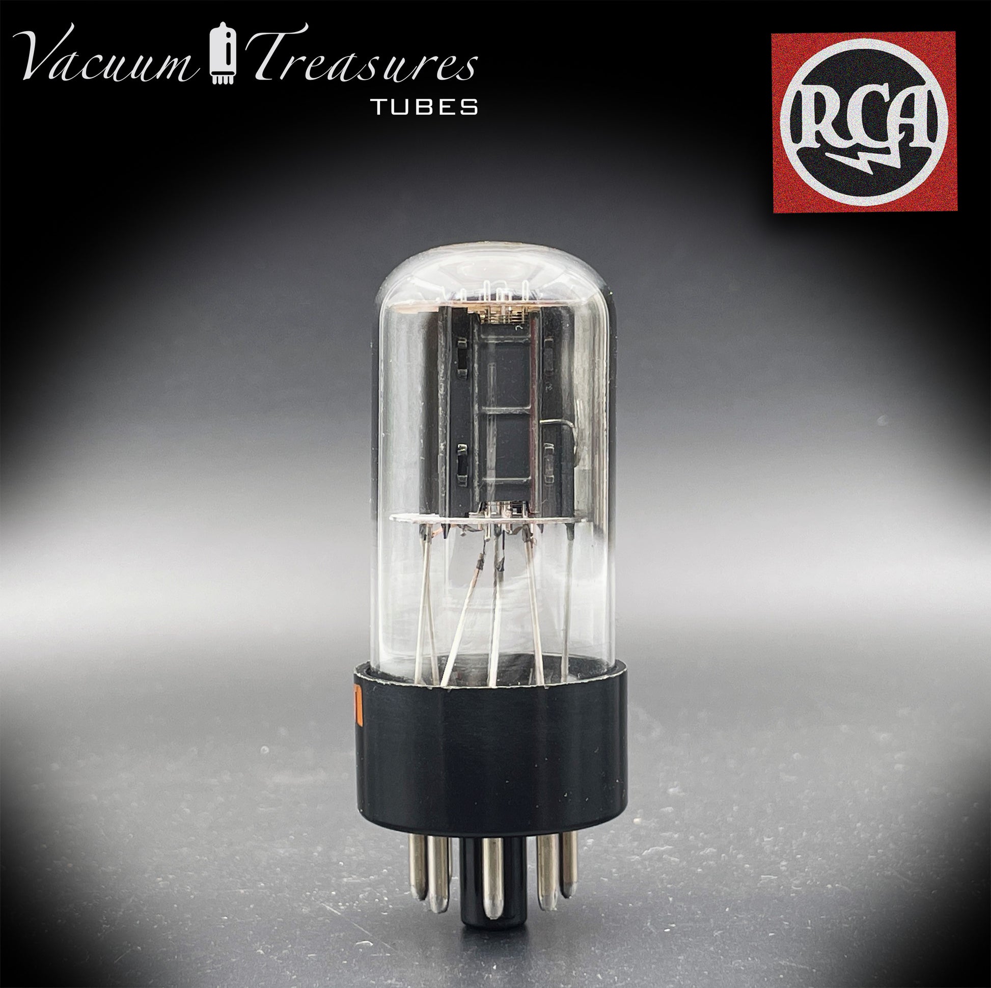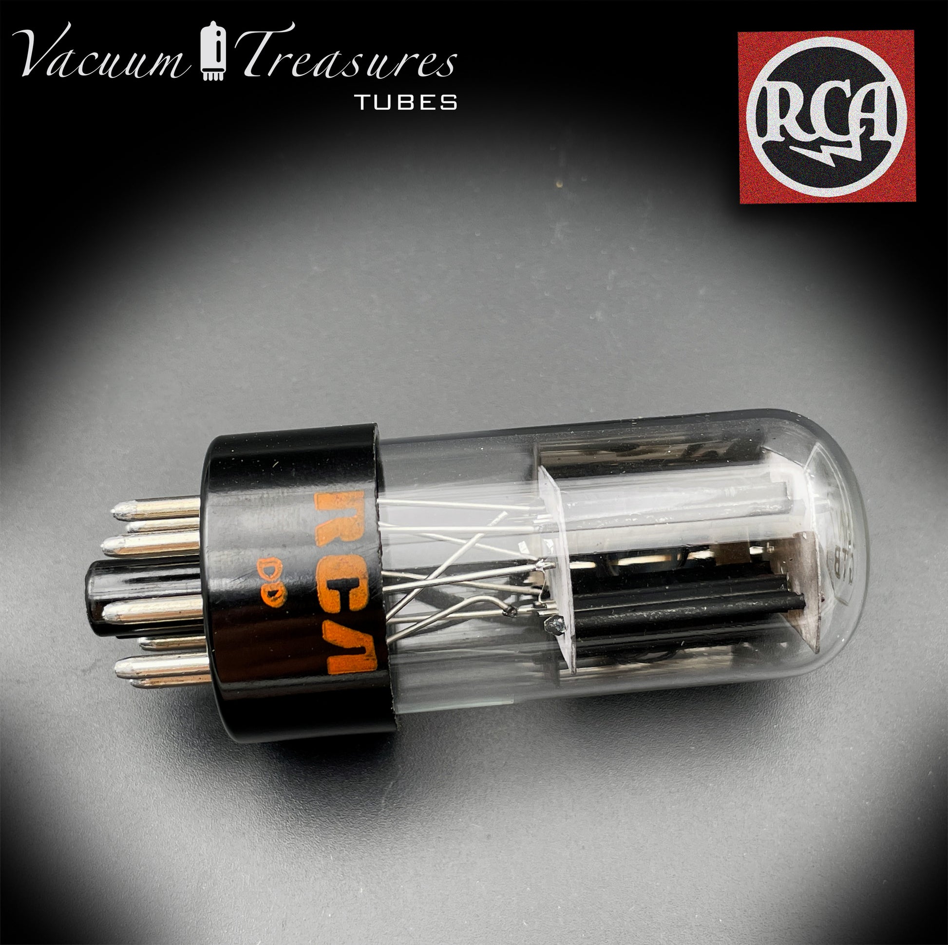 6SN7GTB NOS NIB RCA – Black Plates Halo Getter Tested Tube USA 1970