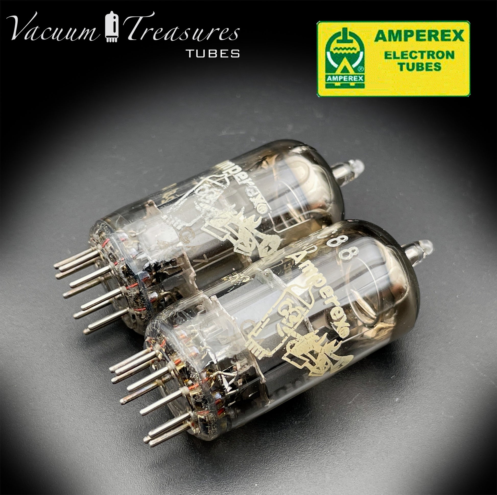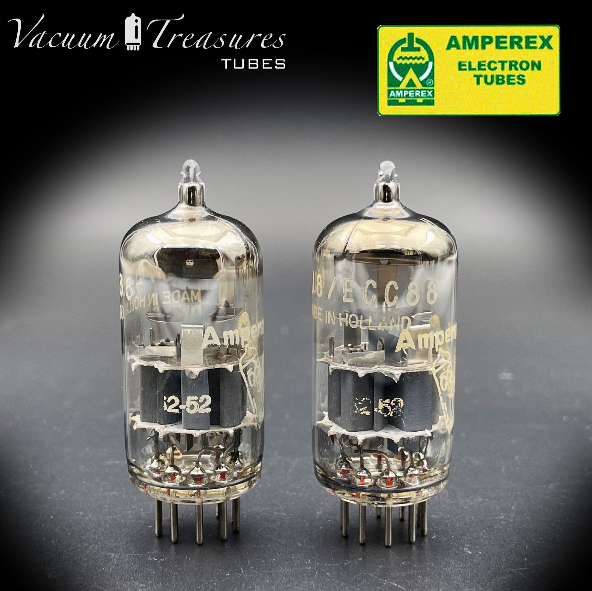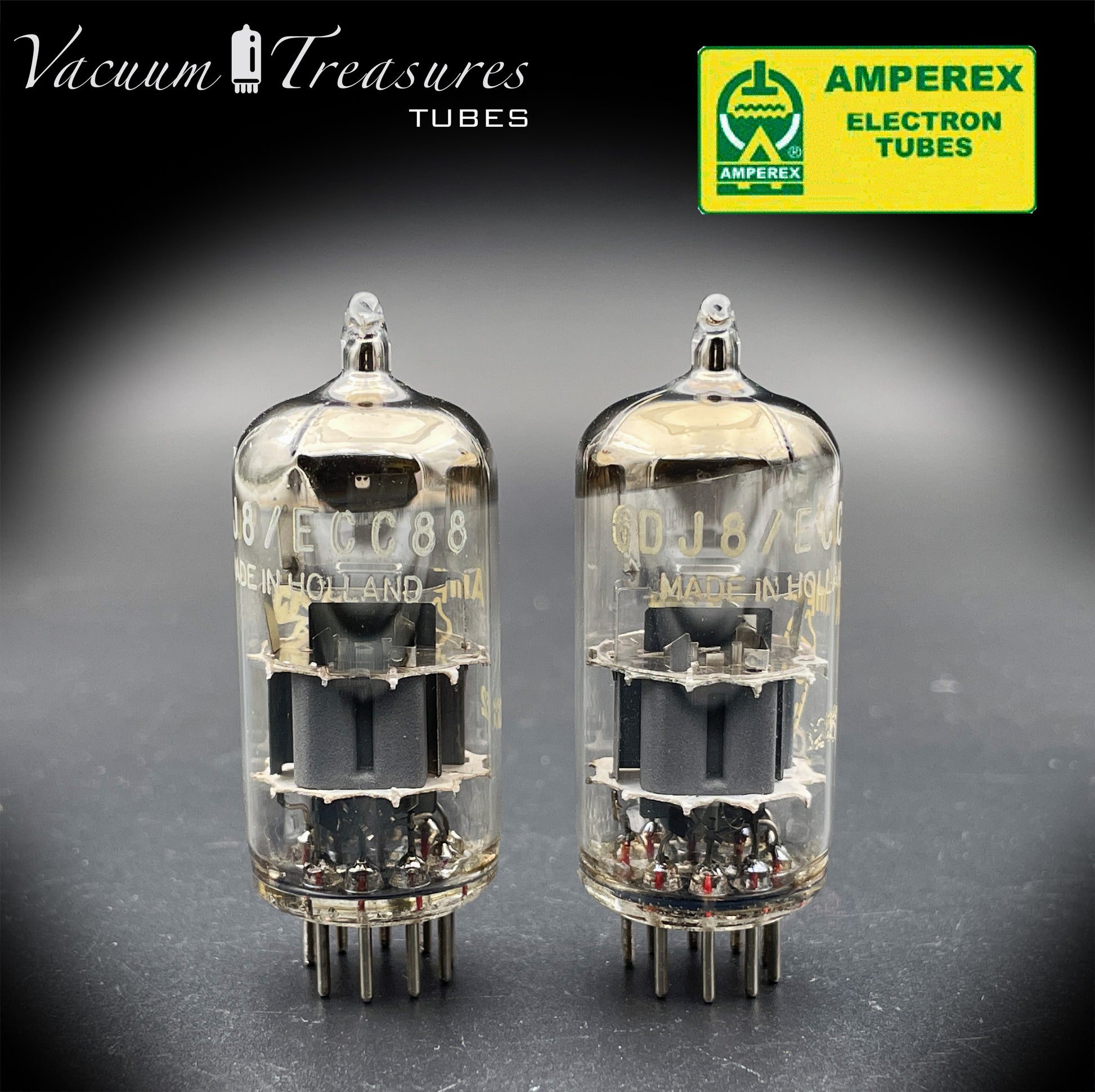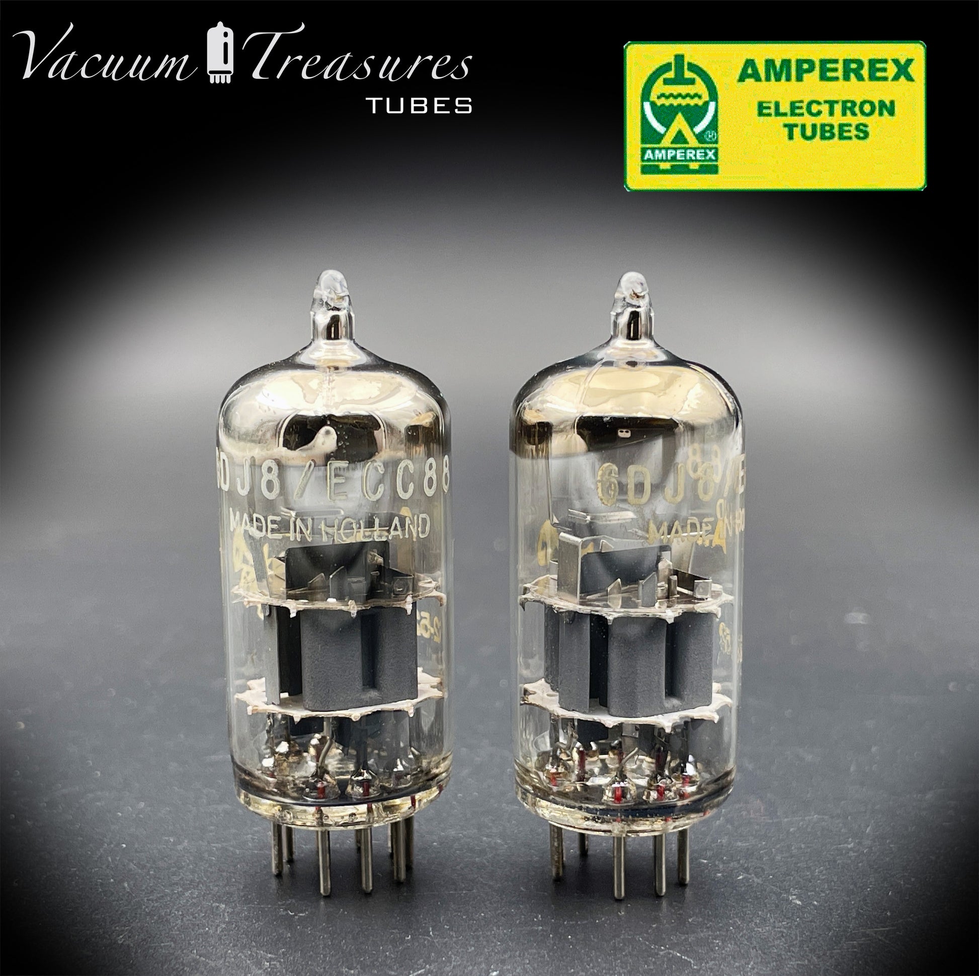 The pair of ECC88 (6DJ8) Amperex Bugle Boy tubes produced in 1962 at the Philips factory in Heerlen, Netherlands are considered one of the finest versions of this low-noise tube ever made, both in the audiophile and professional fields.