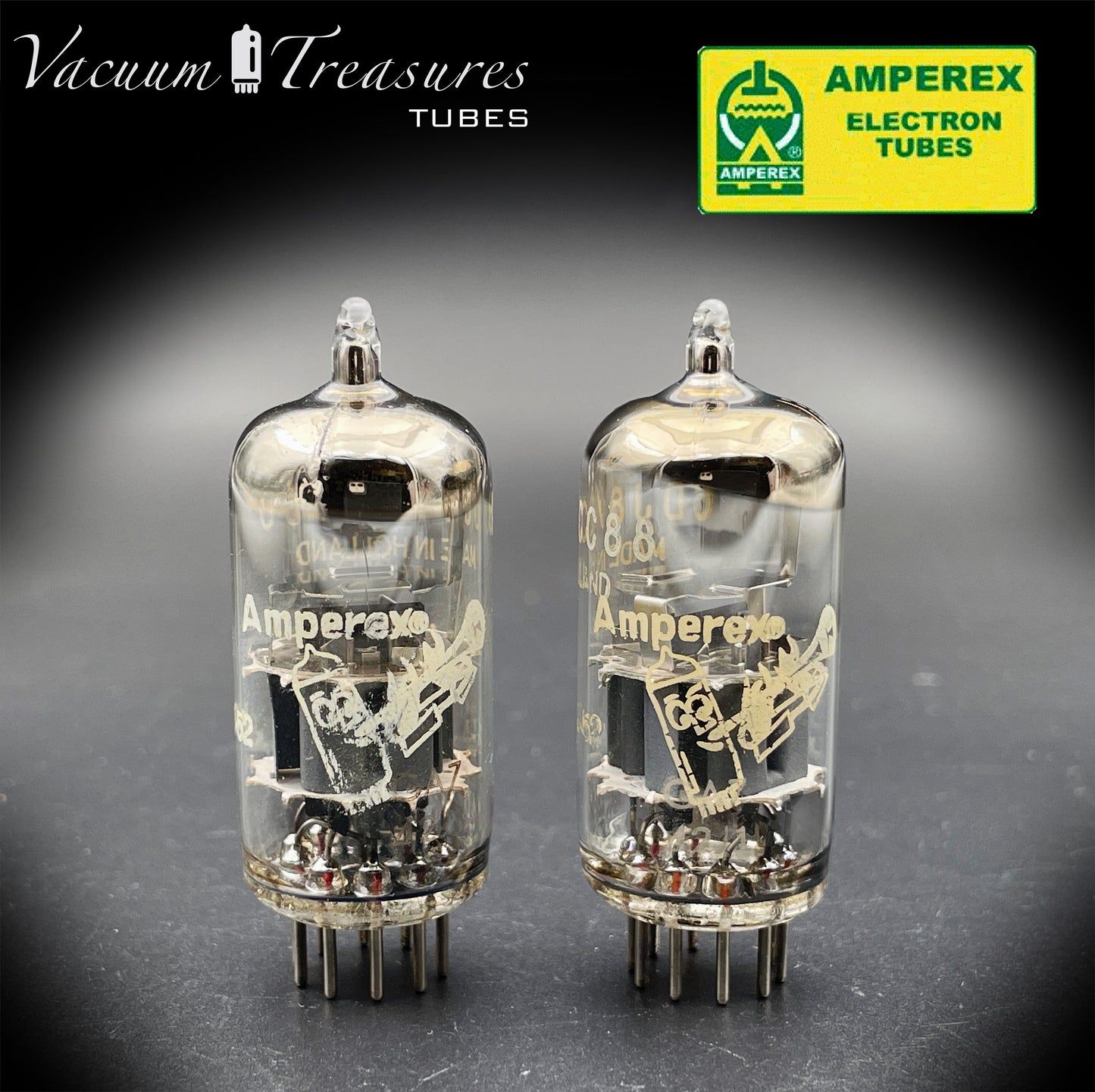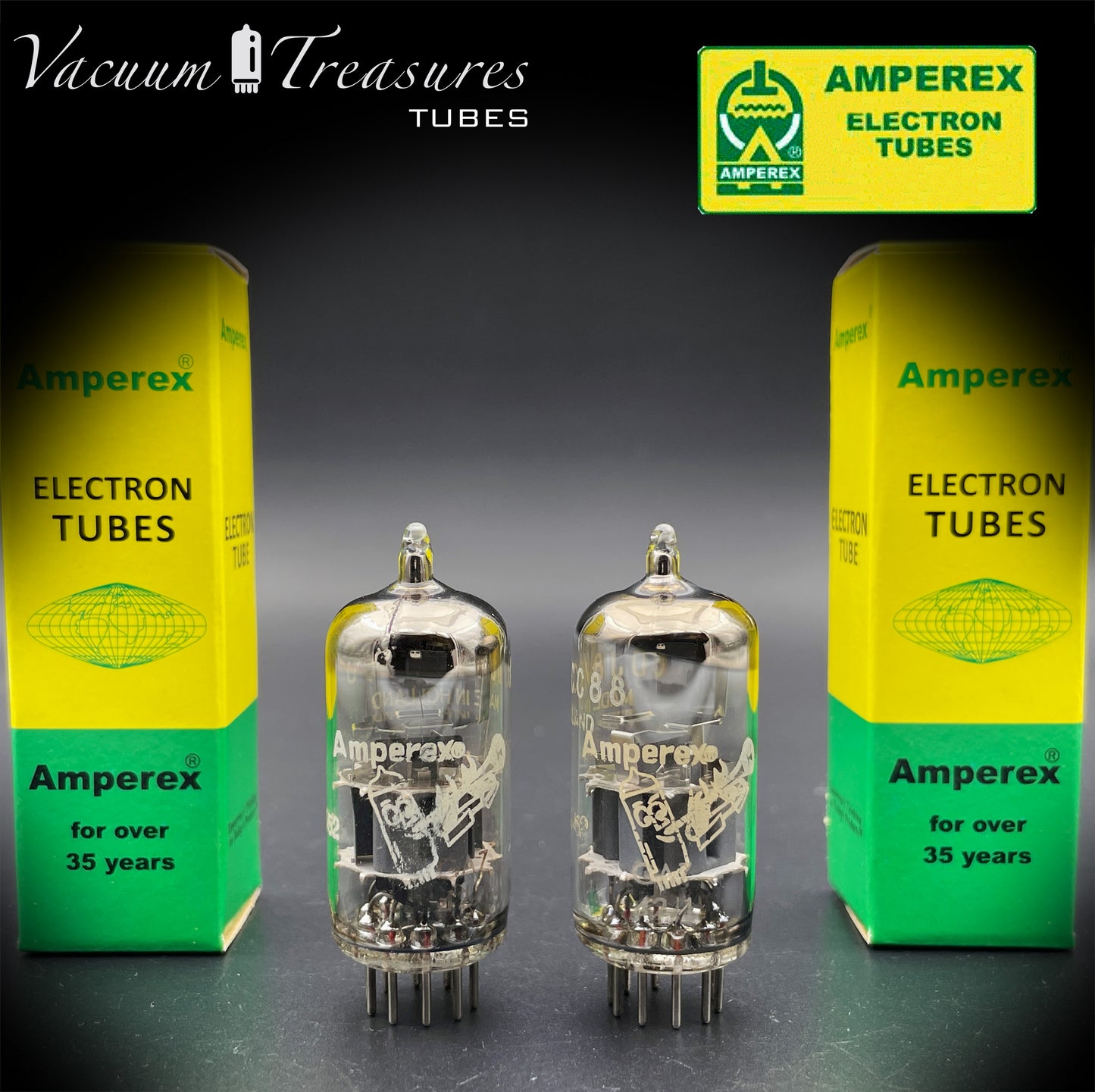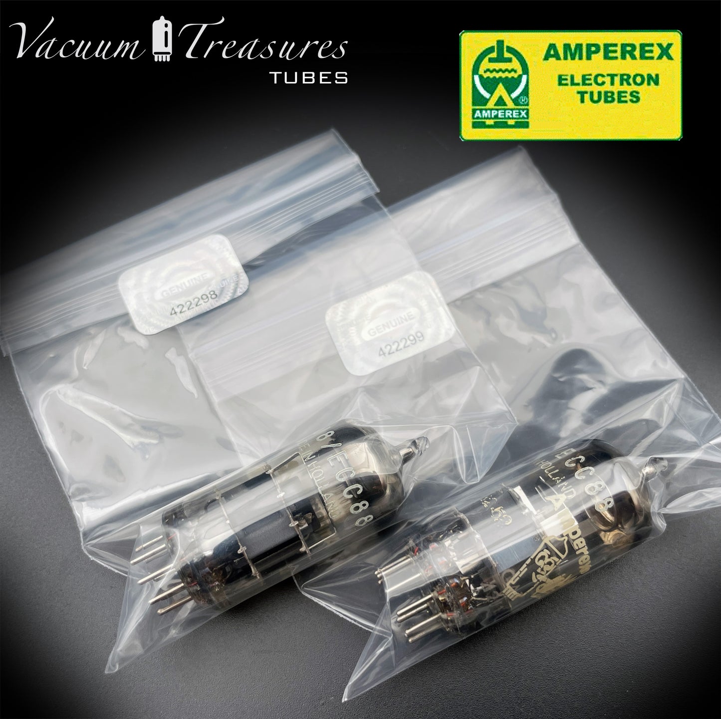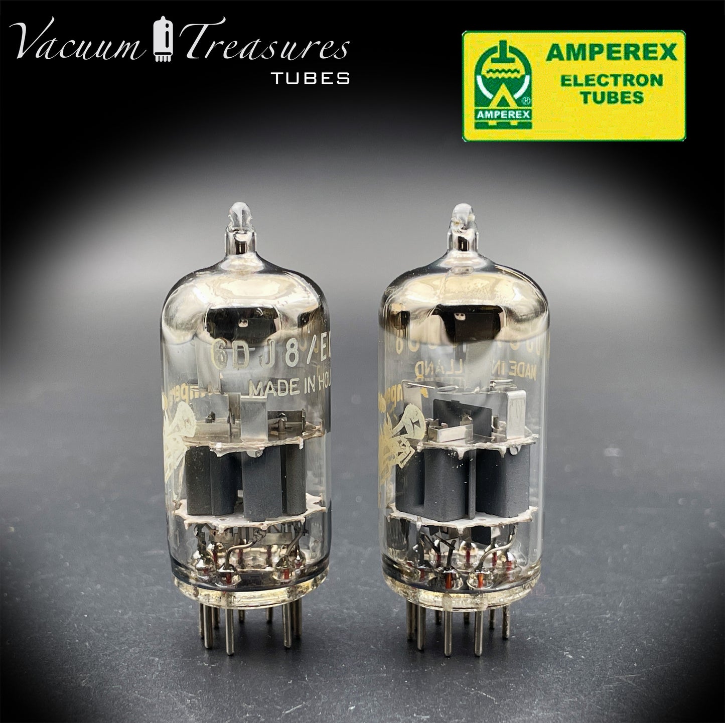 The pair of ECC88 (6DJ8) Amperex Bugle Boy tubes produced in 1962 at the Philips factory in Heerlen, Netherlands are considered one of the finest versions of this low-noise tube ever made, both in the audiophile and professional fields.