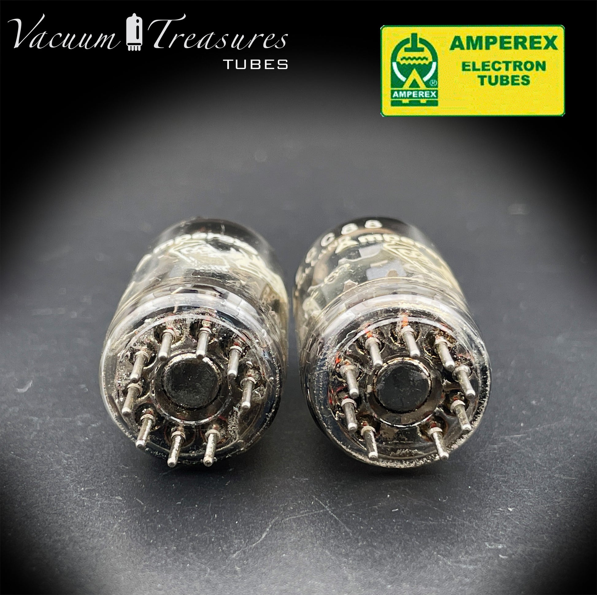 ECC88 ( 6DJ8 ) AMPEREX Bugle Boy Halo Getter Matched Pair Tubes Made in HOLLAND '62
