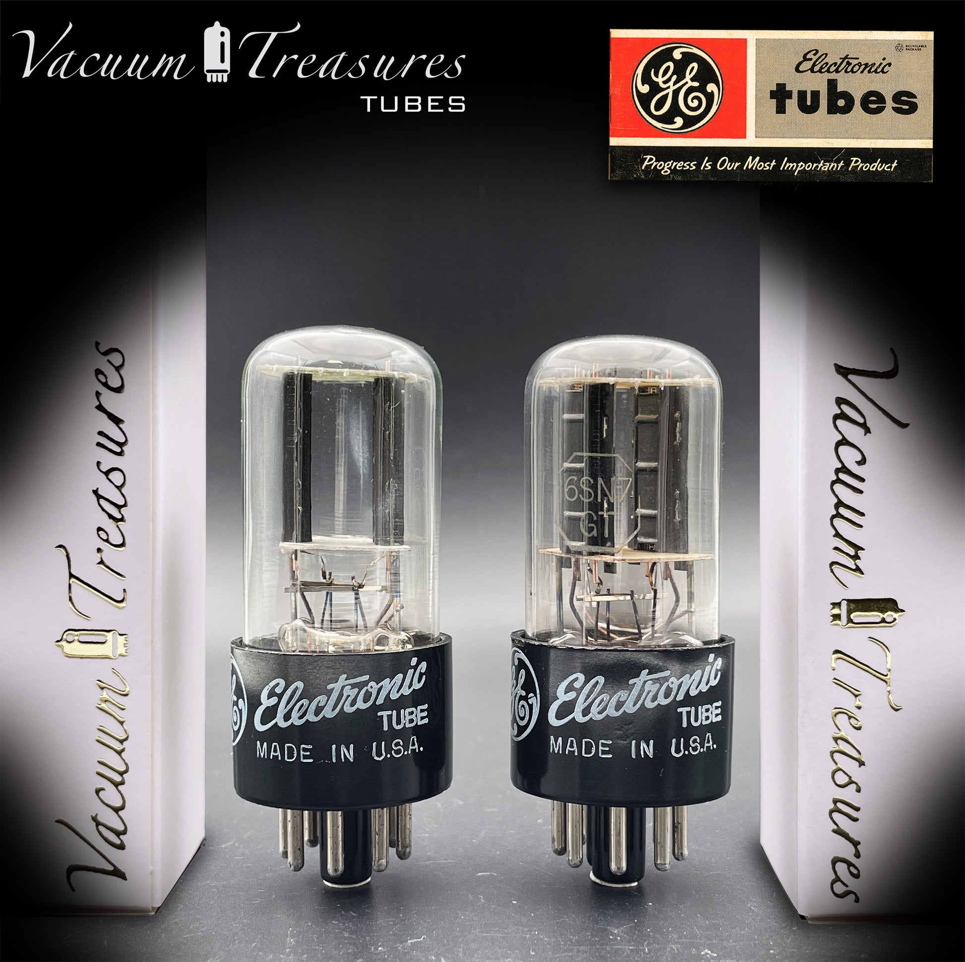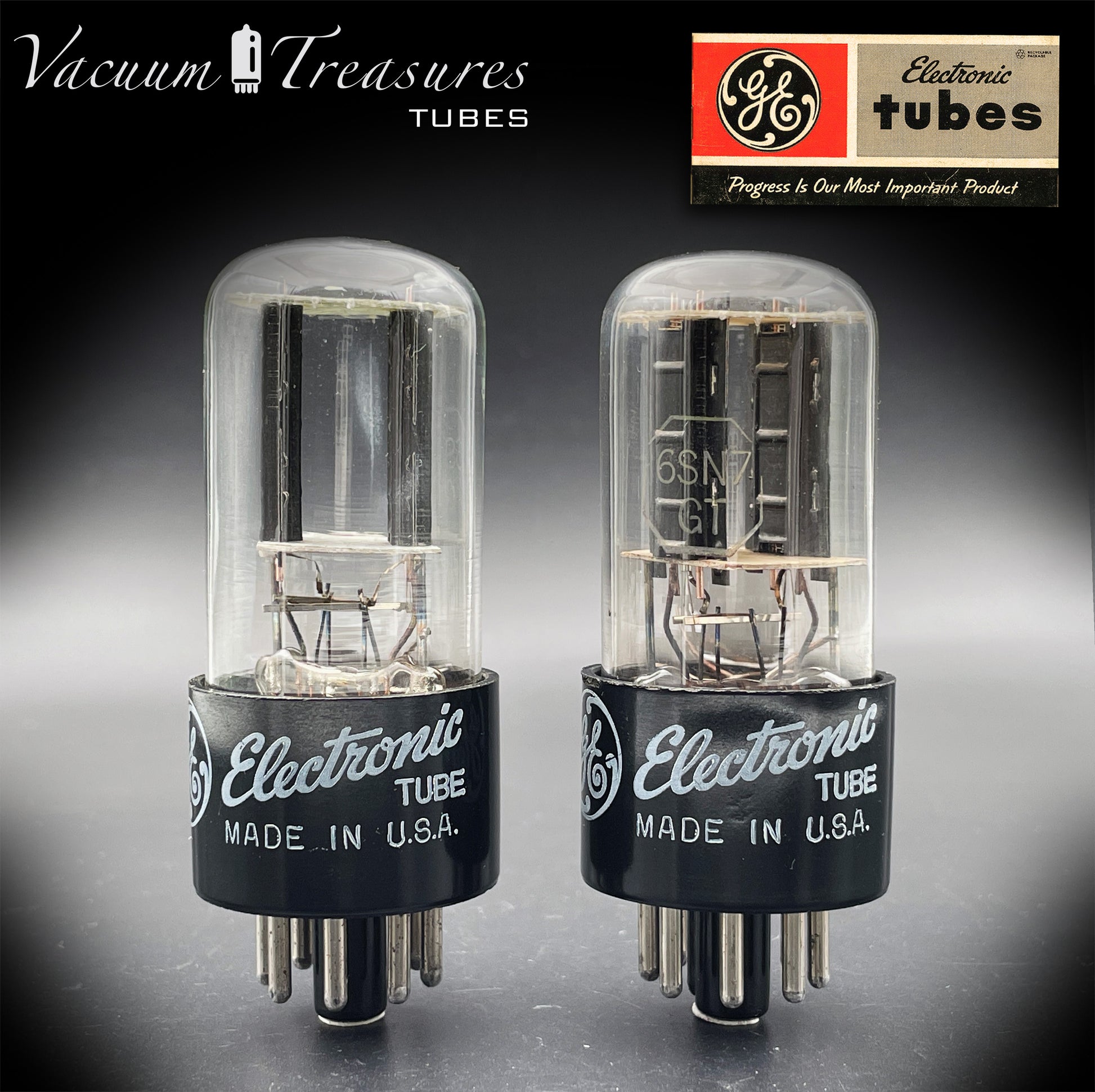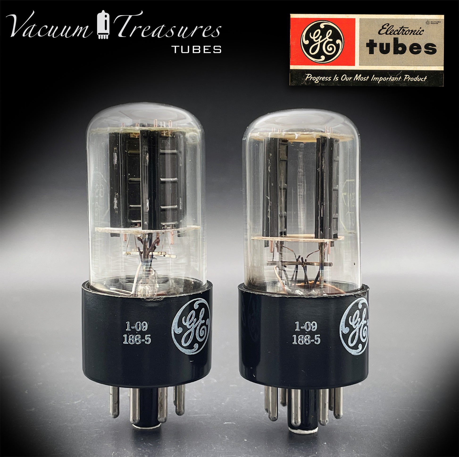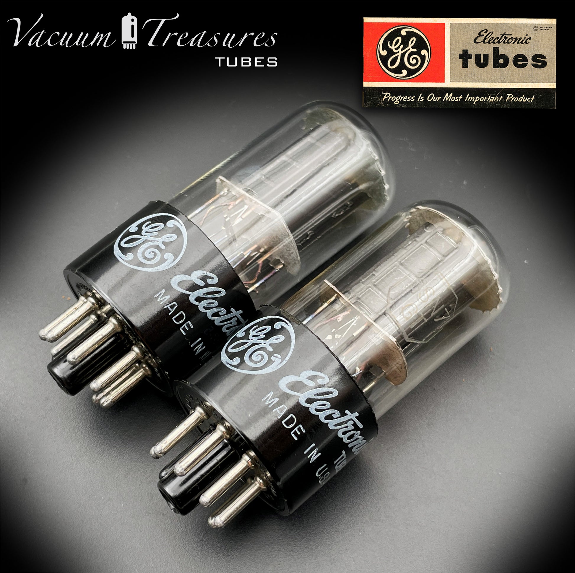 6SN7GT GE Black Plates Square Getter – Tested Pair – STRONG Issue – Made in USA '50s
