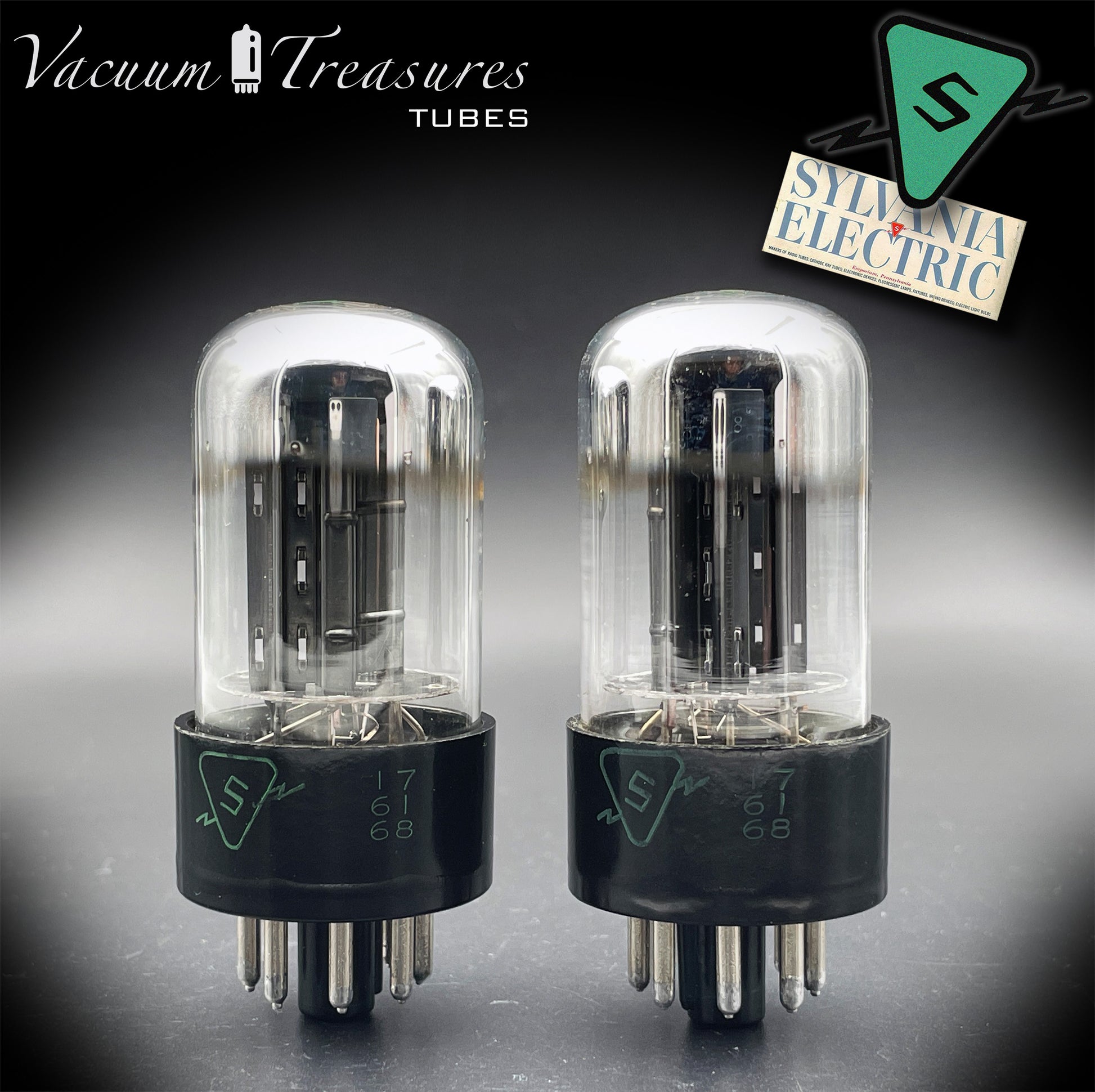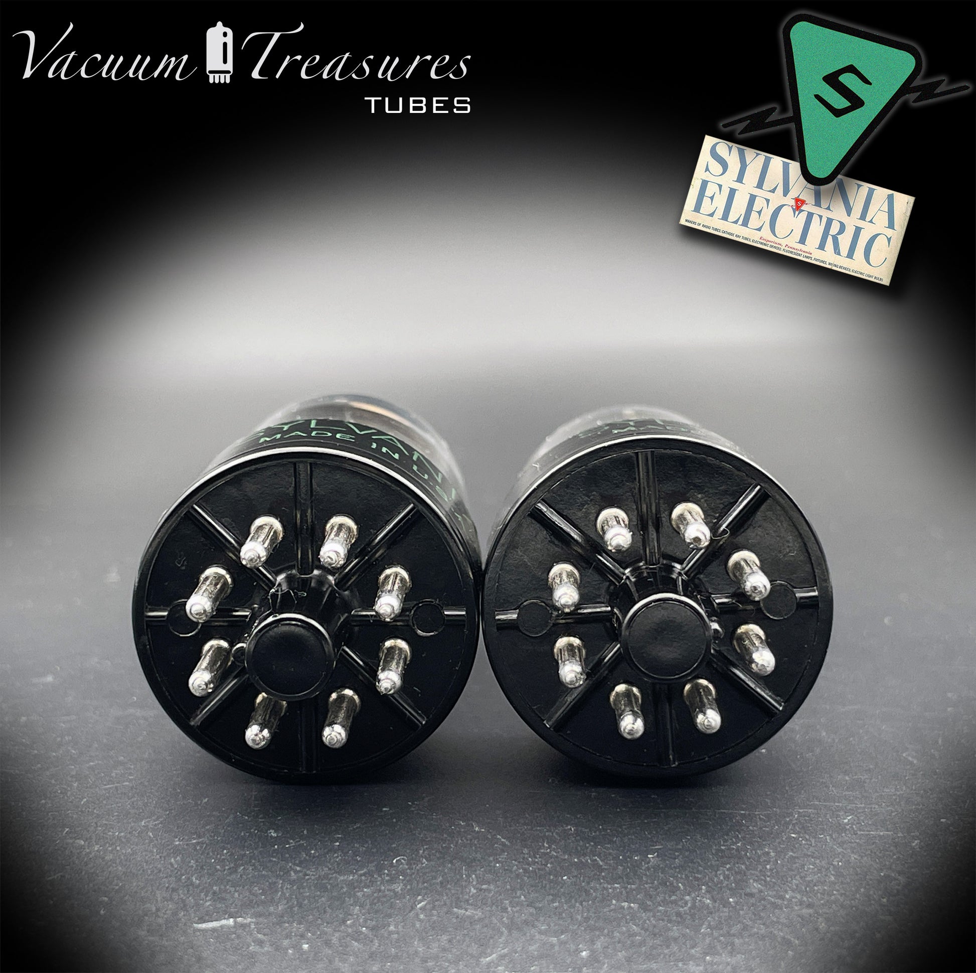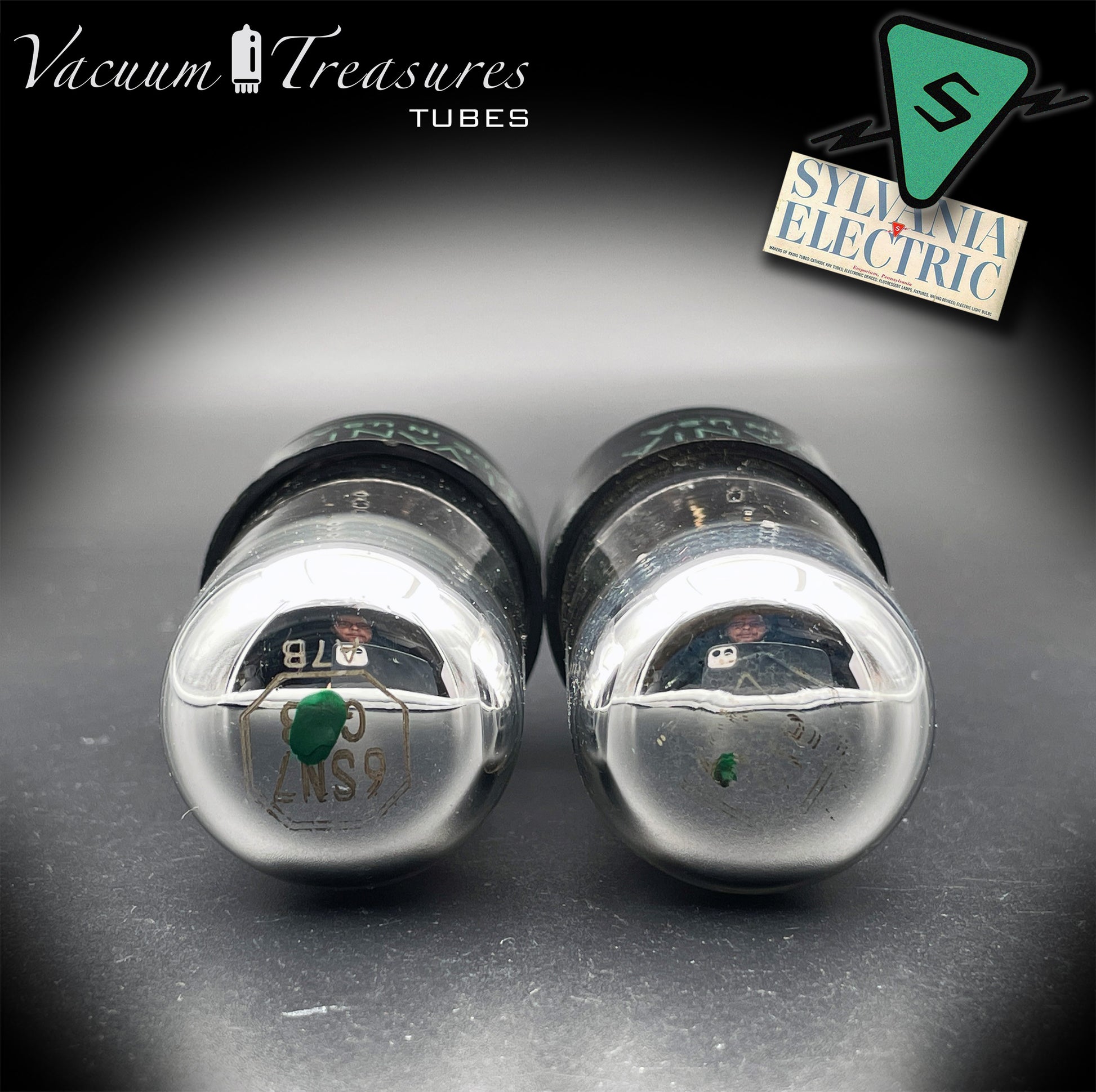 6SN7GTB NOS SYLVANIA CHROME TOP Green Dot Matched Pair Black Plates Tubes USA '50s