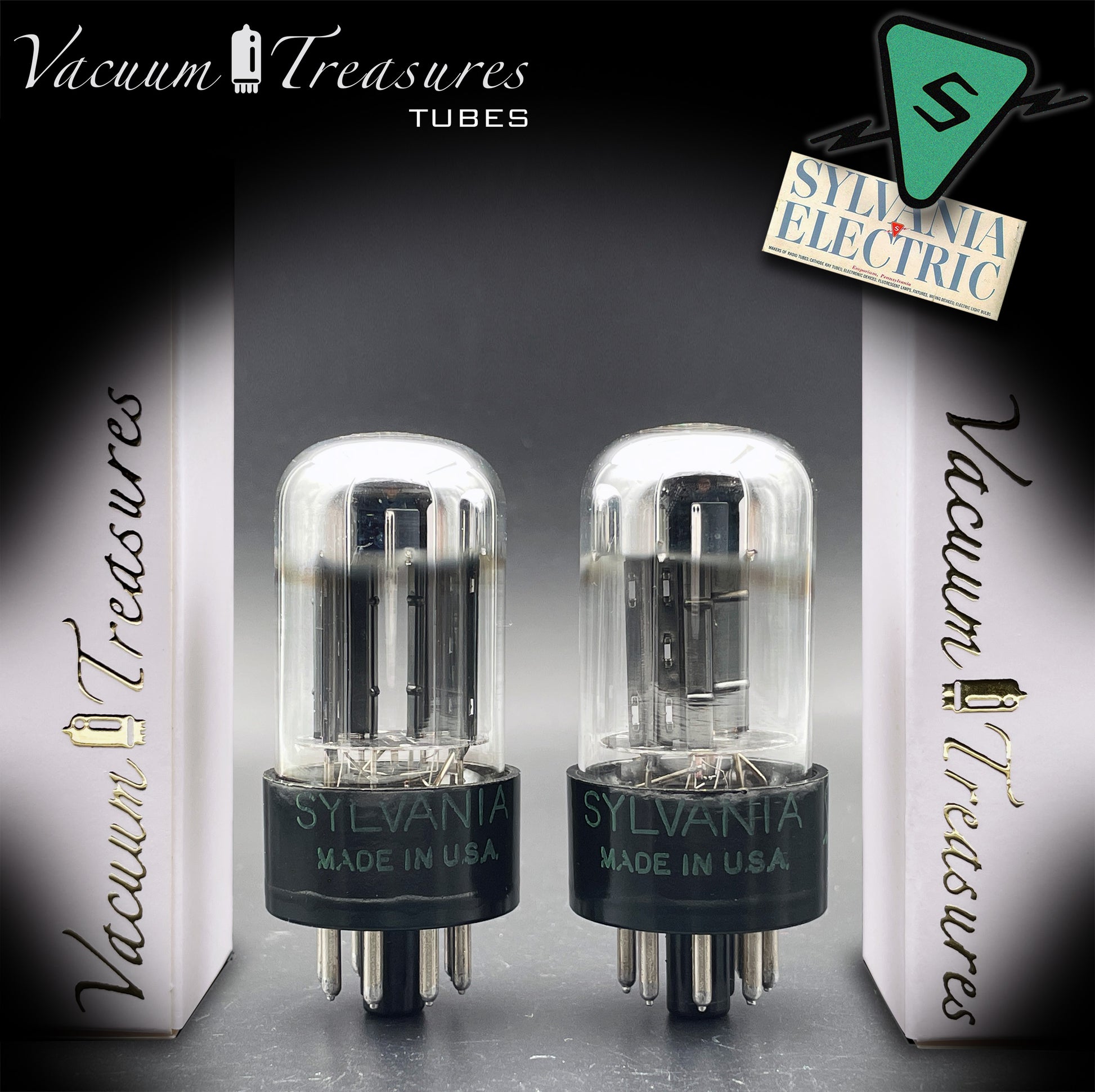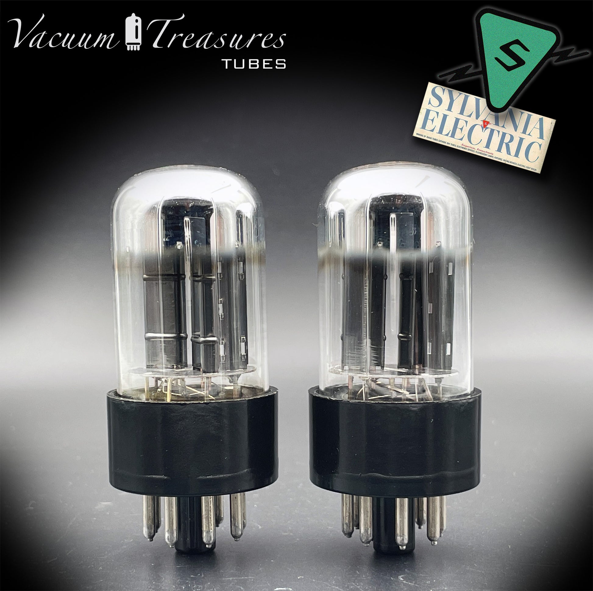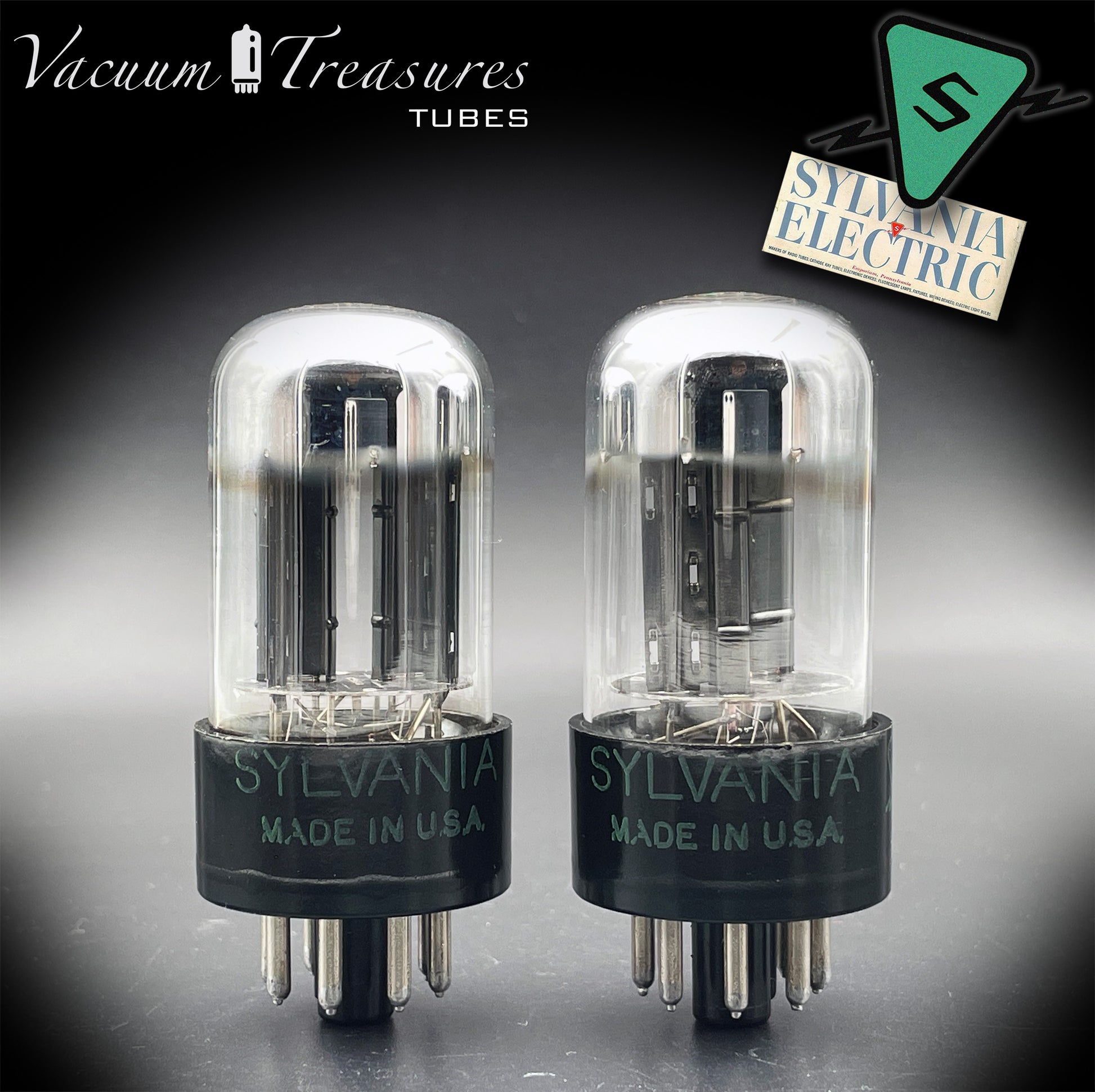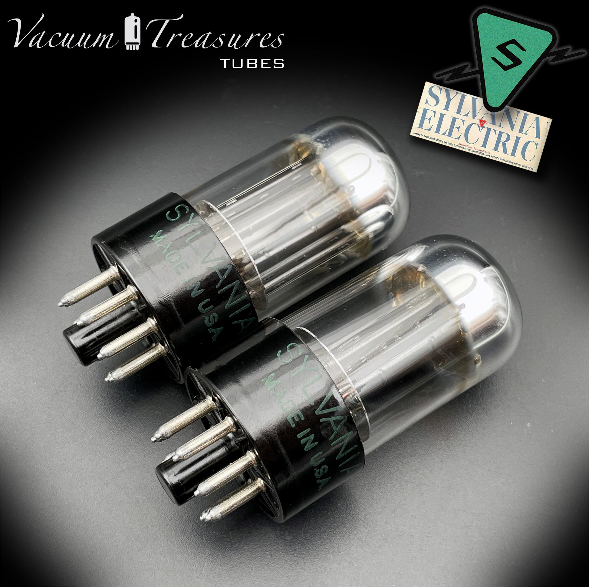 6SN7GTB NOS SYLVANIA CHROME TOP Green Dot Matched Pair Black Plates Tubes USA '50s