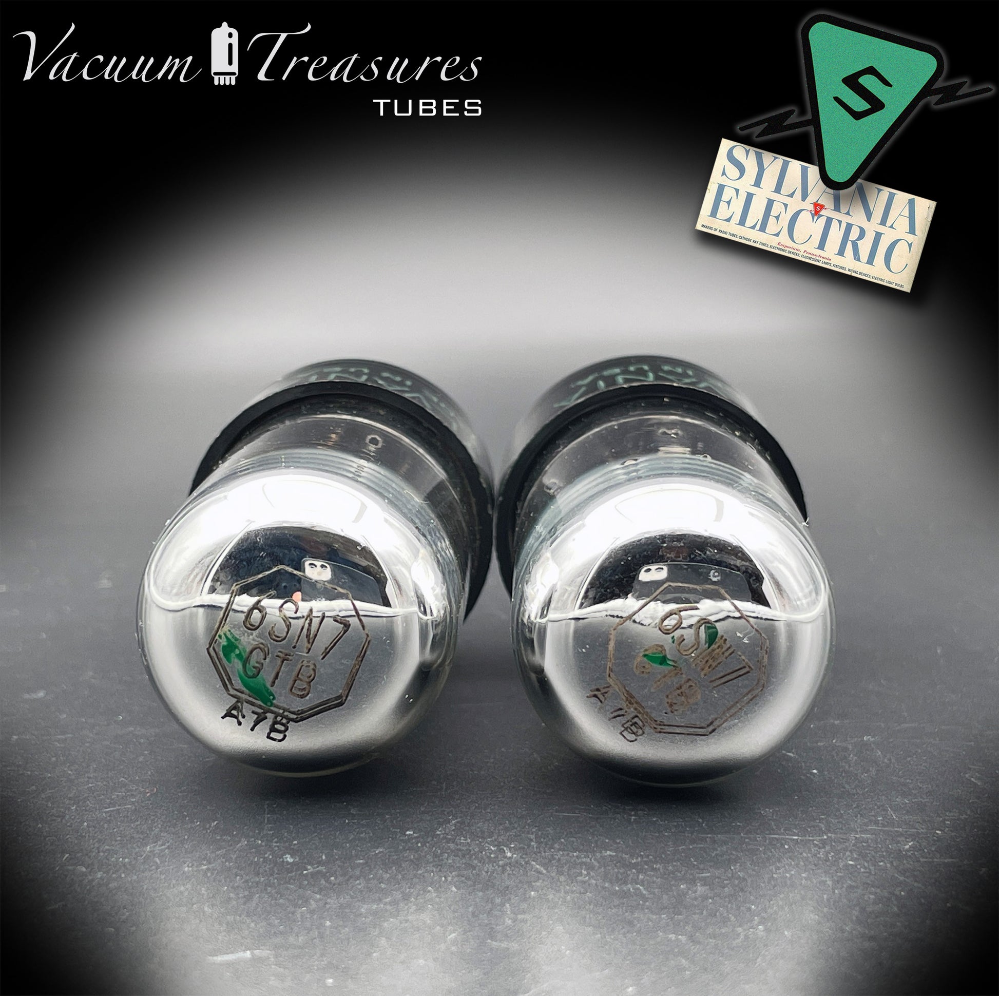 6SN7GTB NOS SYLVANIA CHROME TOP Matched Pair Green Dot Black Plates Tubes – Same Codes – Made in USA '57