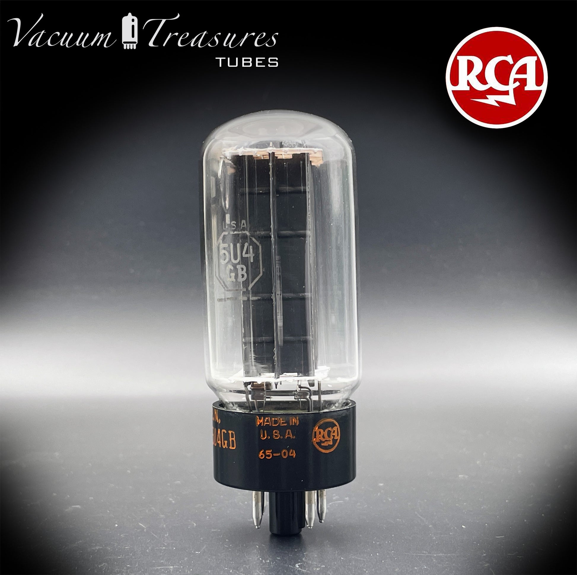 The construction with black plates and top side halo getter identifies one of the most robust and appreciated versions of the 5U4GB RCA.