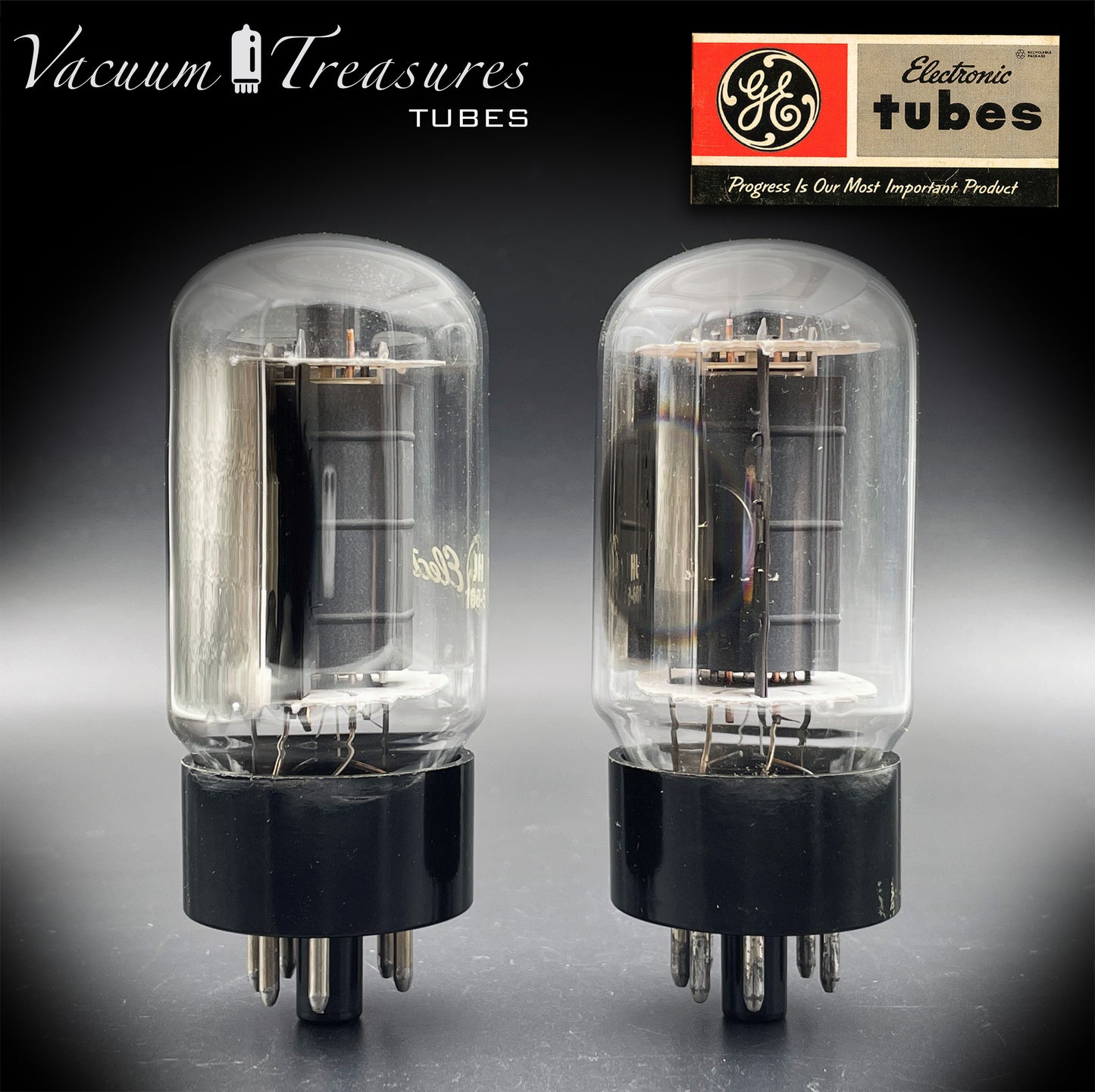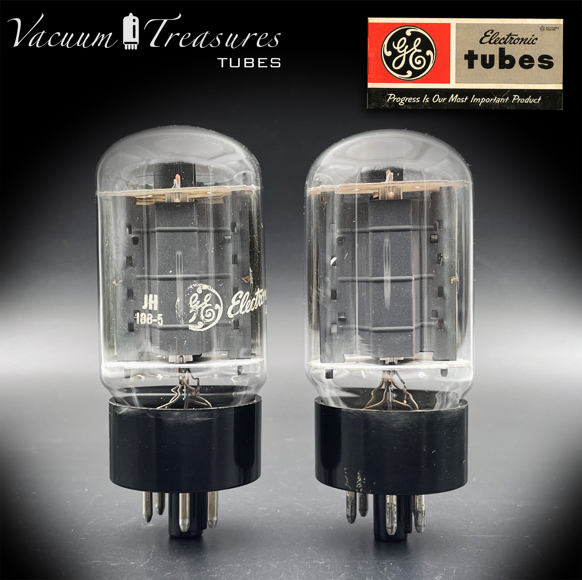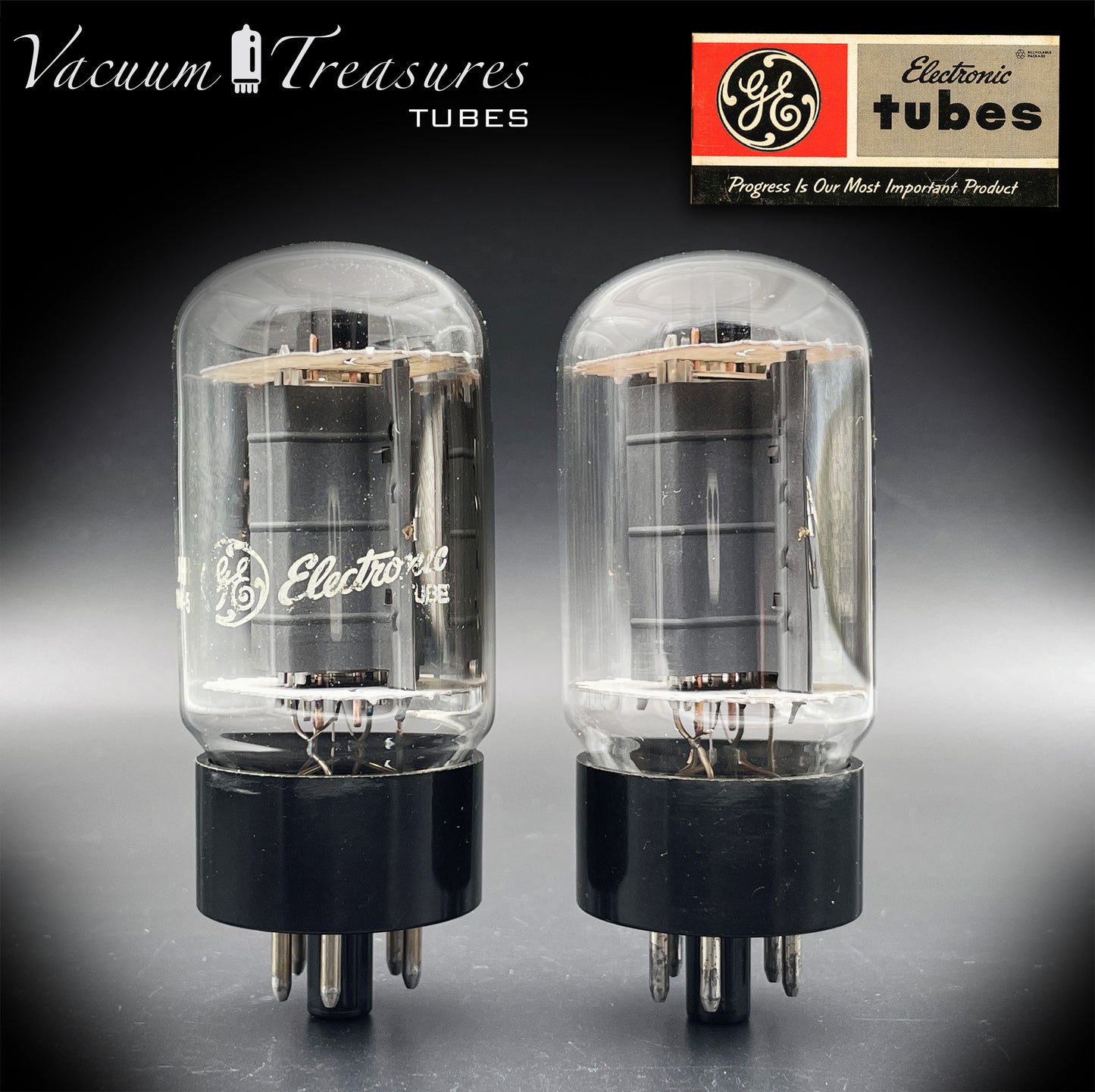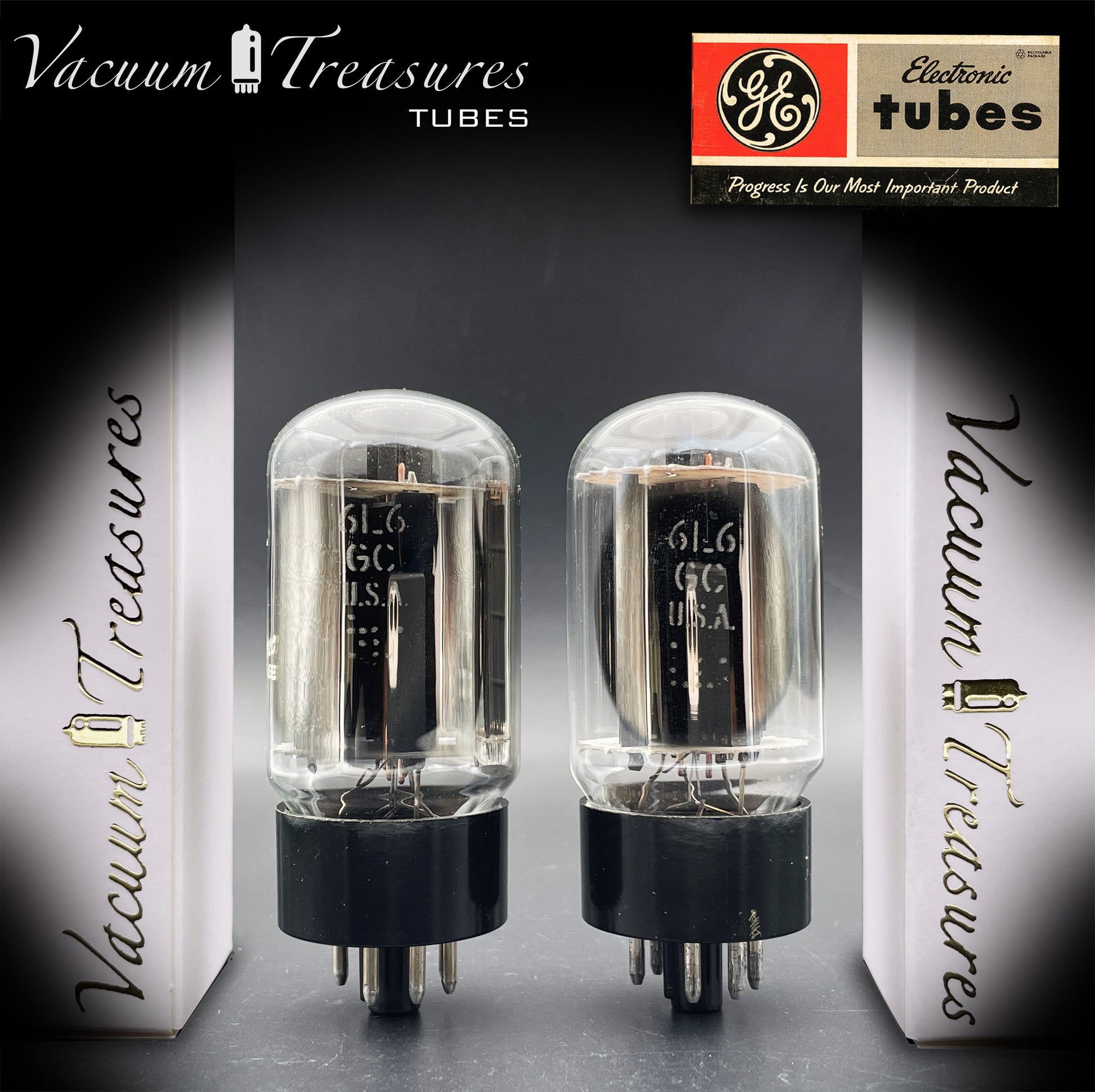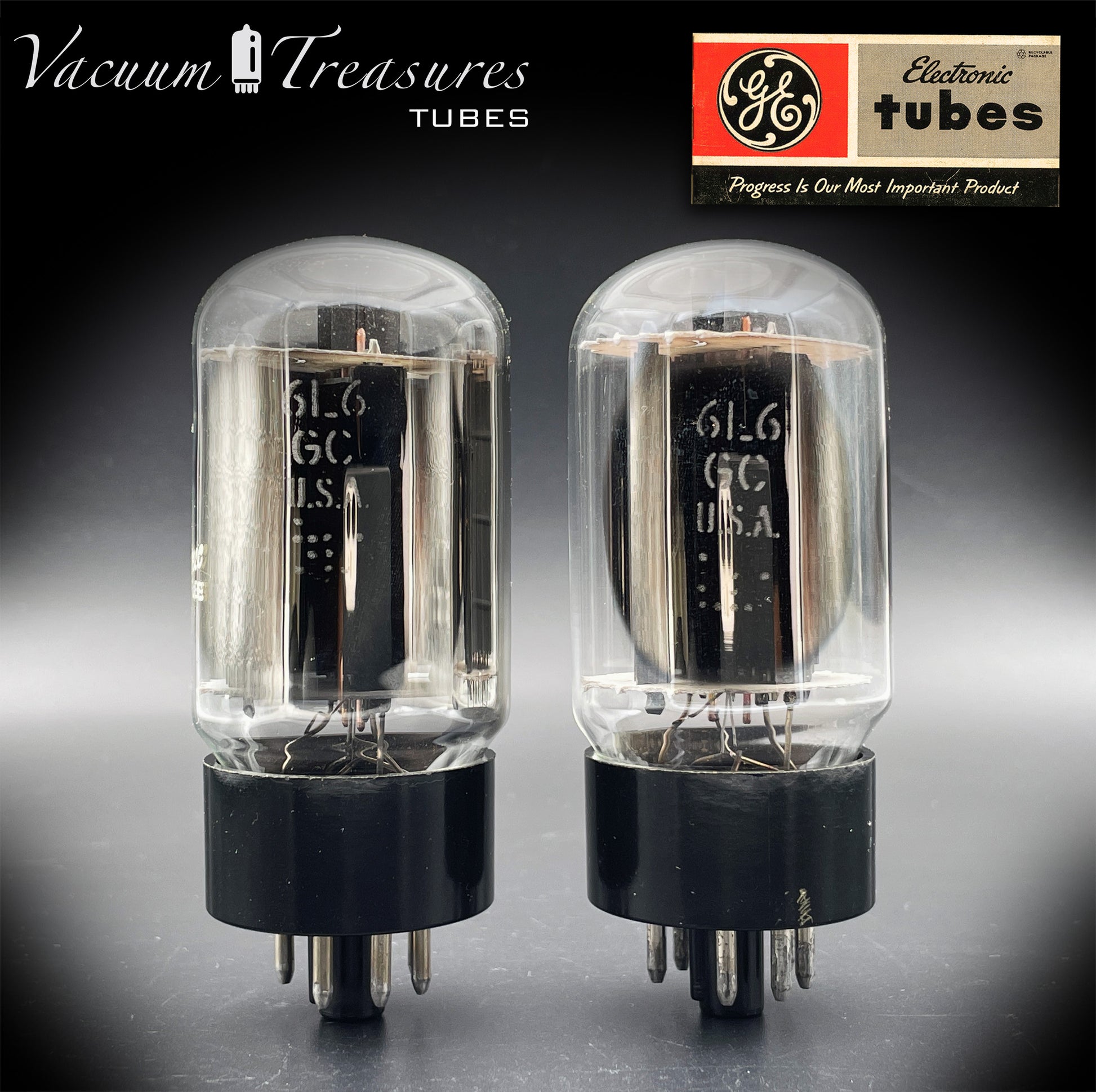 6L6GC GE Gray Plates Side Double Halo Getter Matched Pair Tubes MADE IN USA
