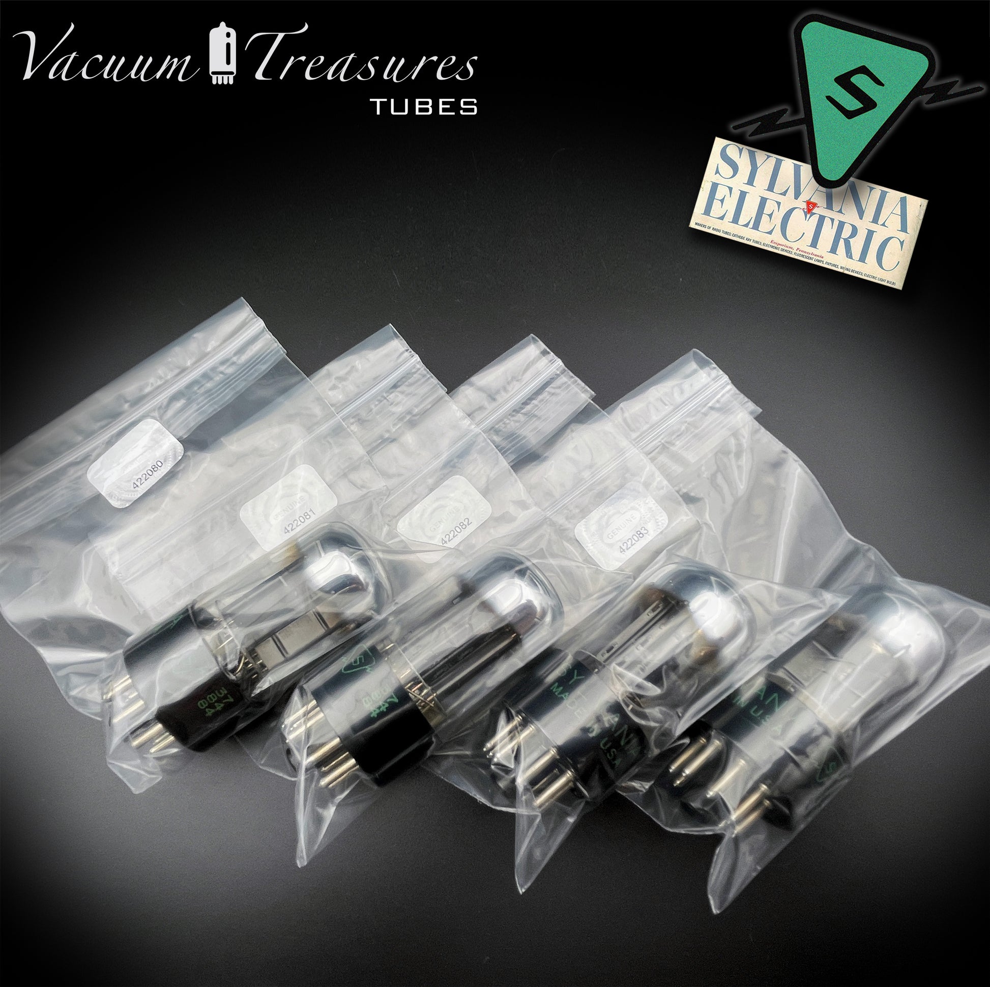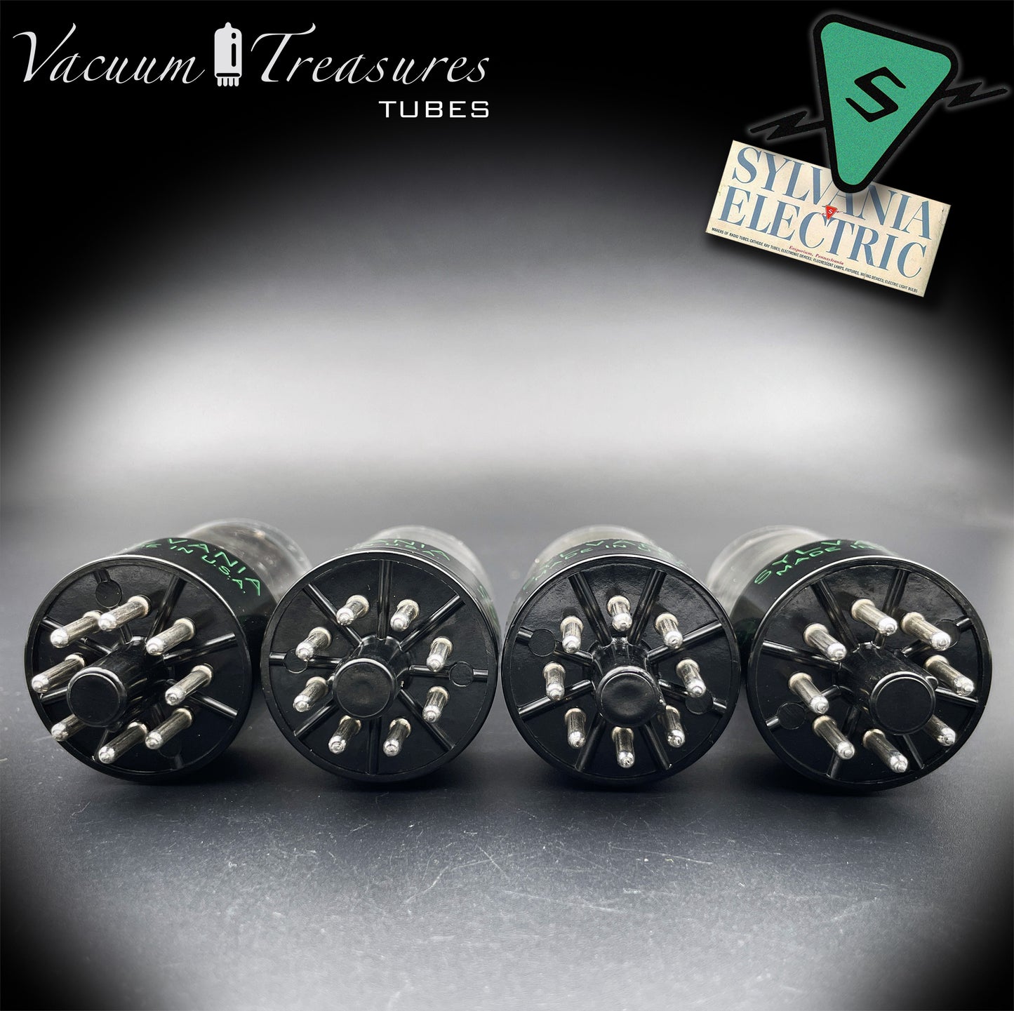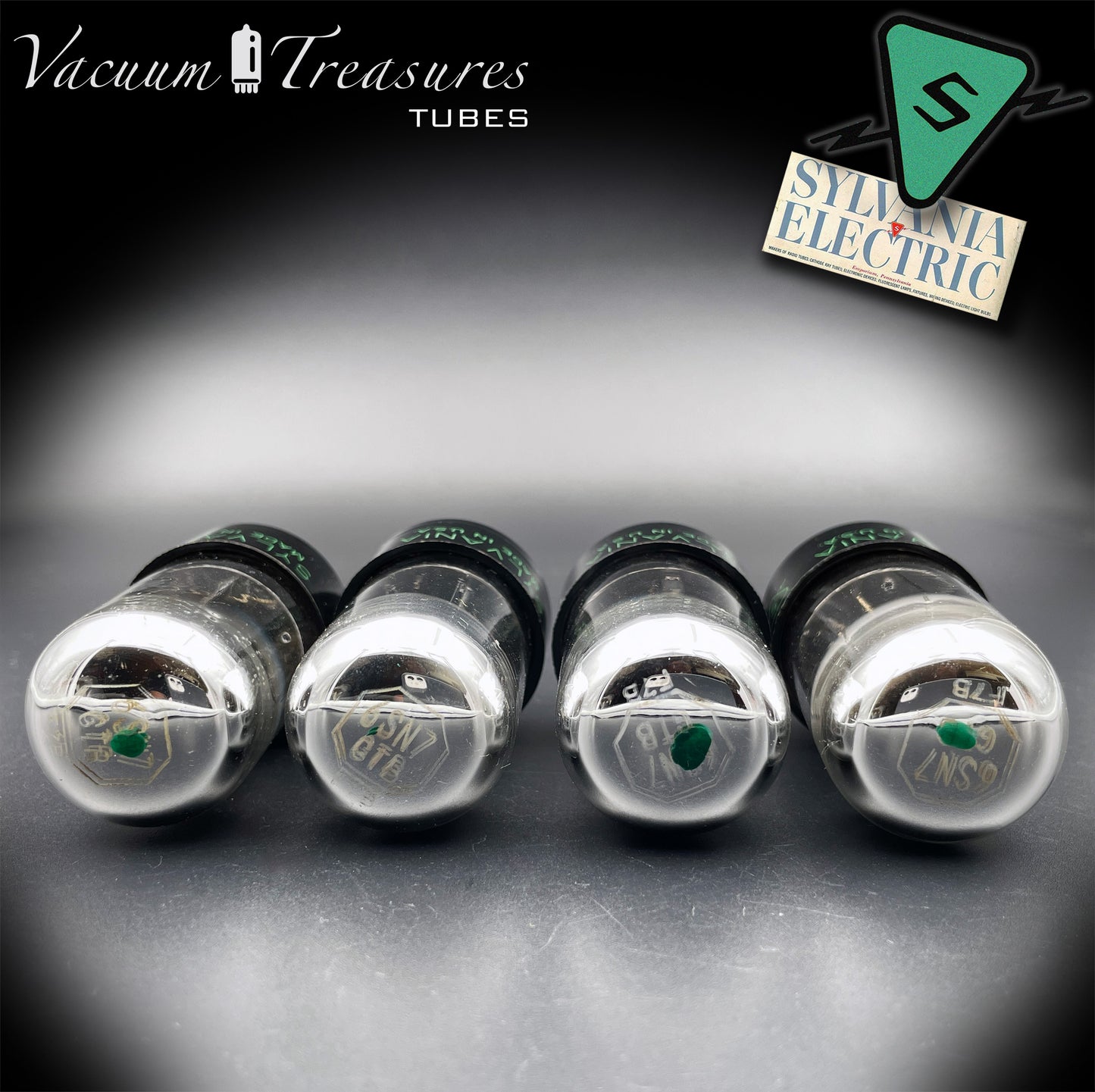 6SN7 GTB NOS SYLVANIA CHROME TOP Green Dot Black Plates Matched Quad Tubes Same Codes Made in USA '47