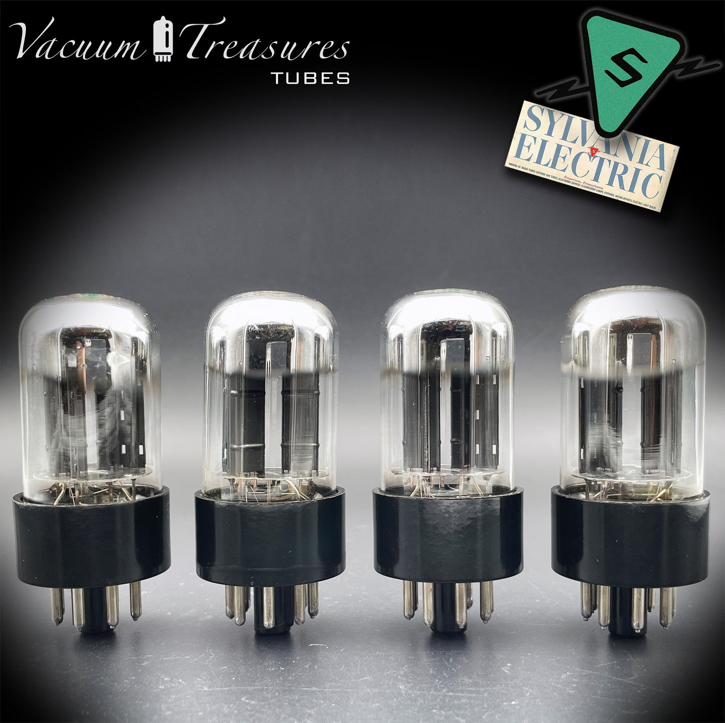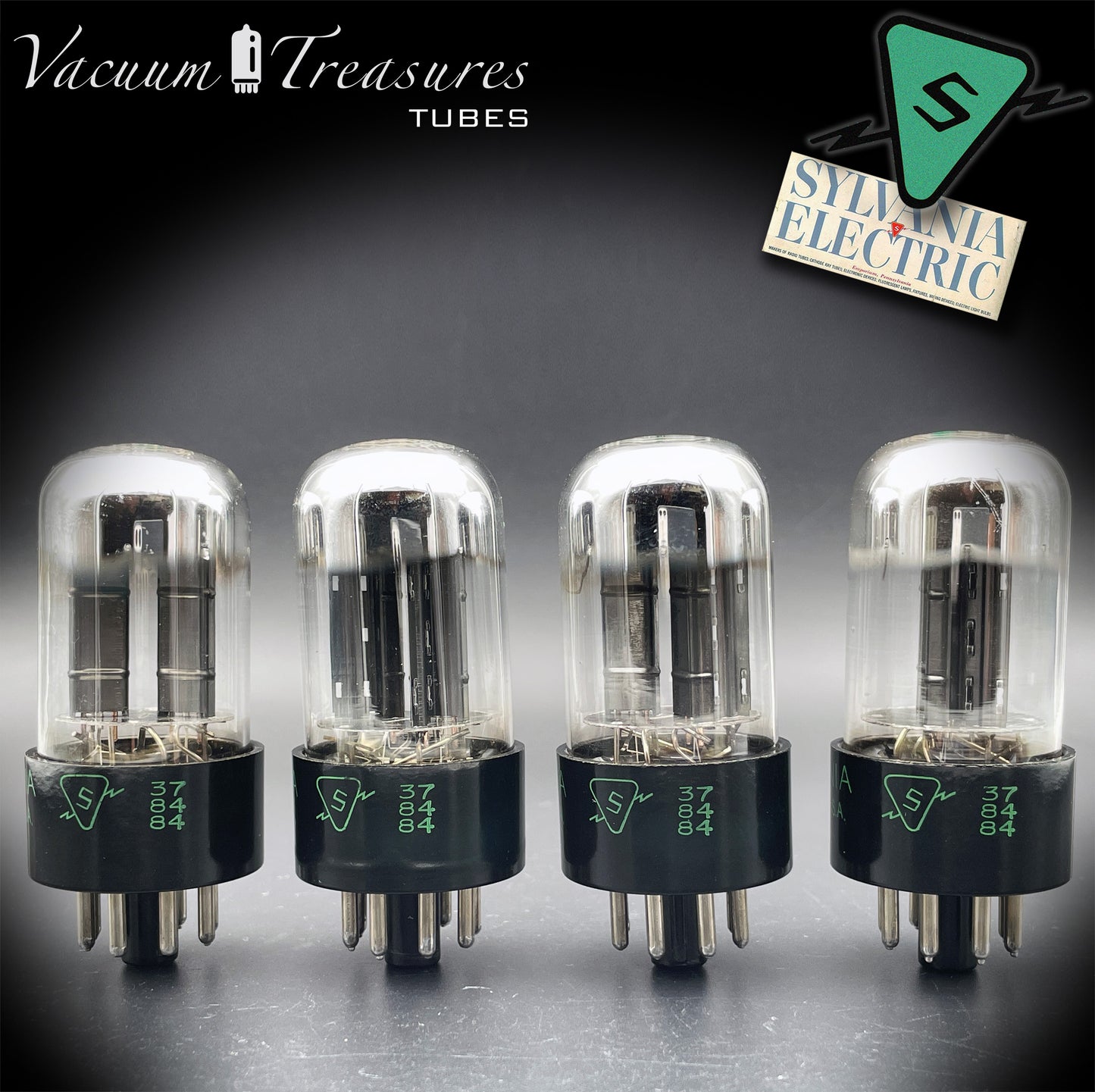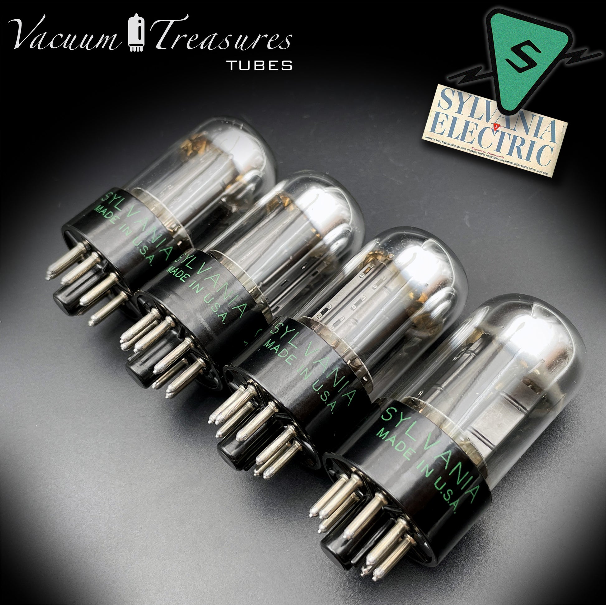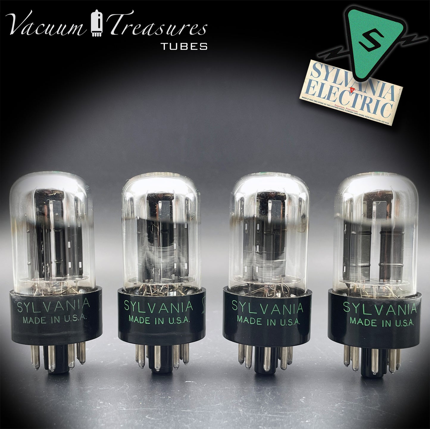 6SN7 GTB NOS SYLVANIA CHROME TOP Green Dot Black Plates Matched Quad Tubes Same Codes Made in USA '47