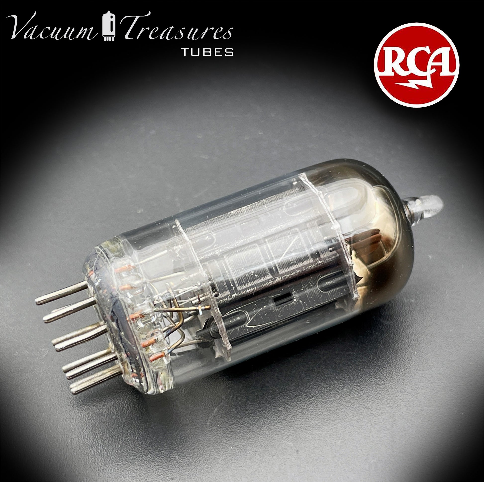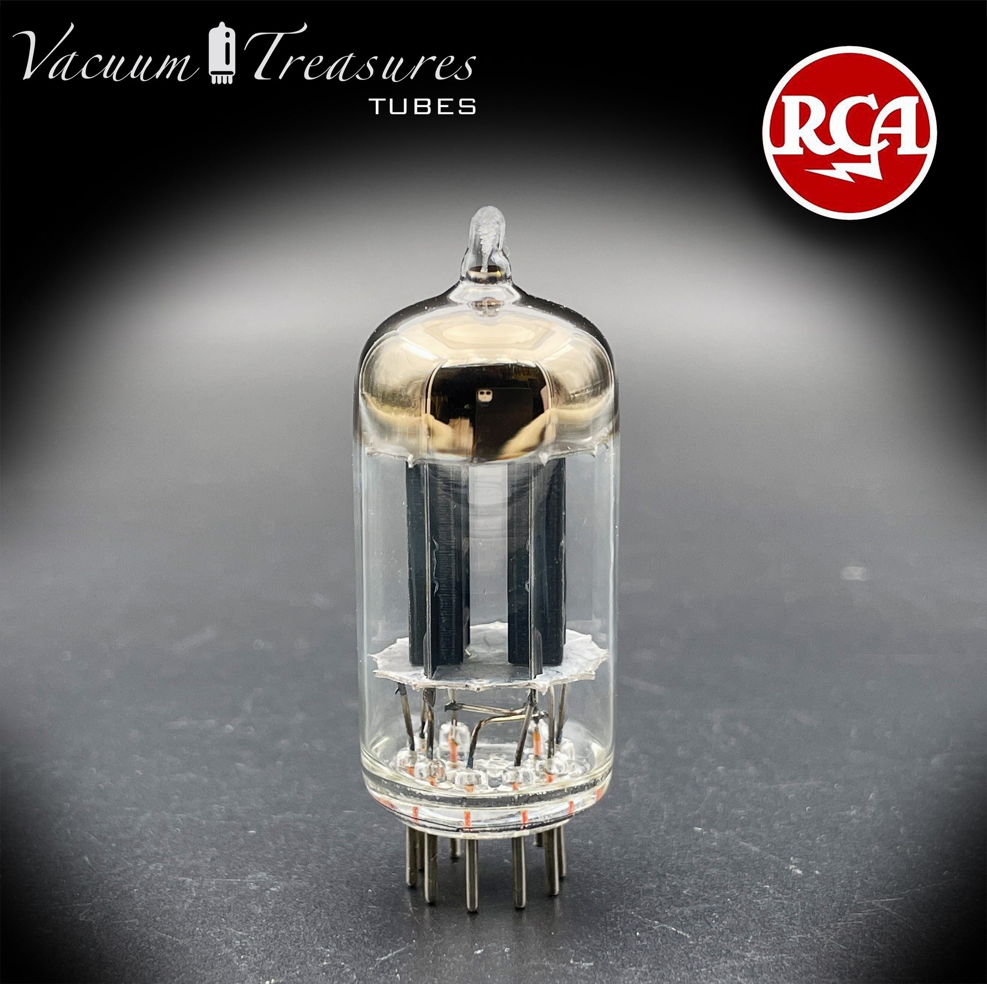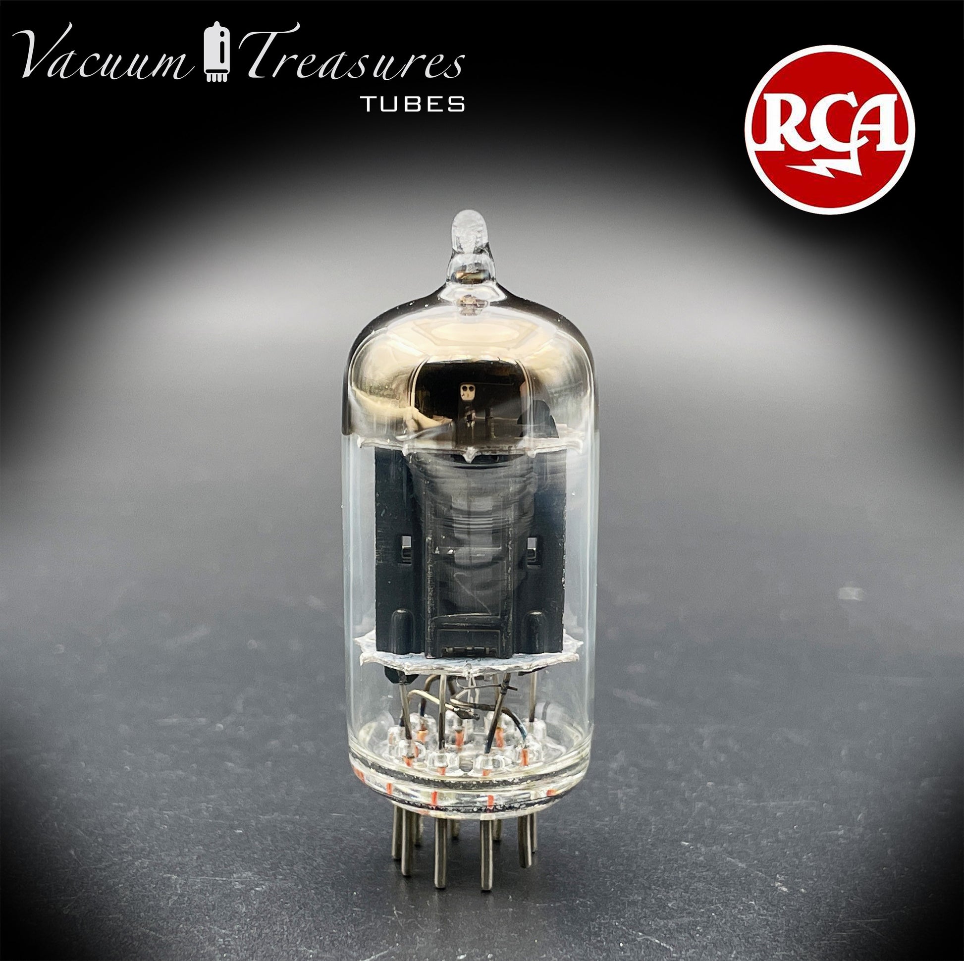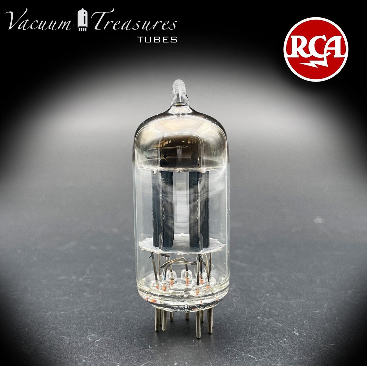 12AU7 A ( ECC82 ) RCA Long Black Plates Square Getter Tested Tube Made in USA '50s