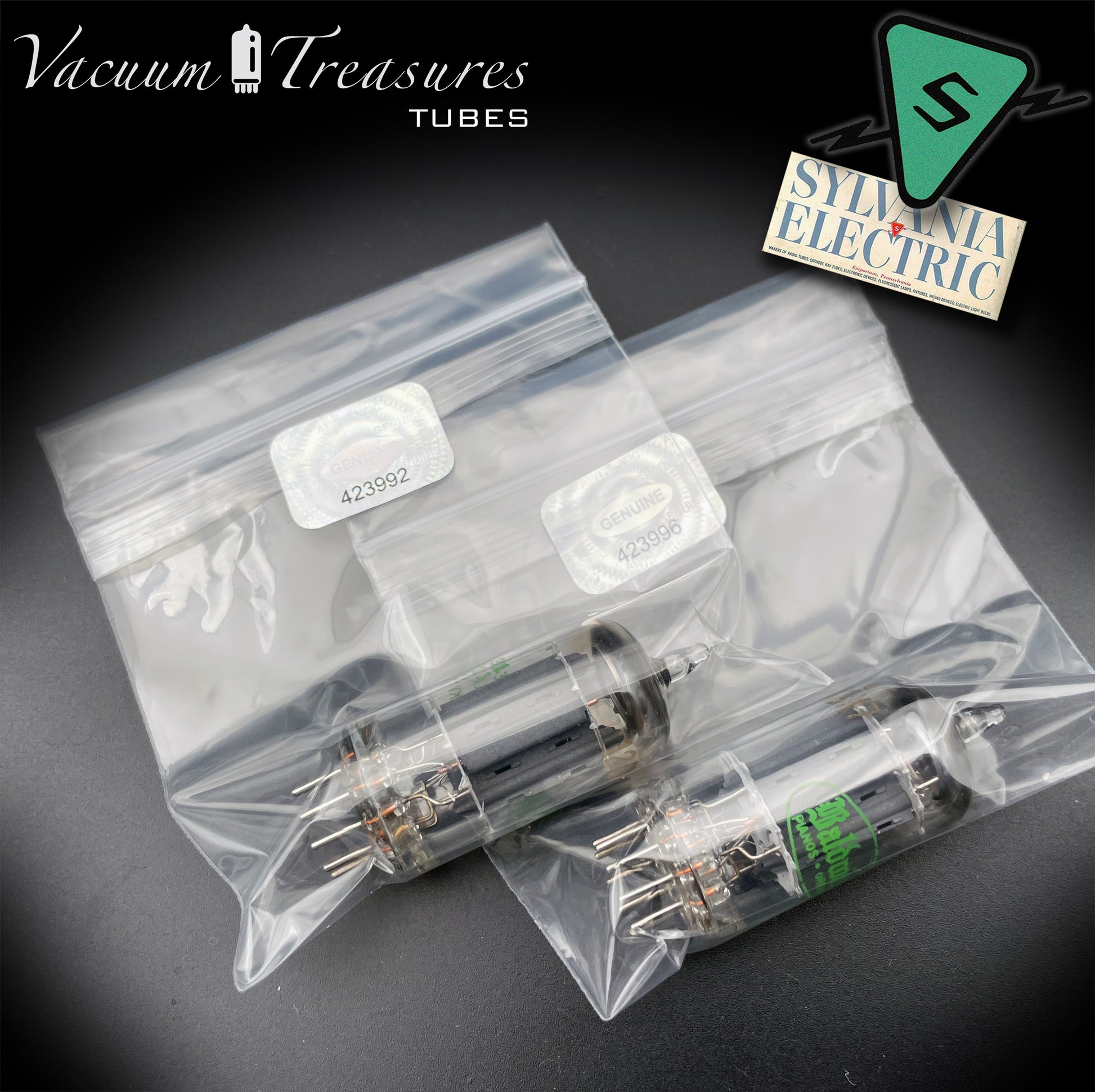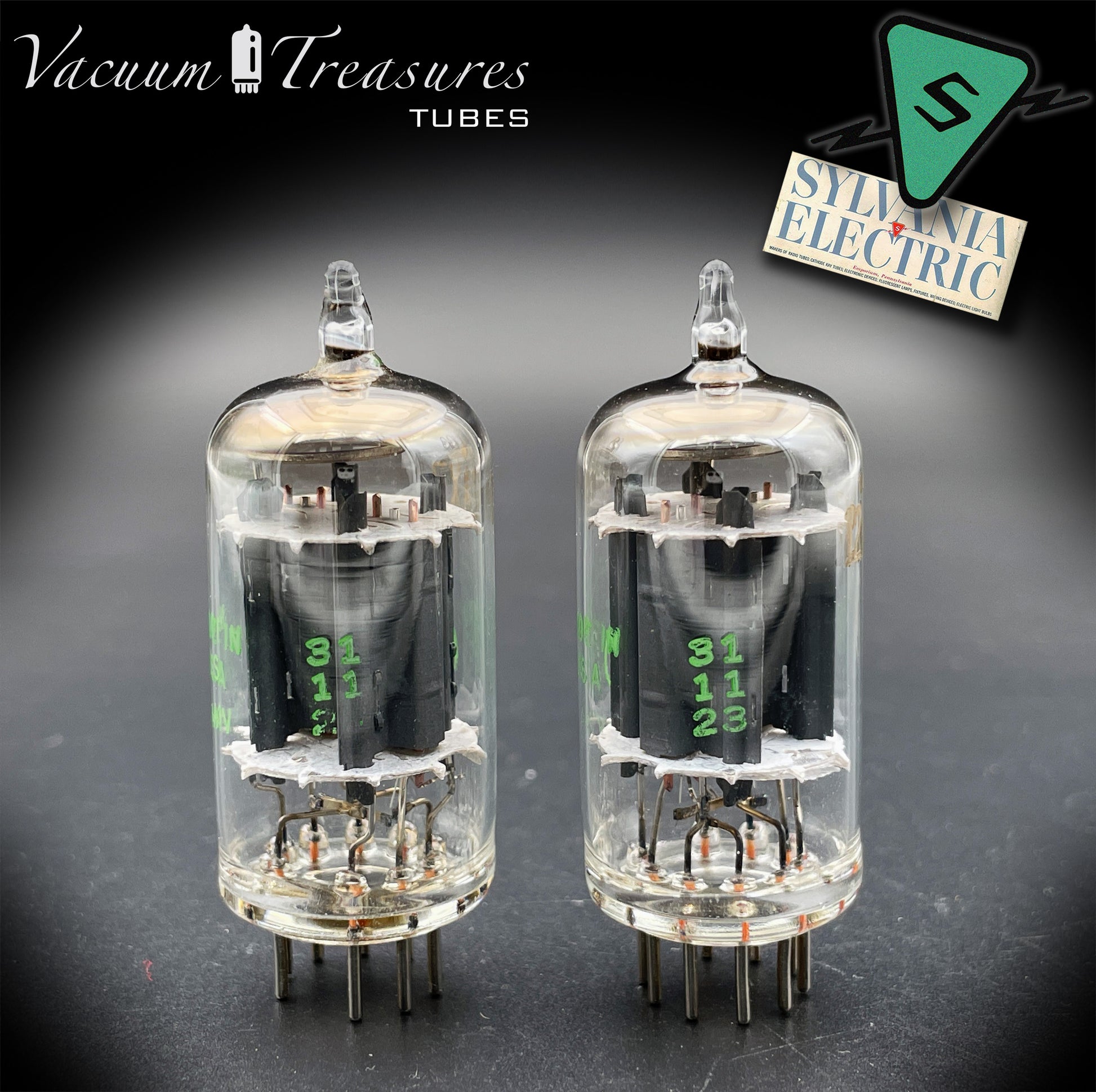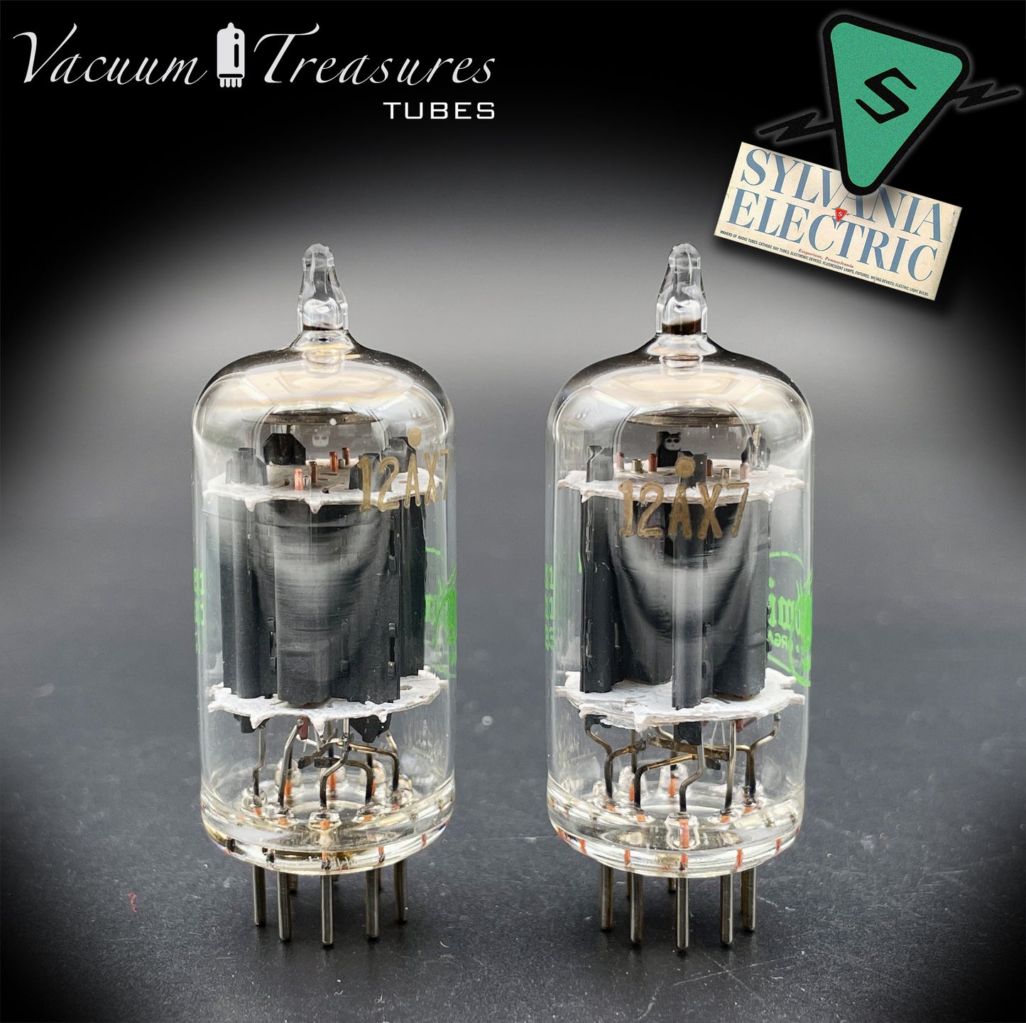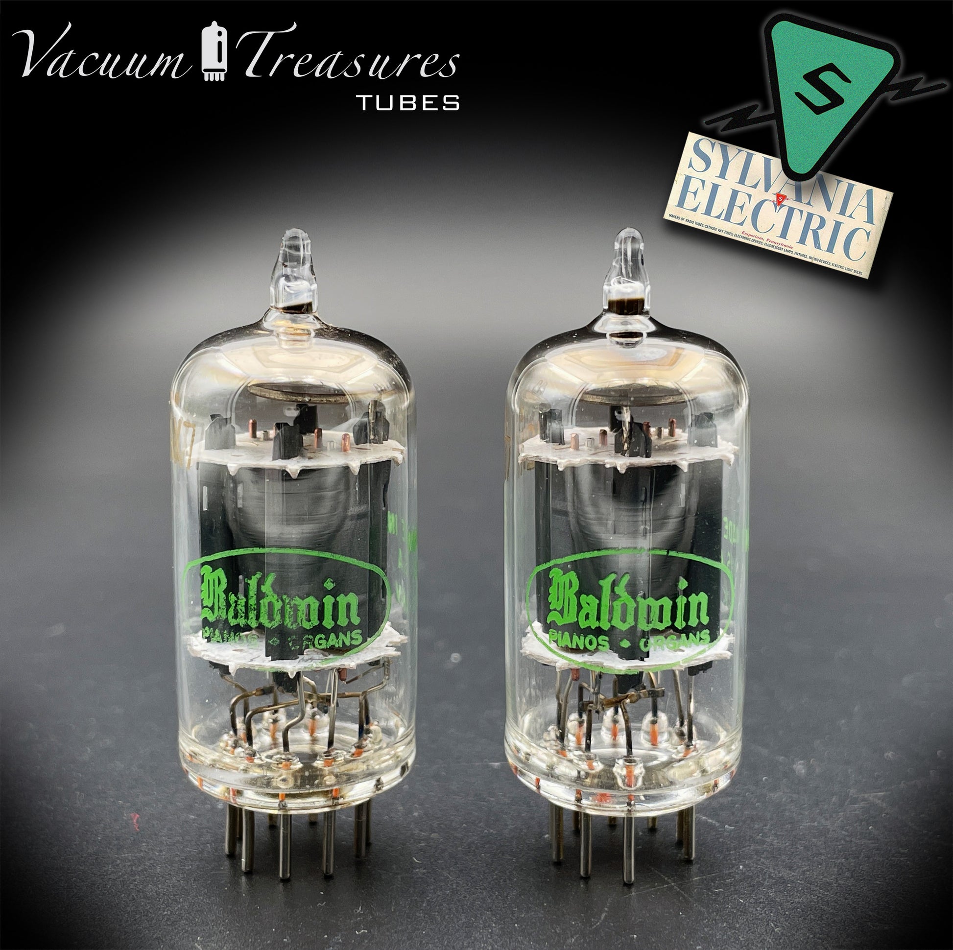 12AX7 ( ECC83 ) NOS Baldwin by SYLVANIA Long Gray Plates Large Halo Getter Matched Pair Tubes MADE IN USA '51