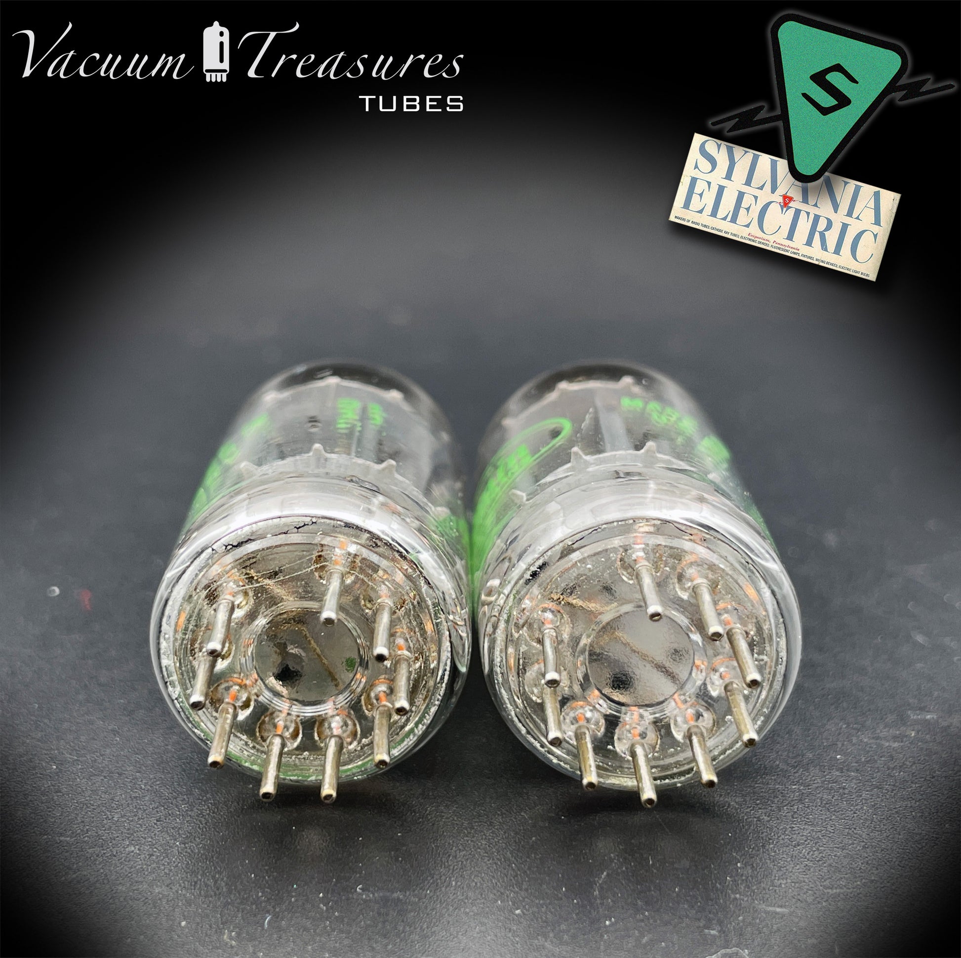 12AX7 ECC83 NOS Baldwin by Sylvania – Long Gray Plates Large Halo Getter Matched Pair Tubes USA 1951