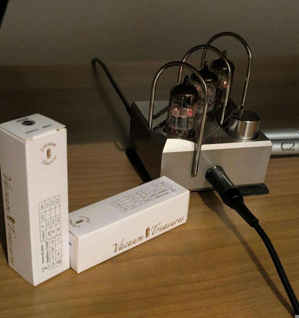 Fatto che, ritengo ascrivibile ovviamente alla tipologia e marca delle valvole, ma non di meno alla accuratezza nella selezione delle stesse: bilanciamento per ciascuna (doppio triodo) e accoppiamento fra le due. È per questo che sono assolutamente entusiasta per l'acquisto appena perfezionato che segue al precedente che riguardava una coppia di Philips SQ anche queste di valore sonico elevato.