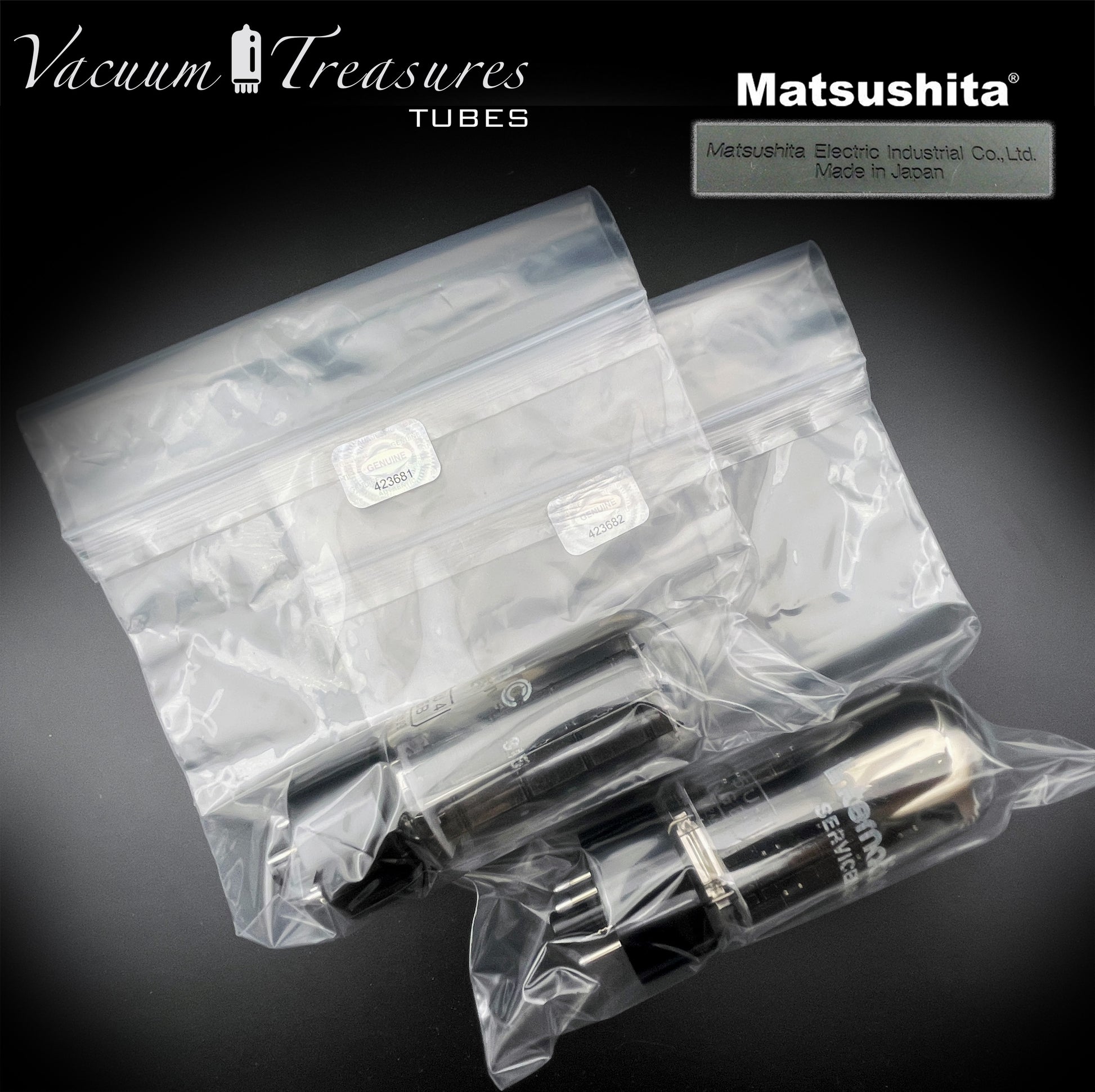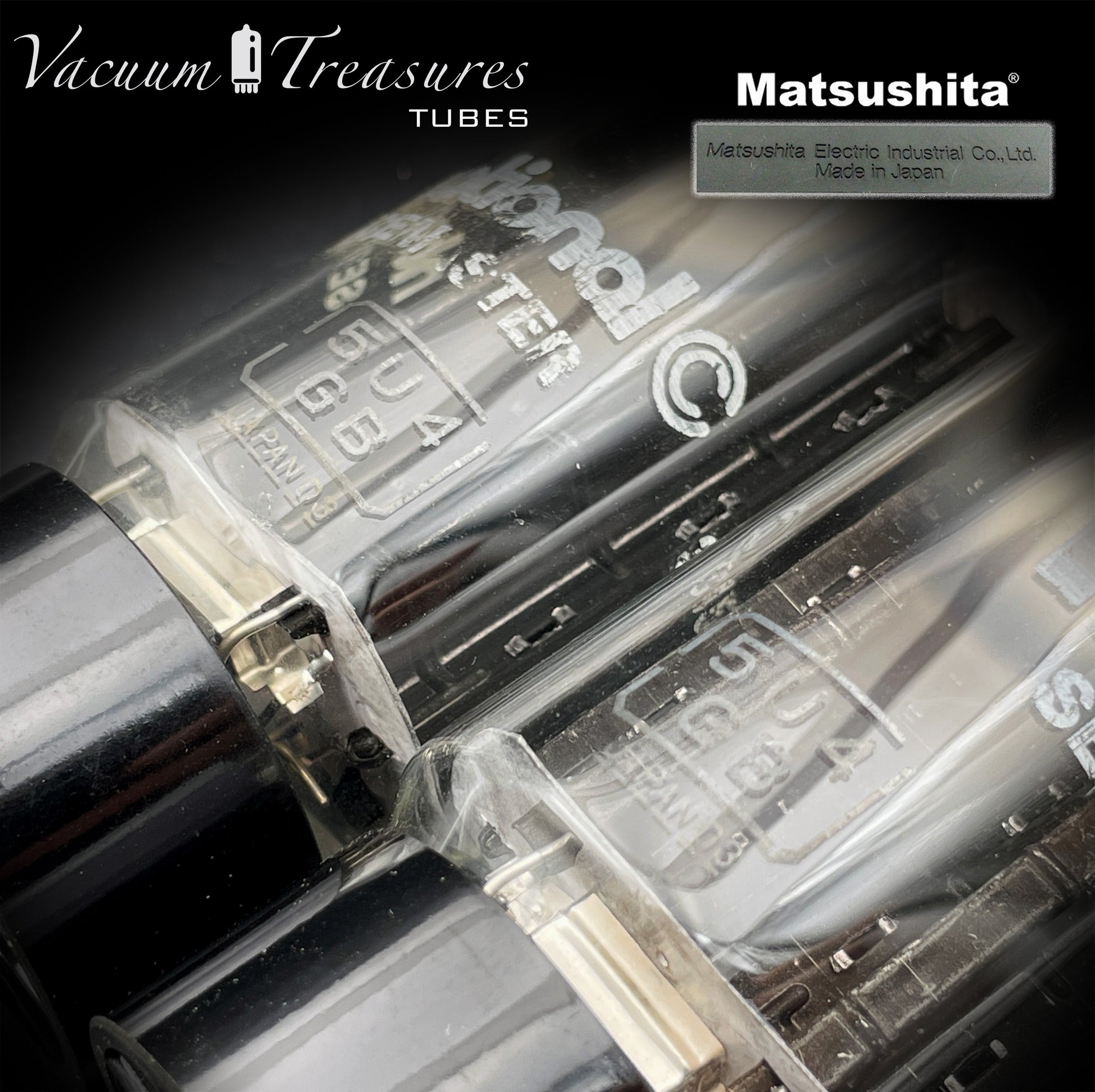 5U4GB / 5AS4A NOS NIB MATSUSHITA Brand International Black Plates Matched Pair Top Side Halo Getter Rectifier Tubes Made in JAPAN – Same Factory Code