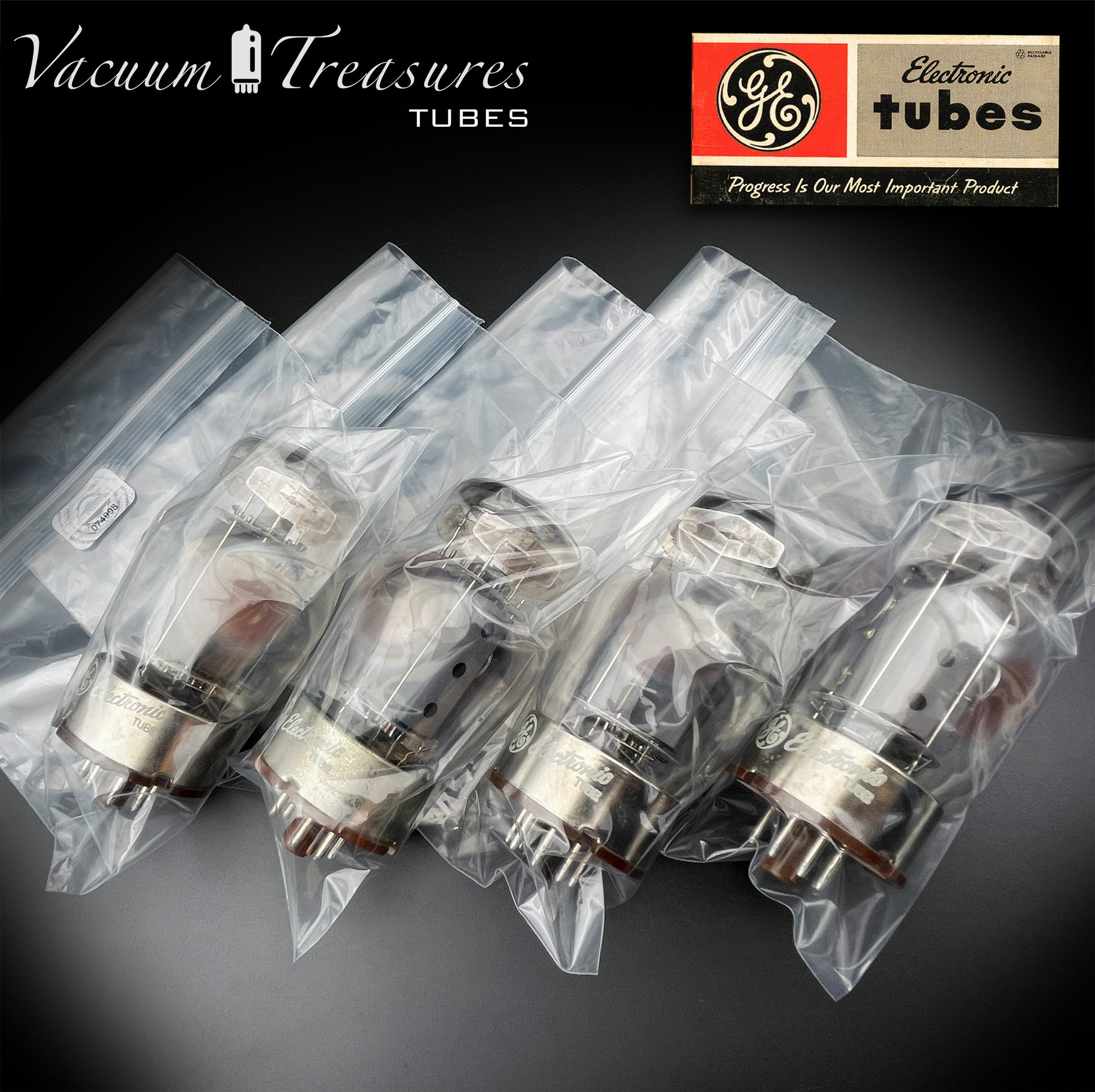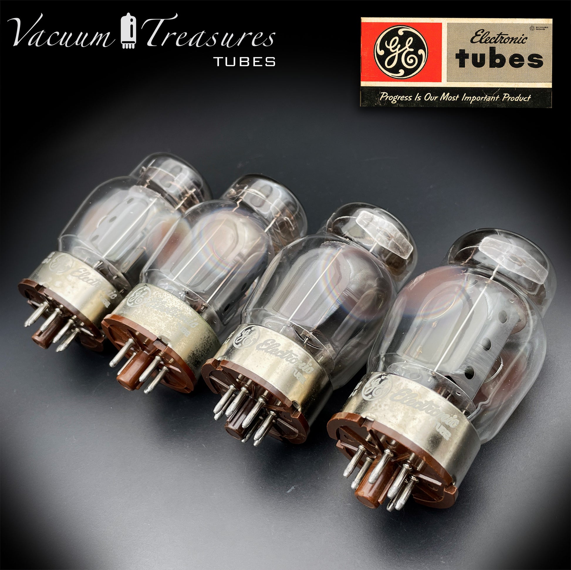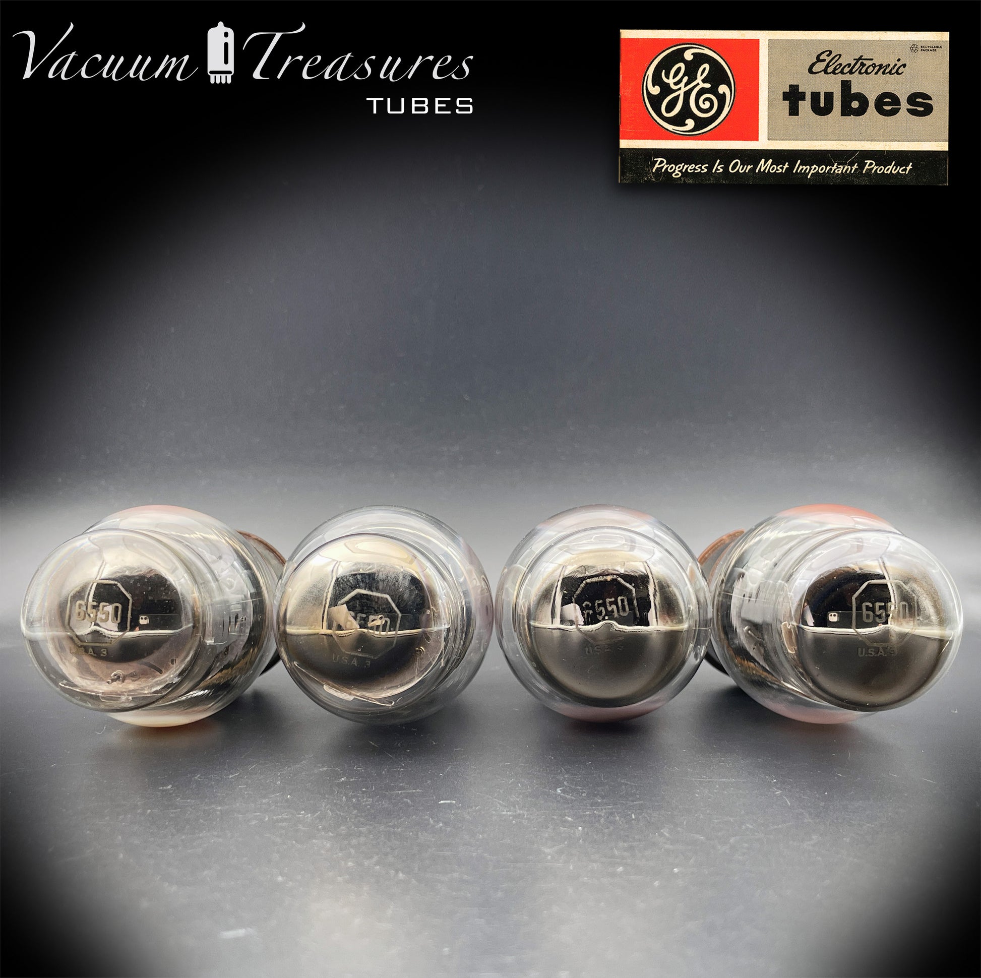 6550 GE by TUNG-SOL Type 2 - 4th Generation Gray Plates Triple Halo Getter Three Holes Matched Quad Tubes MADE IN USA