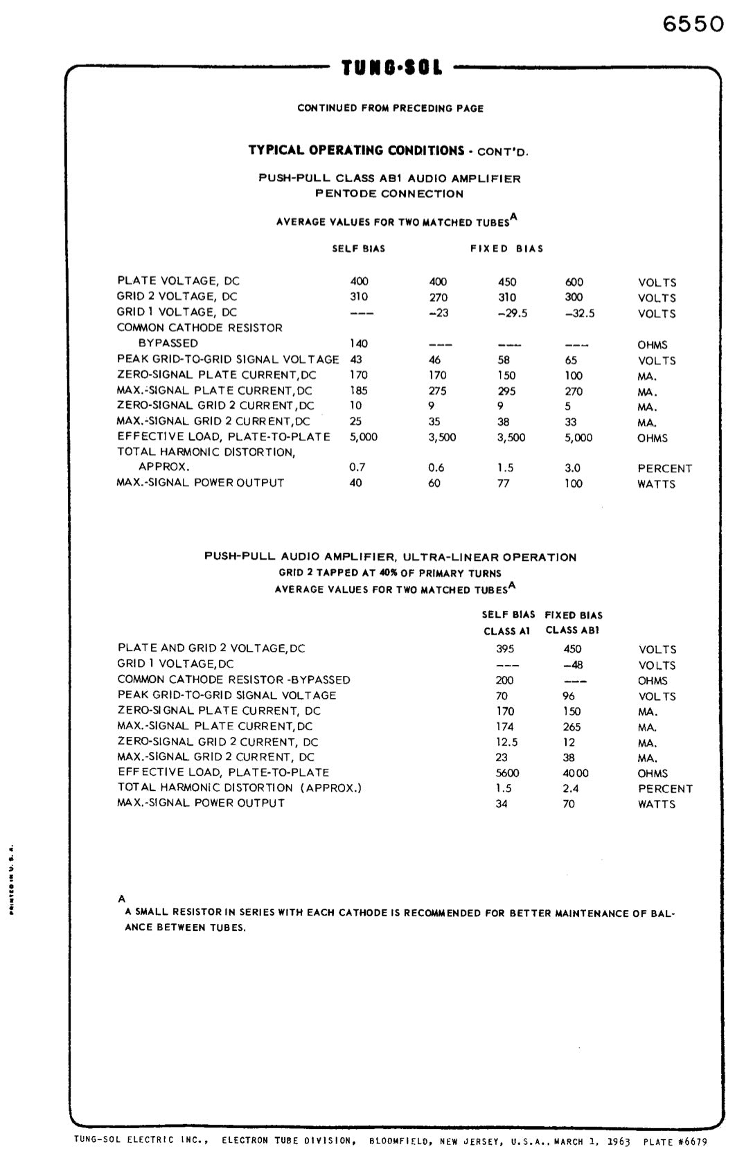 Questo Matched Quad di 6550 MAGNAVOX by Tung-Sol Type 2 – 4ª Generazione rappresenta: