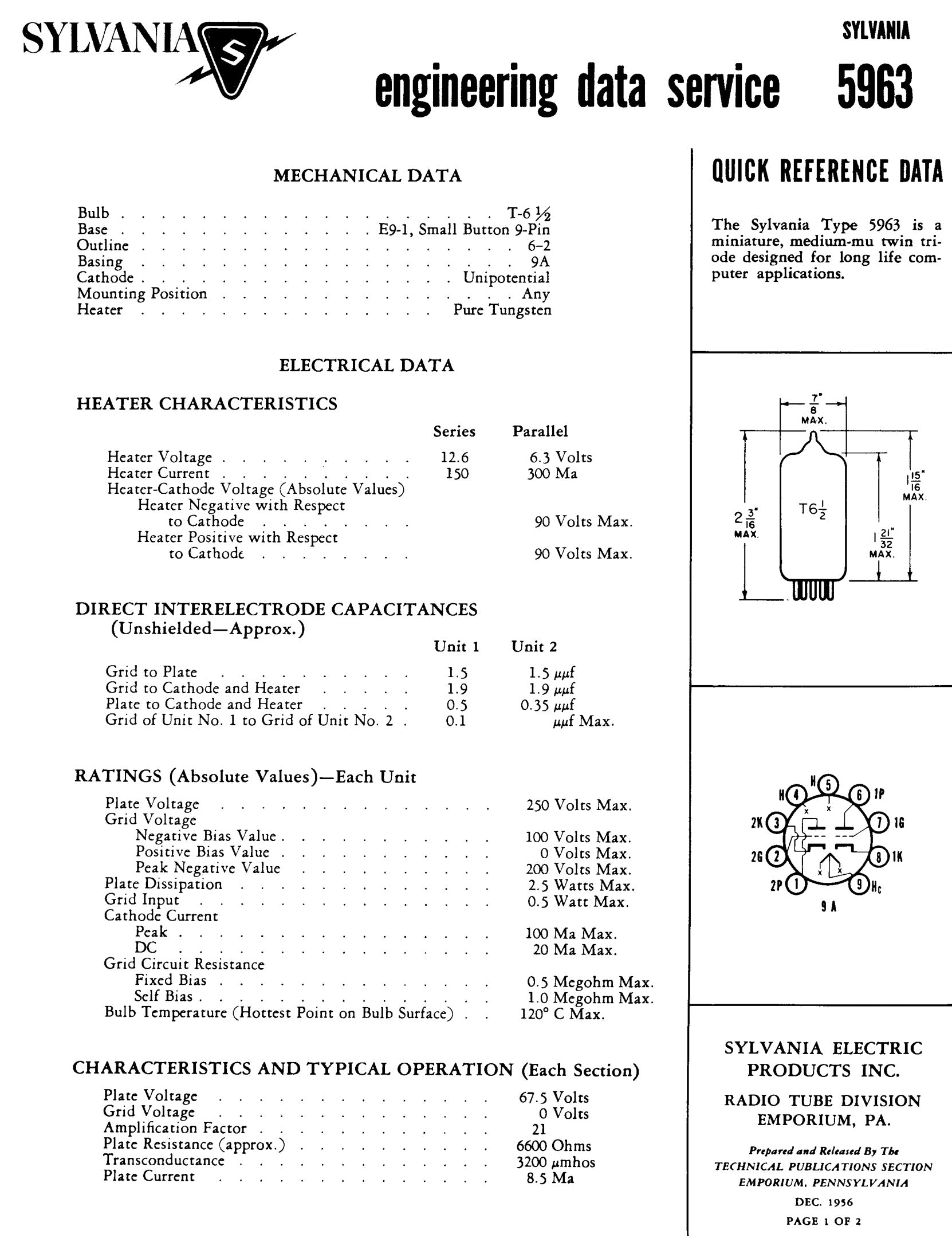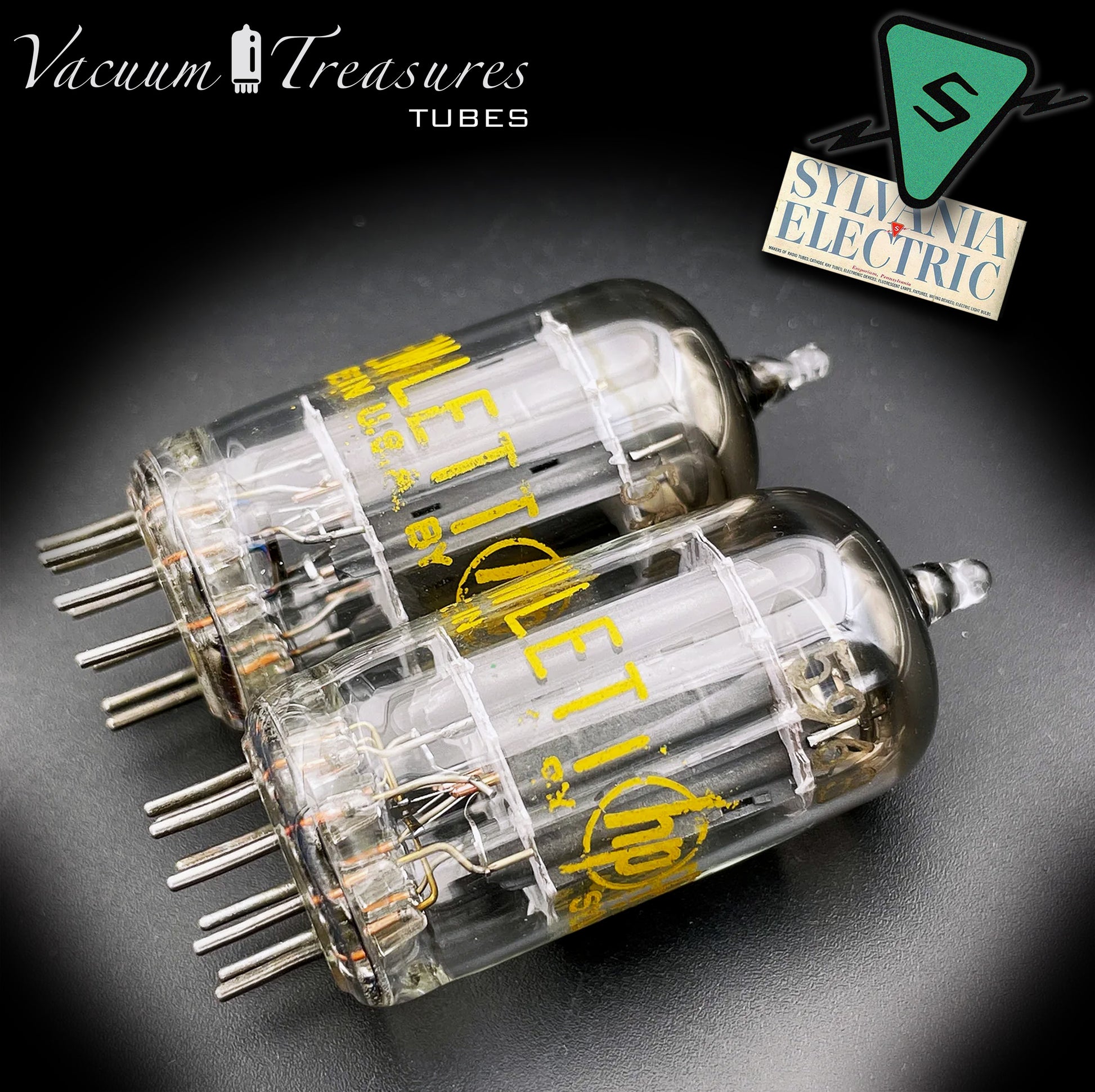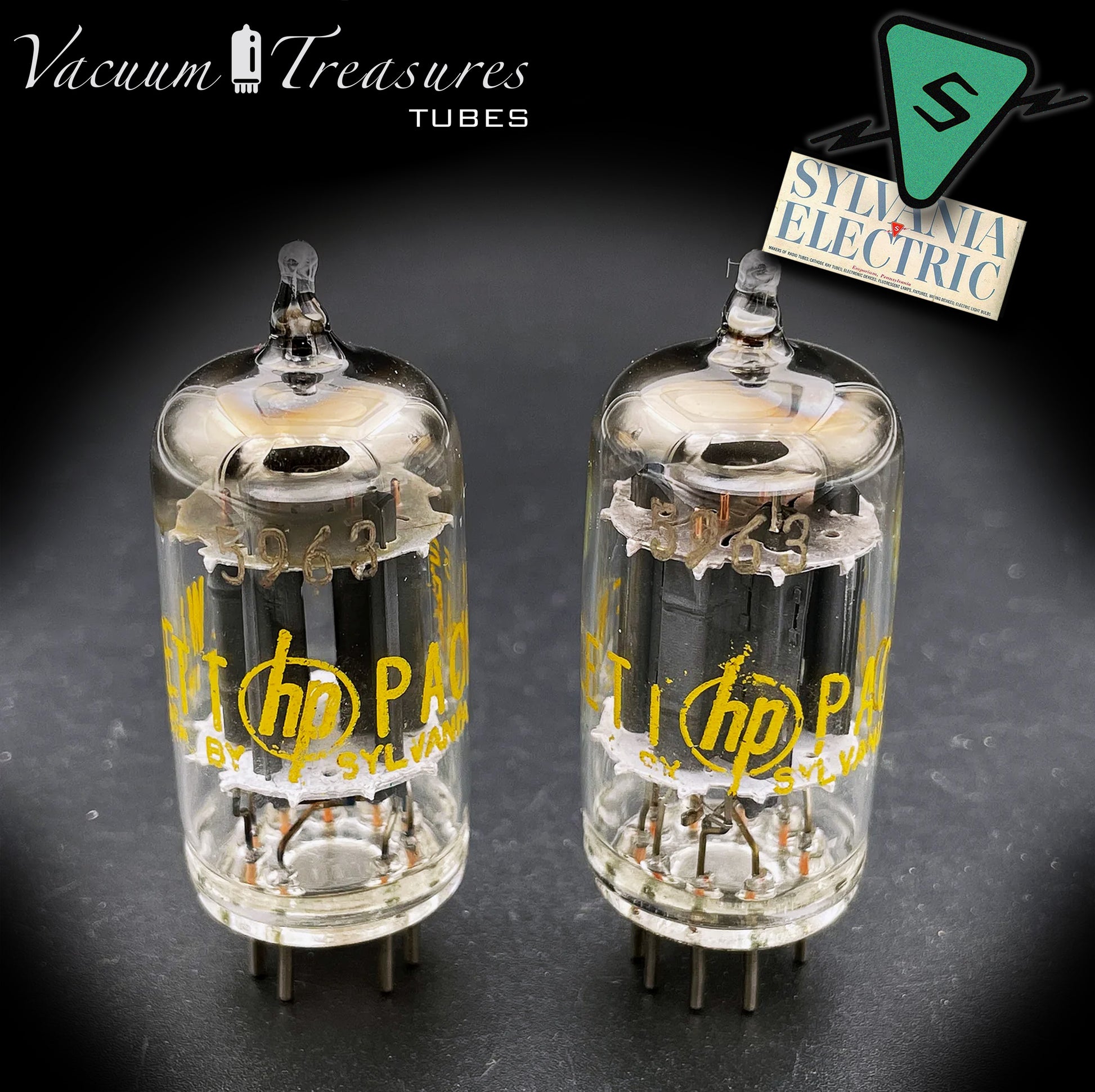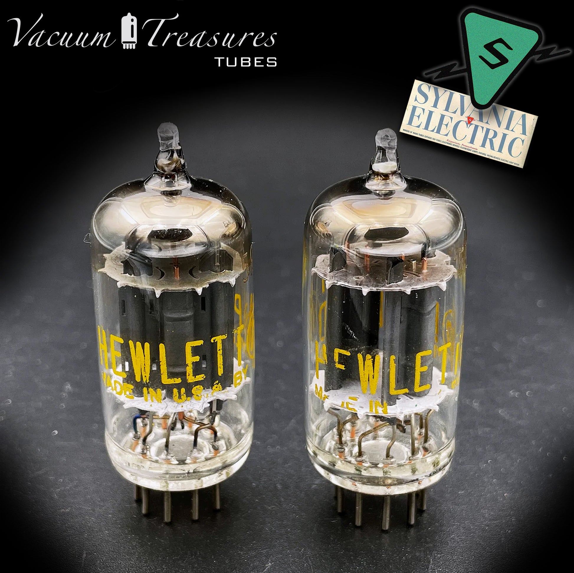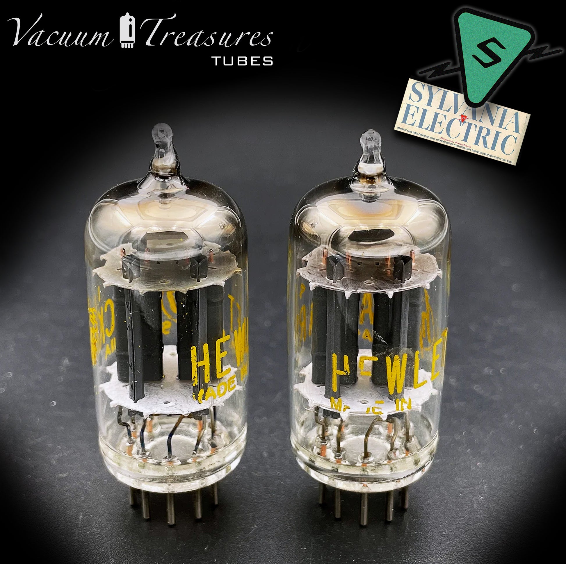 5963 ( ECC82 12AU7 WA ) Hewlett-Packard by SYLVANIA Gray Plates Halo Getter Long Plates Matched Pair Made in USA