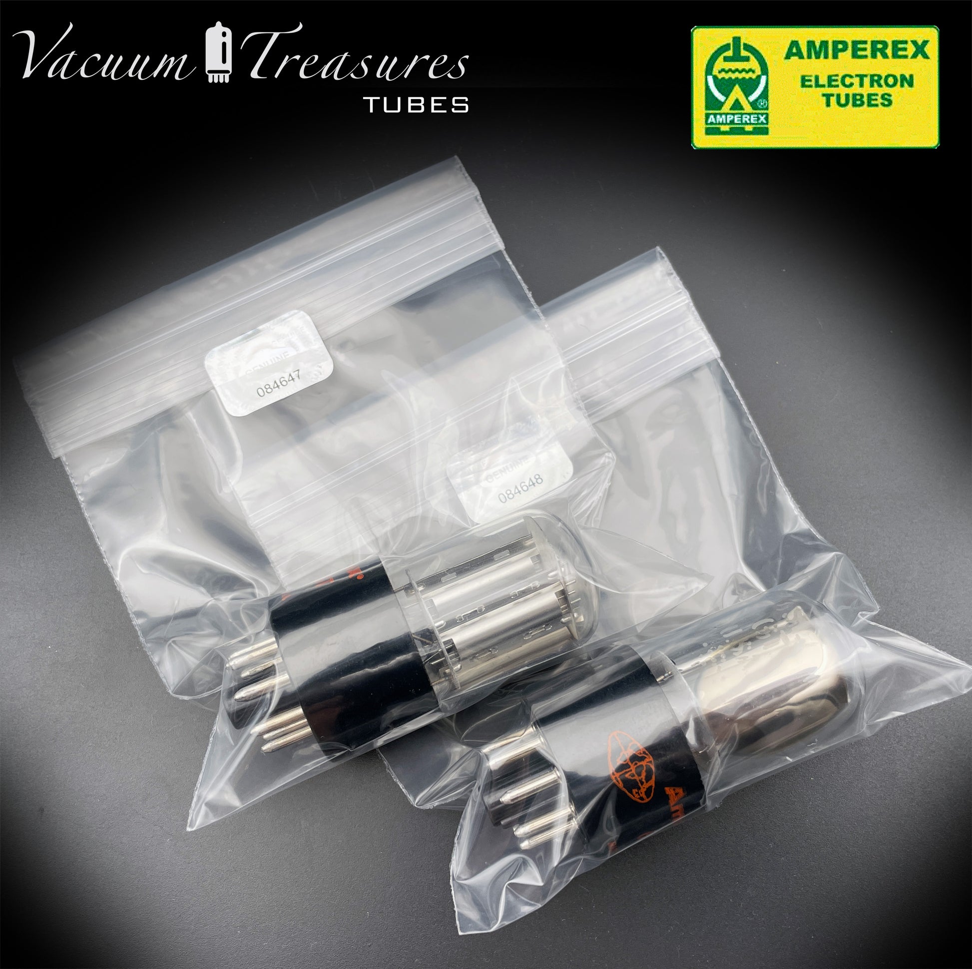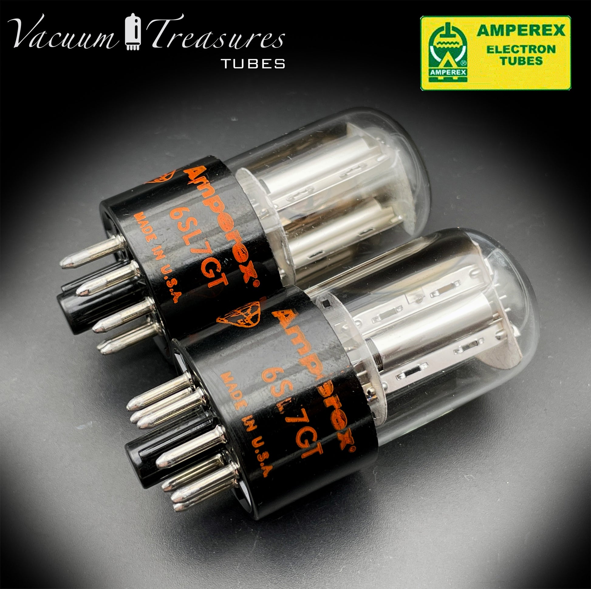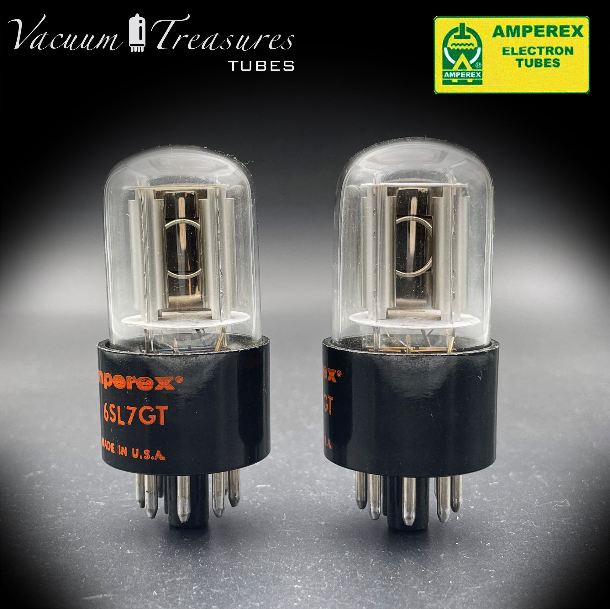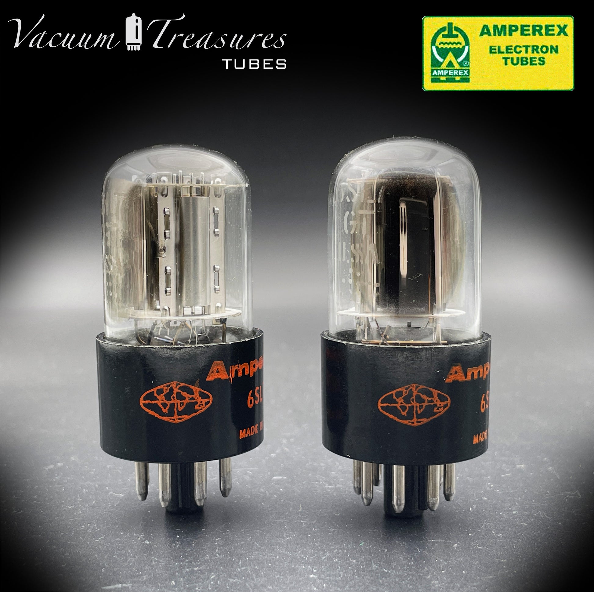 6SL7GT AMPEREX GLOBE Matched Pair Silver Plates Side Halo Getter Tubes USA 60s
