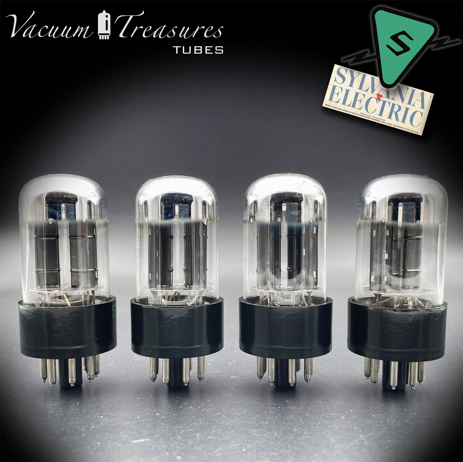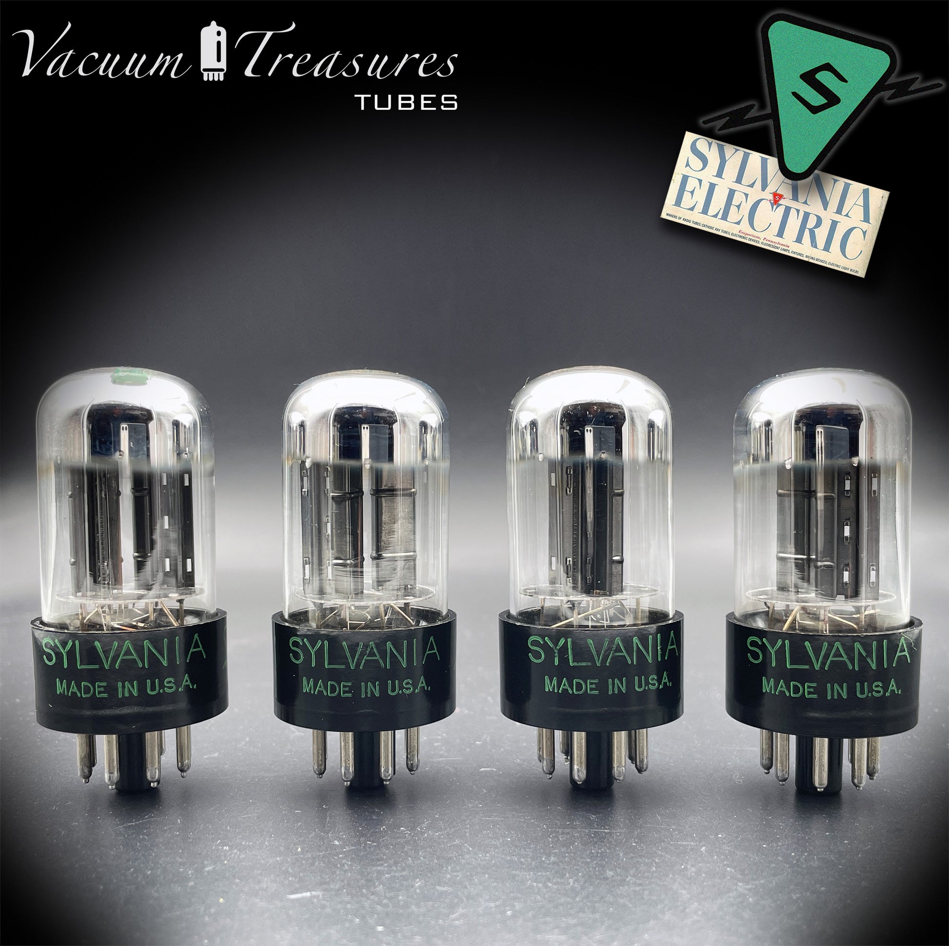 6SN7GTB NOS SYLVANIA CHROME TOP Green Dot Matched Quad Black Plates Tubes USA '50s