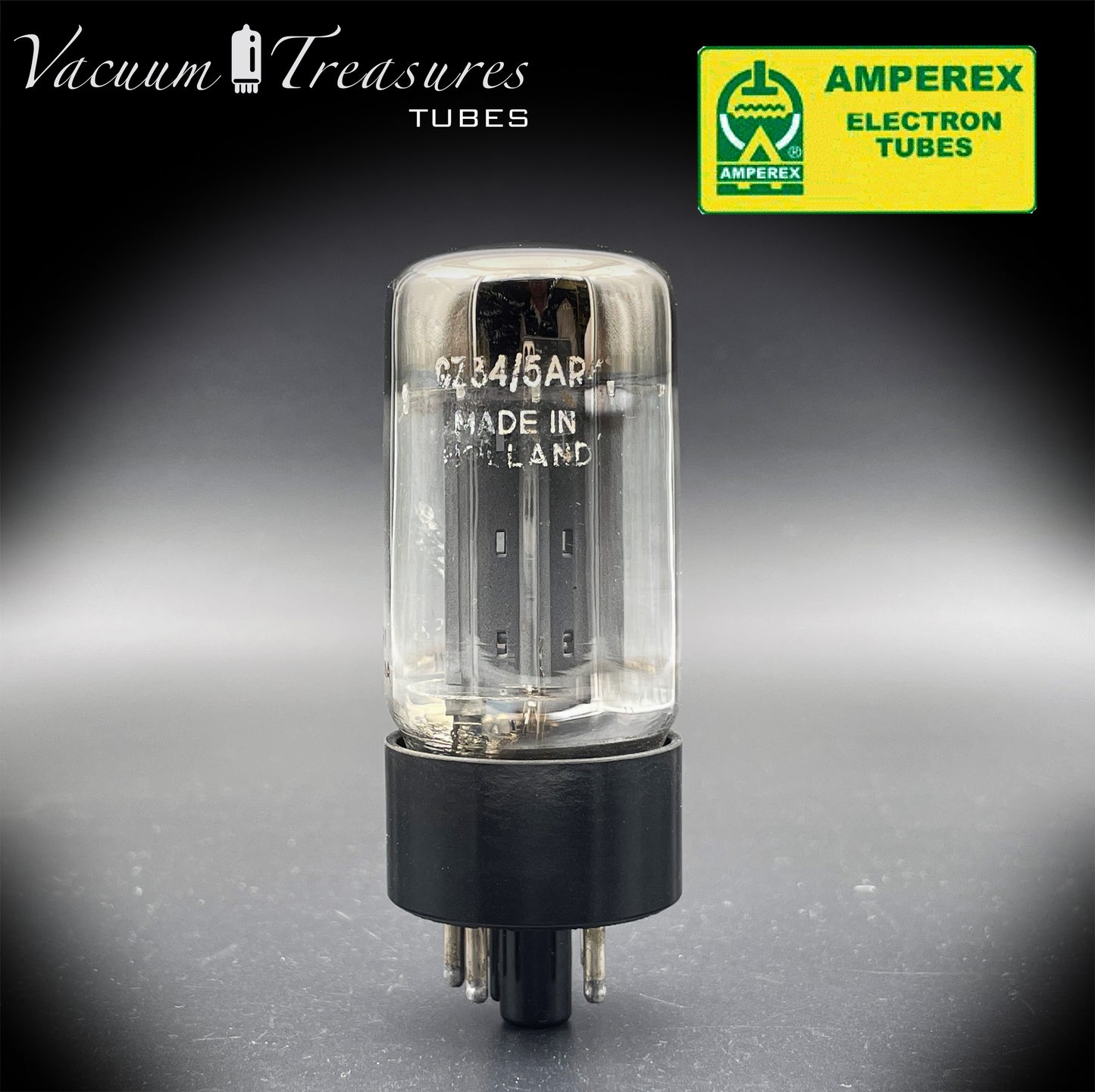 La 5AR4 / GZ34 AMPEREX, realizzata da Philips Sittard (Olanda) negli anni ’50, con codice f31 X9A e getter doppio a forma di D (Double D-Getter), è una delle versioni più rare e ricercate di questa rettificatrice. Apprezzata dagli appassionati per la sua costruzione solida, la straordinaria stabilità elettrica e il contributo sonoro naturale e musicale, rappresenta oggi una delle scelte più raffinate per l’alimentazione di sistemi valvolari hi-fi e strumentali di alto livello. Questa valvola è NOS, testata elettricamente, e proviene da una selezione di esemplari autentici Made in Holland.