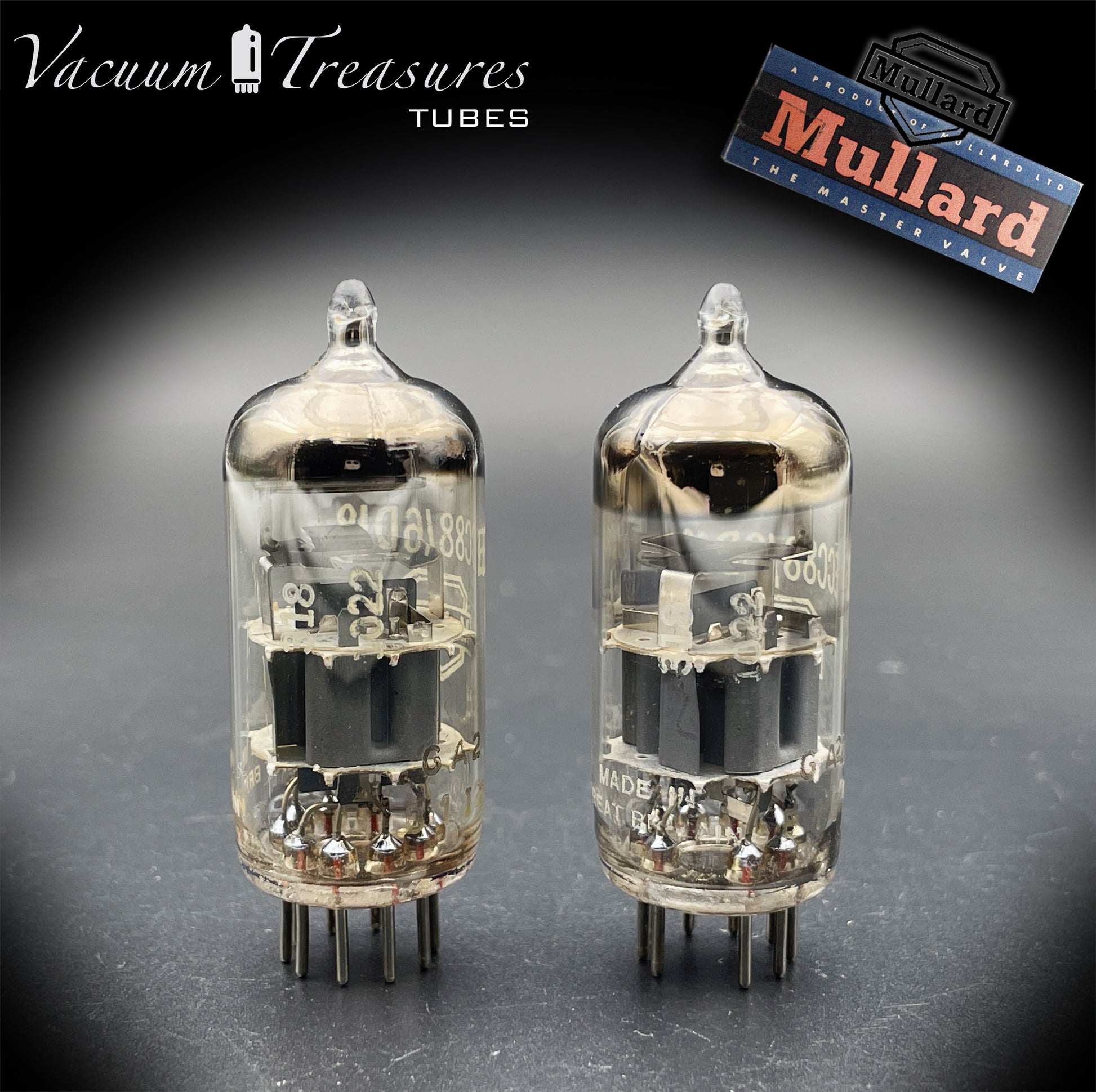 ECC88 6DJ8 Mullard – Large Halo Getter Tested Pair Tubes GA2 B1I2 Blackburn UK 1961