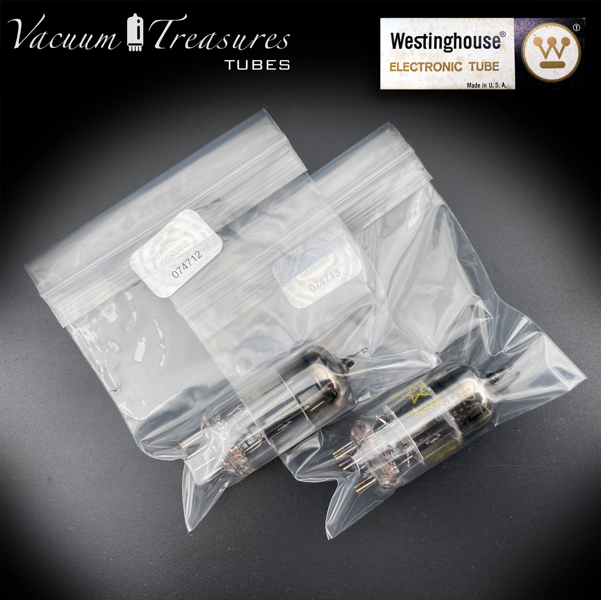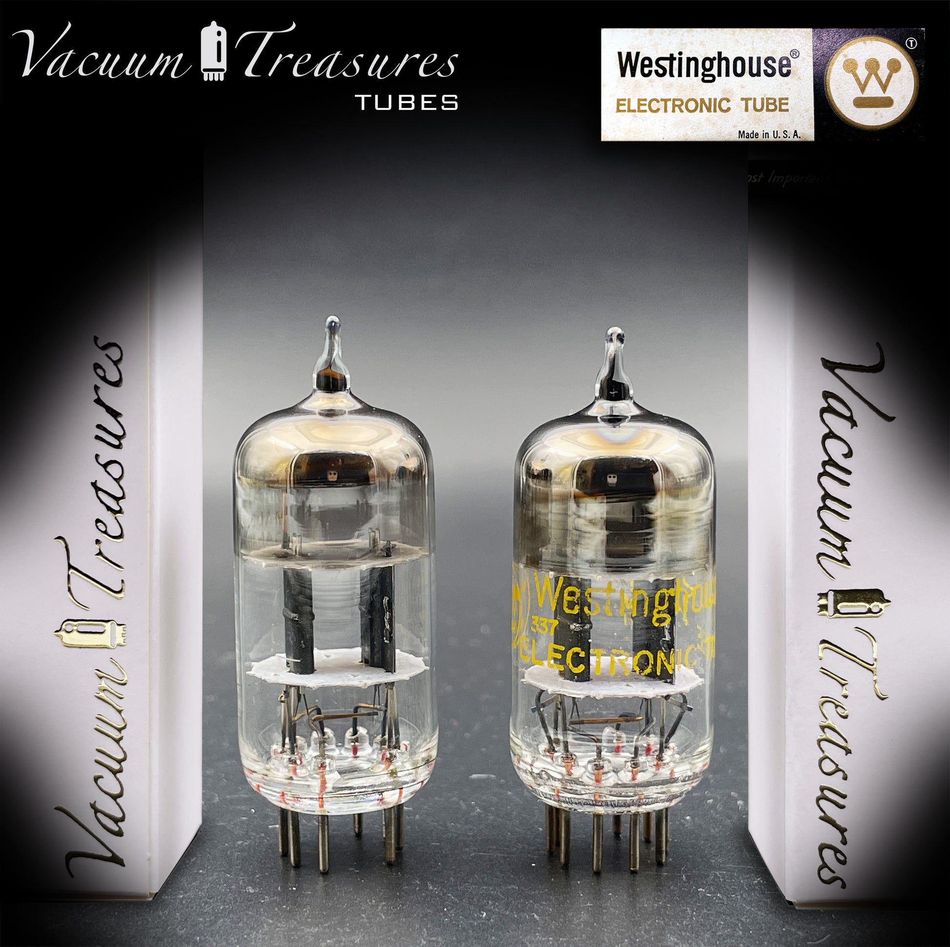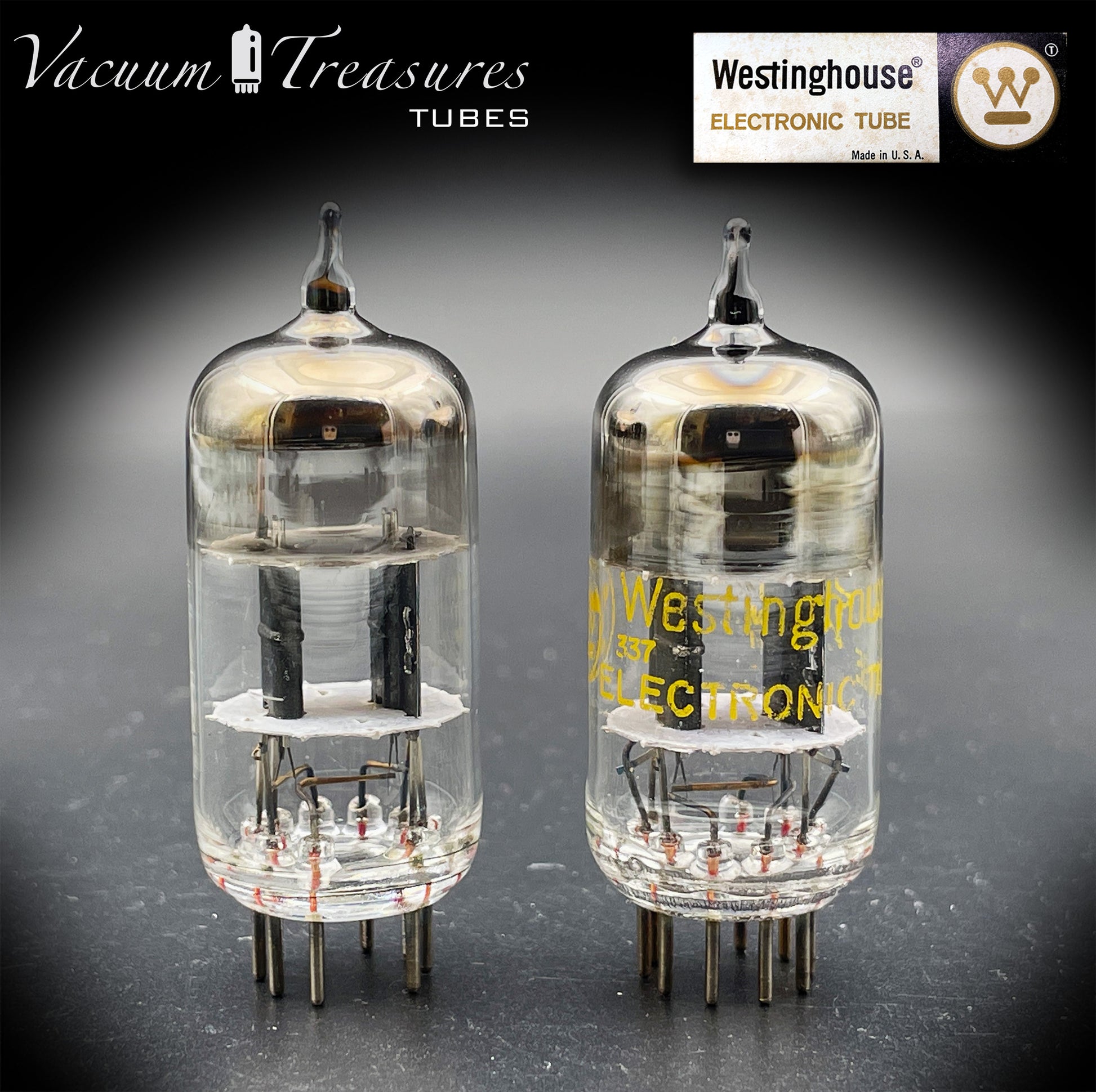 12AT7 / ECC81 Westinghouse Black Plates Halo Getter Matched Pair – Tested STRONG – Made in Canada '69
