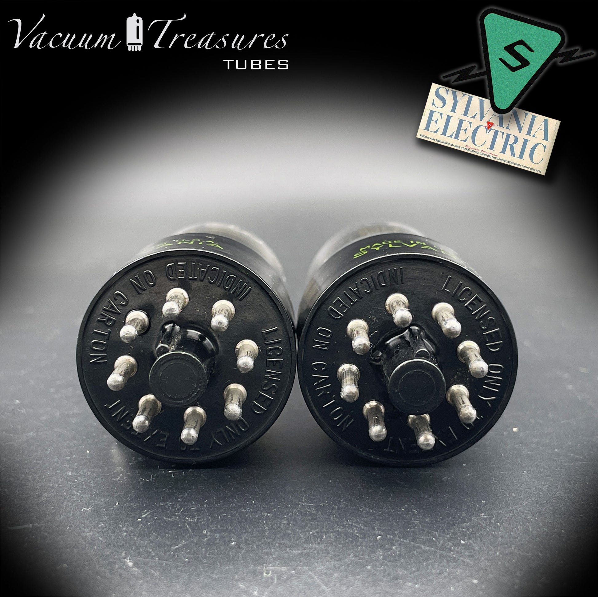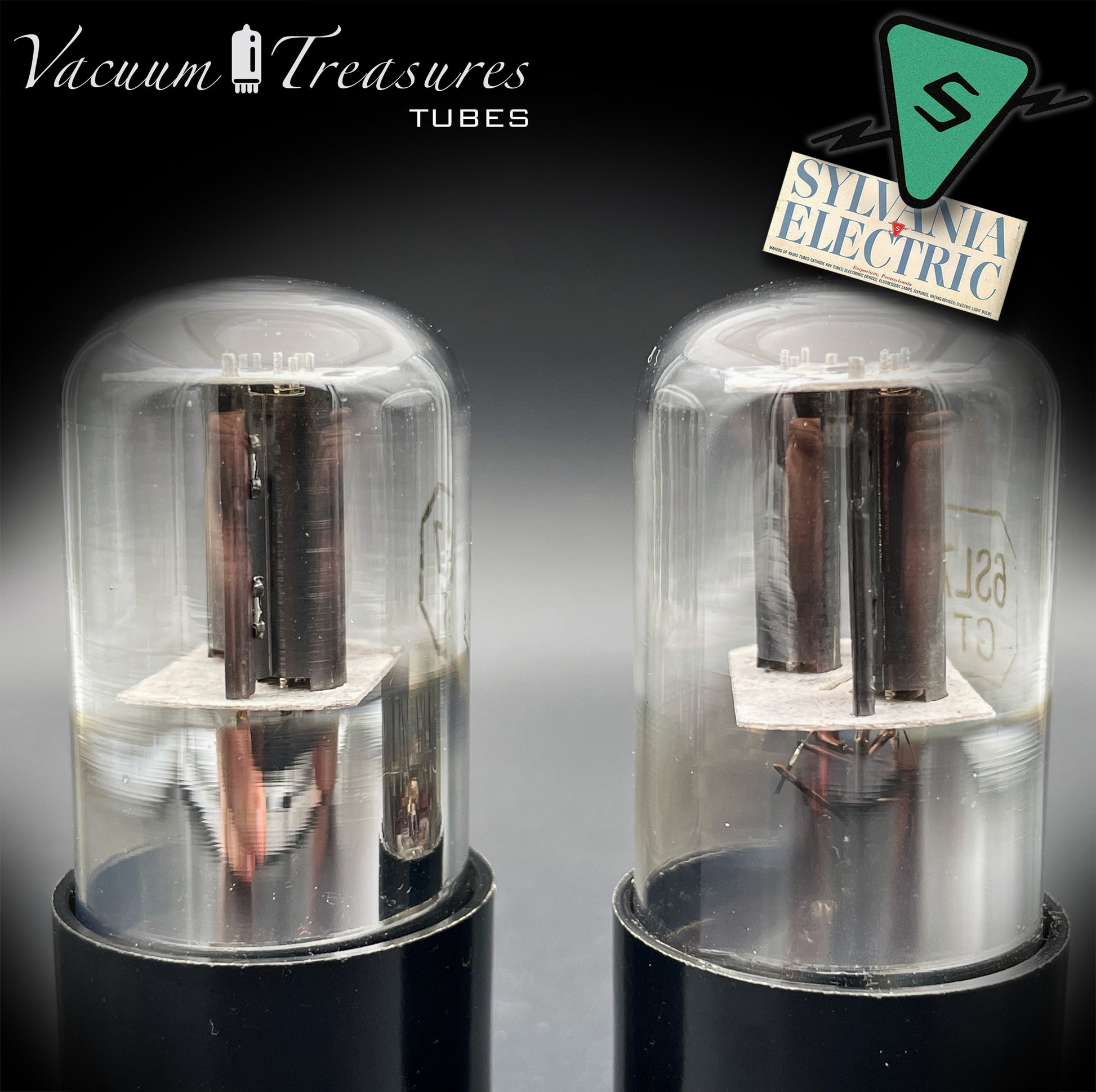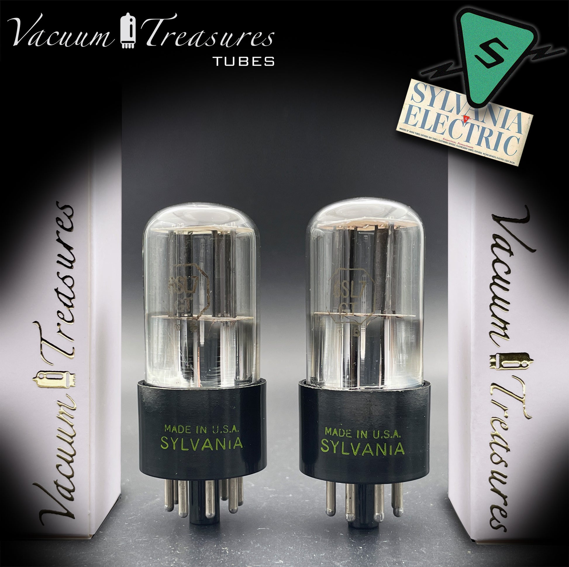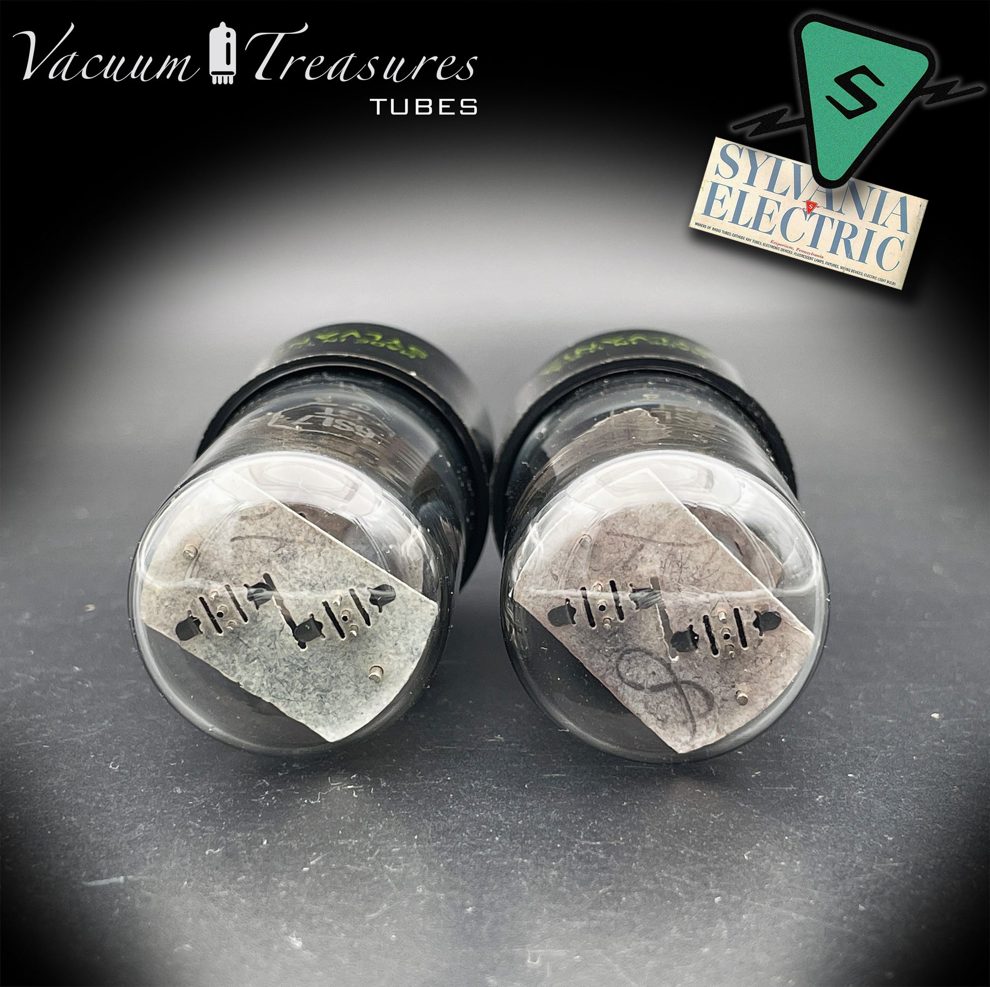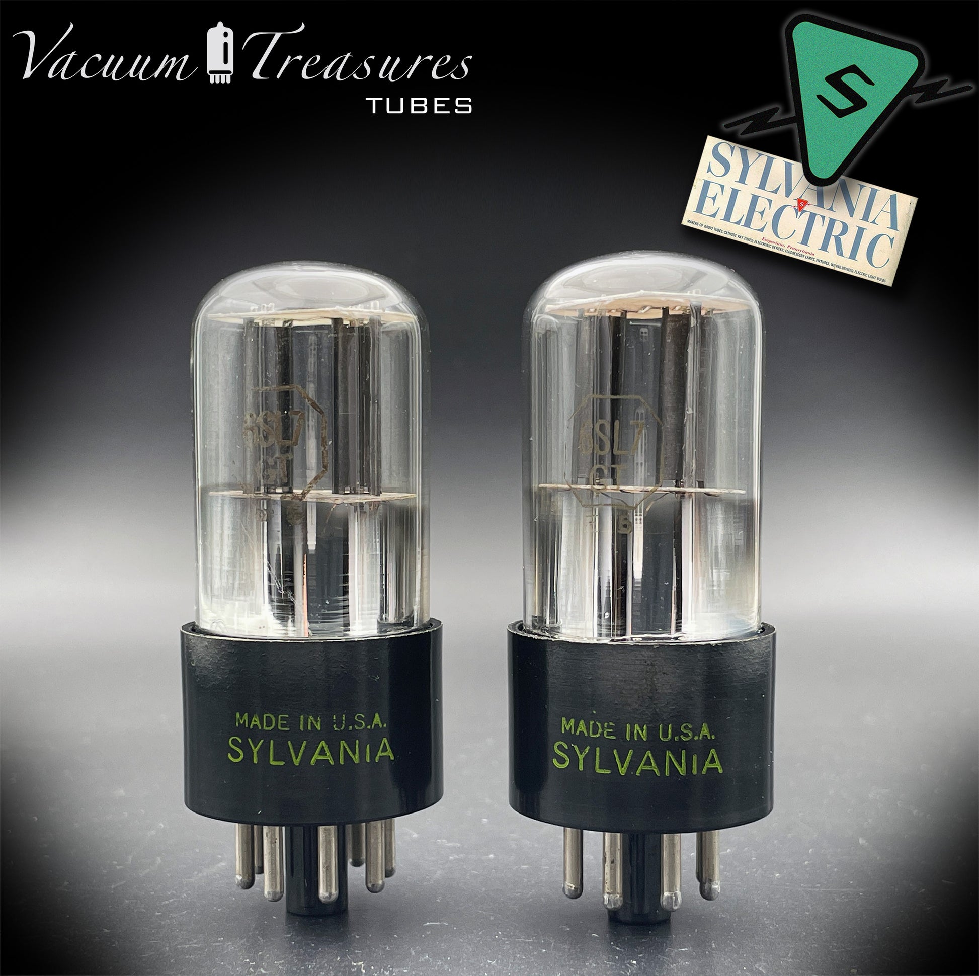 6SL7GT (VT-229) SYLVANIA NOS Black Round Plates Foil Getter AMPLITREX Matched Pair Made in USA '50s.