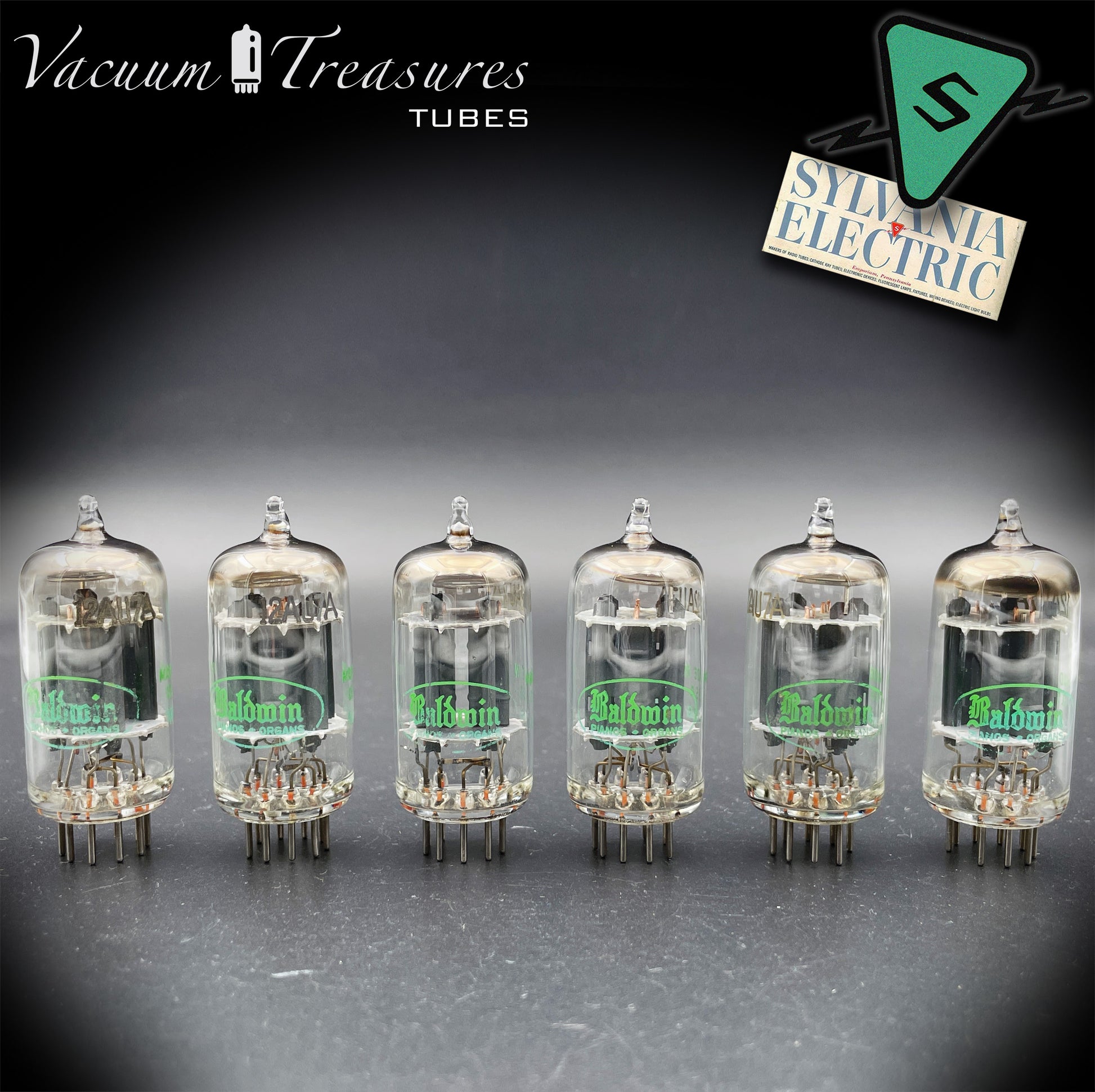 12AU7A ( ECC82 ) NOS Baldwin by SYLVANIA Long Gray Plates Halo Getter Matched Sextet Same Data Codes Tubes Made in USA '51