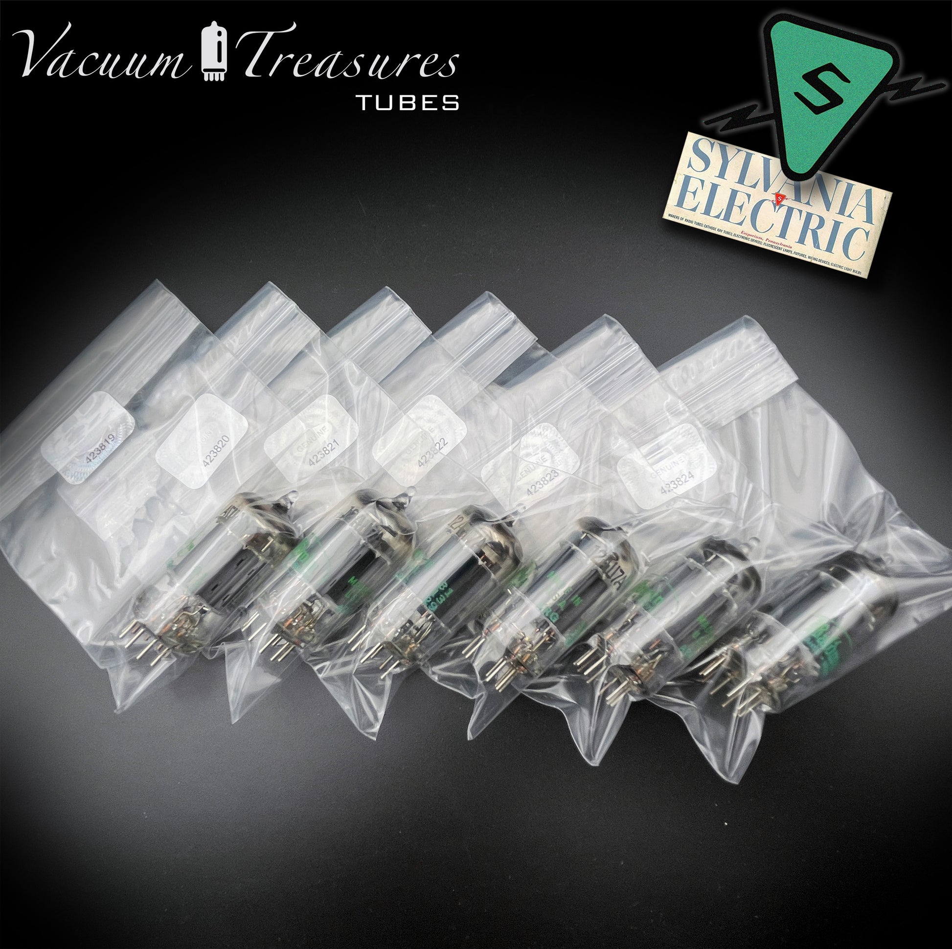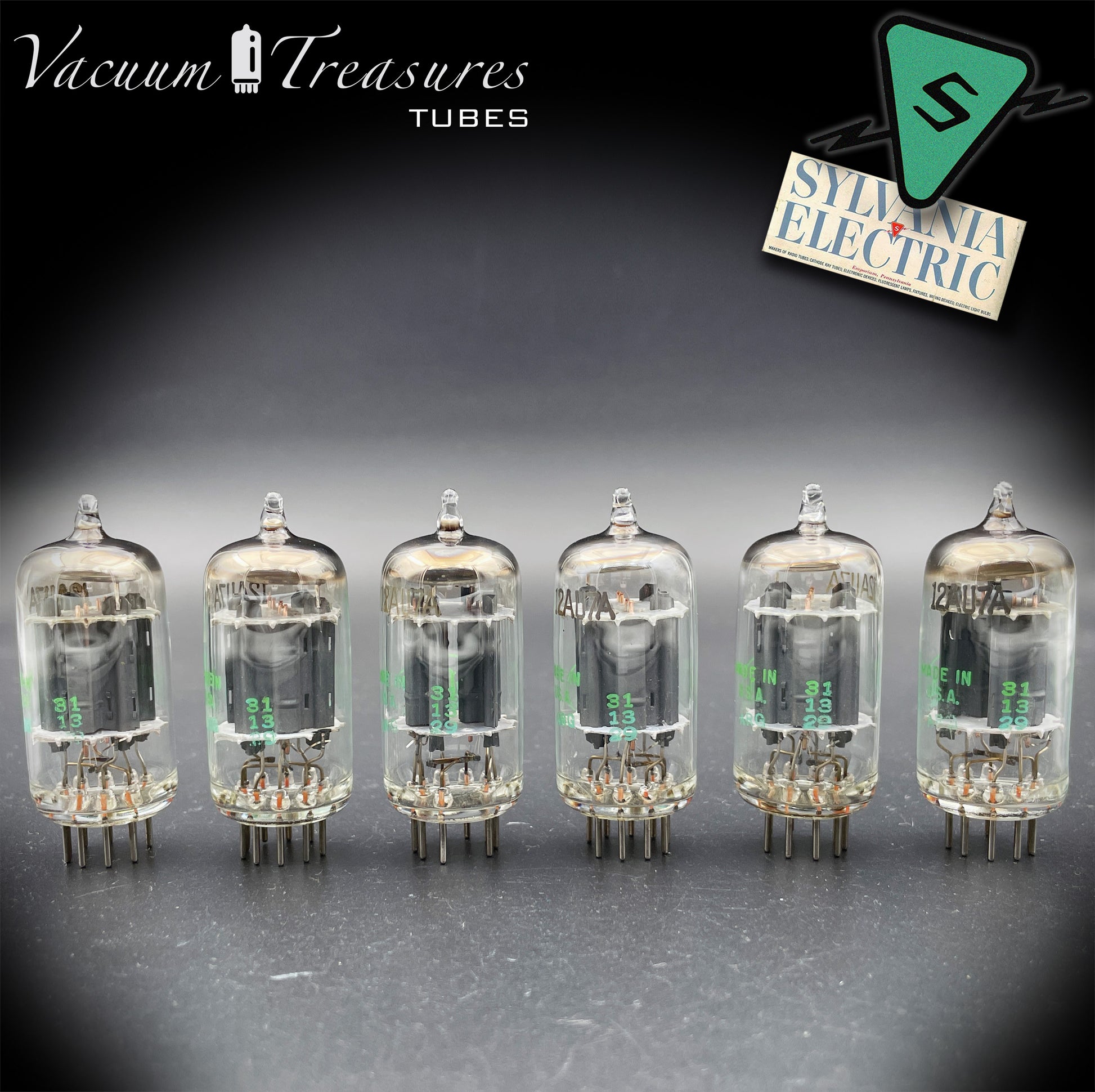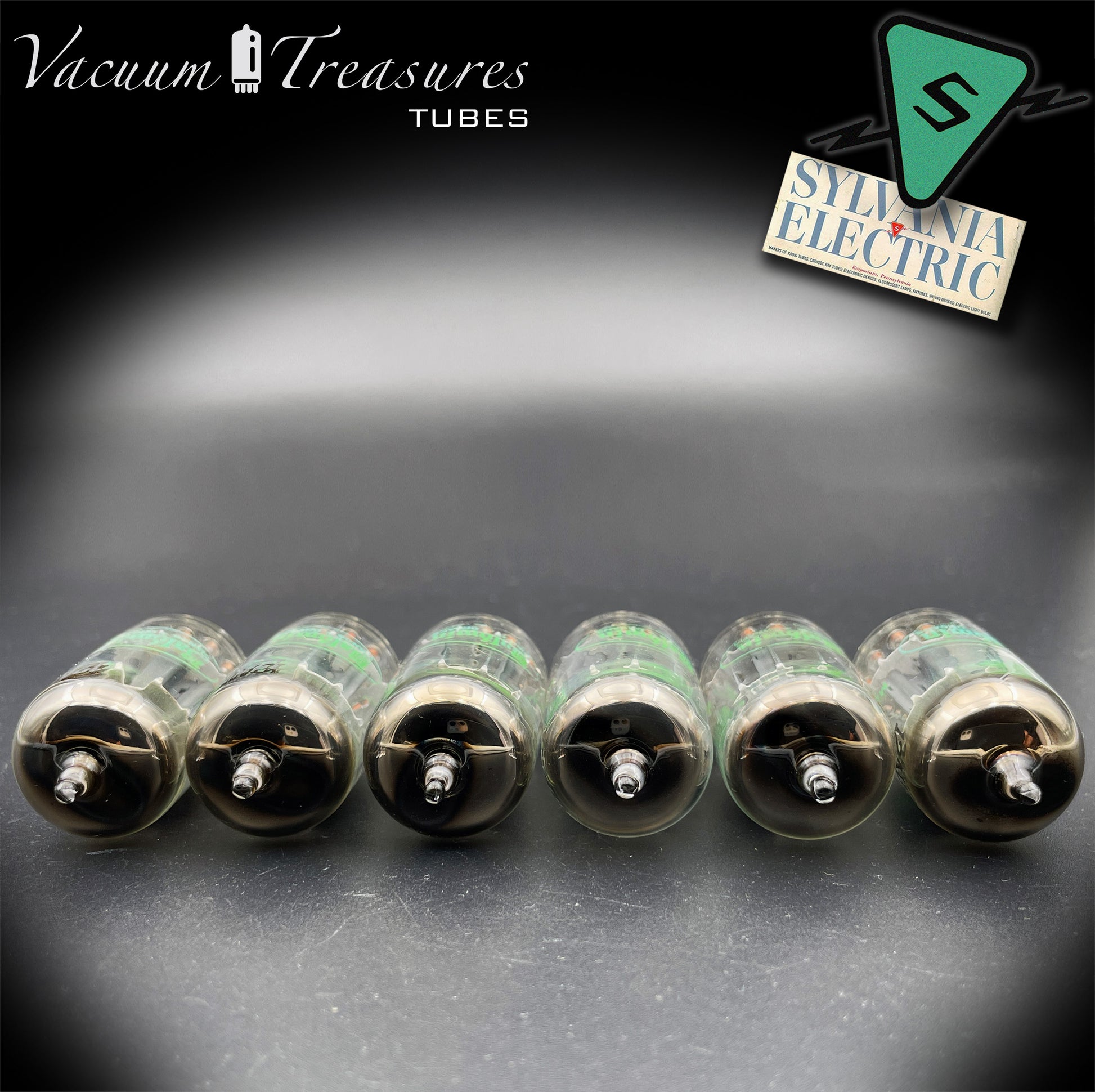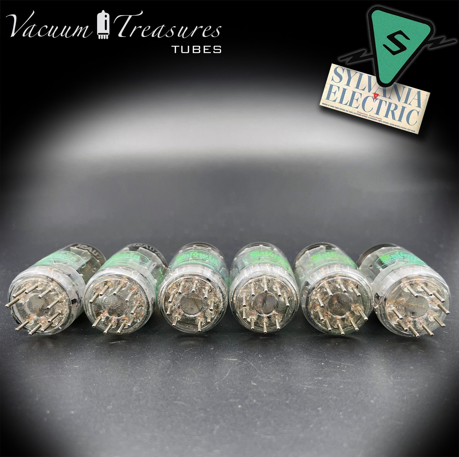 12AU7A ECC82 NOS Sylvania – Long Gray Plates Halo Getter Matched Sextet Tubes USA 1951