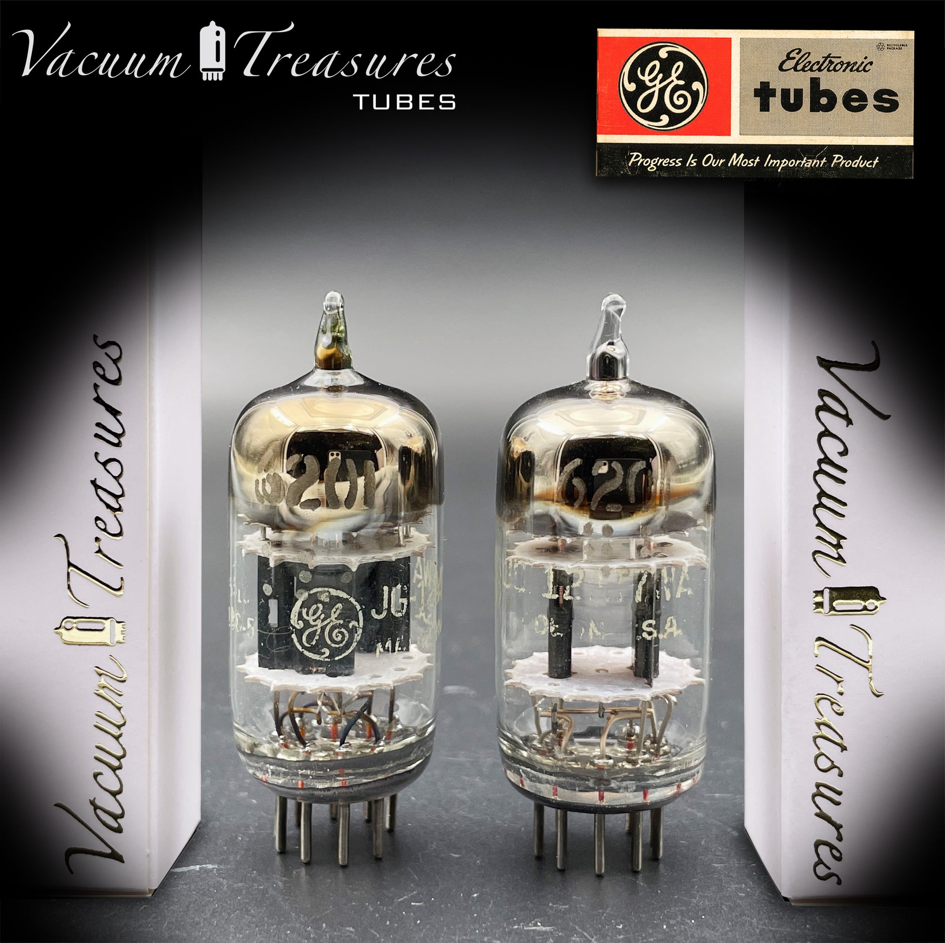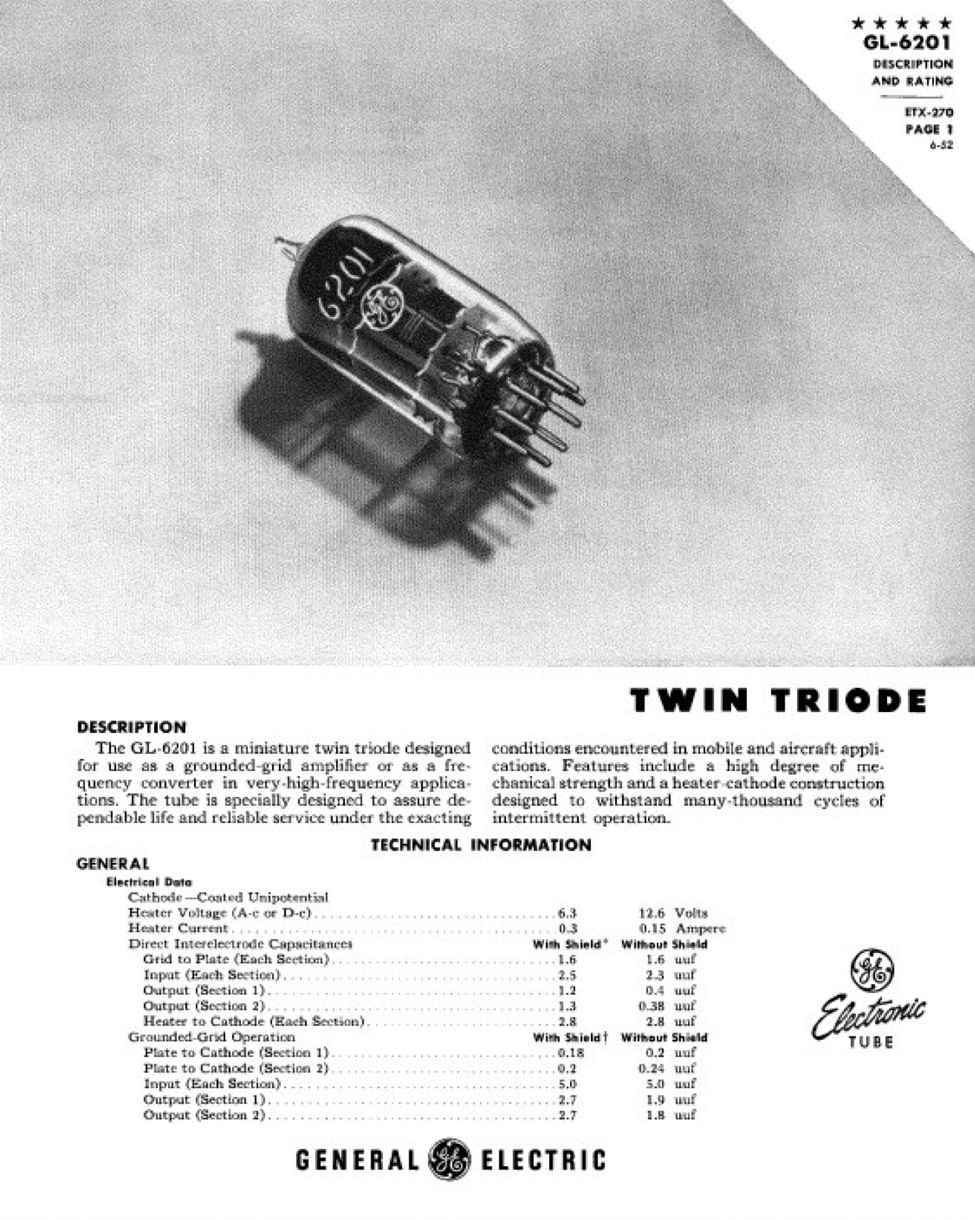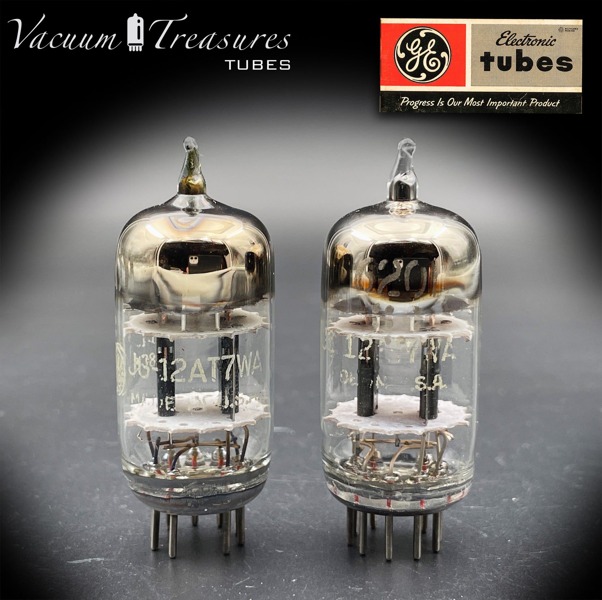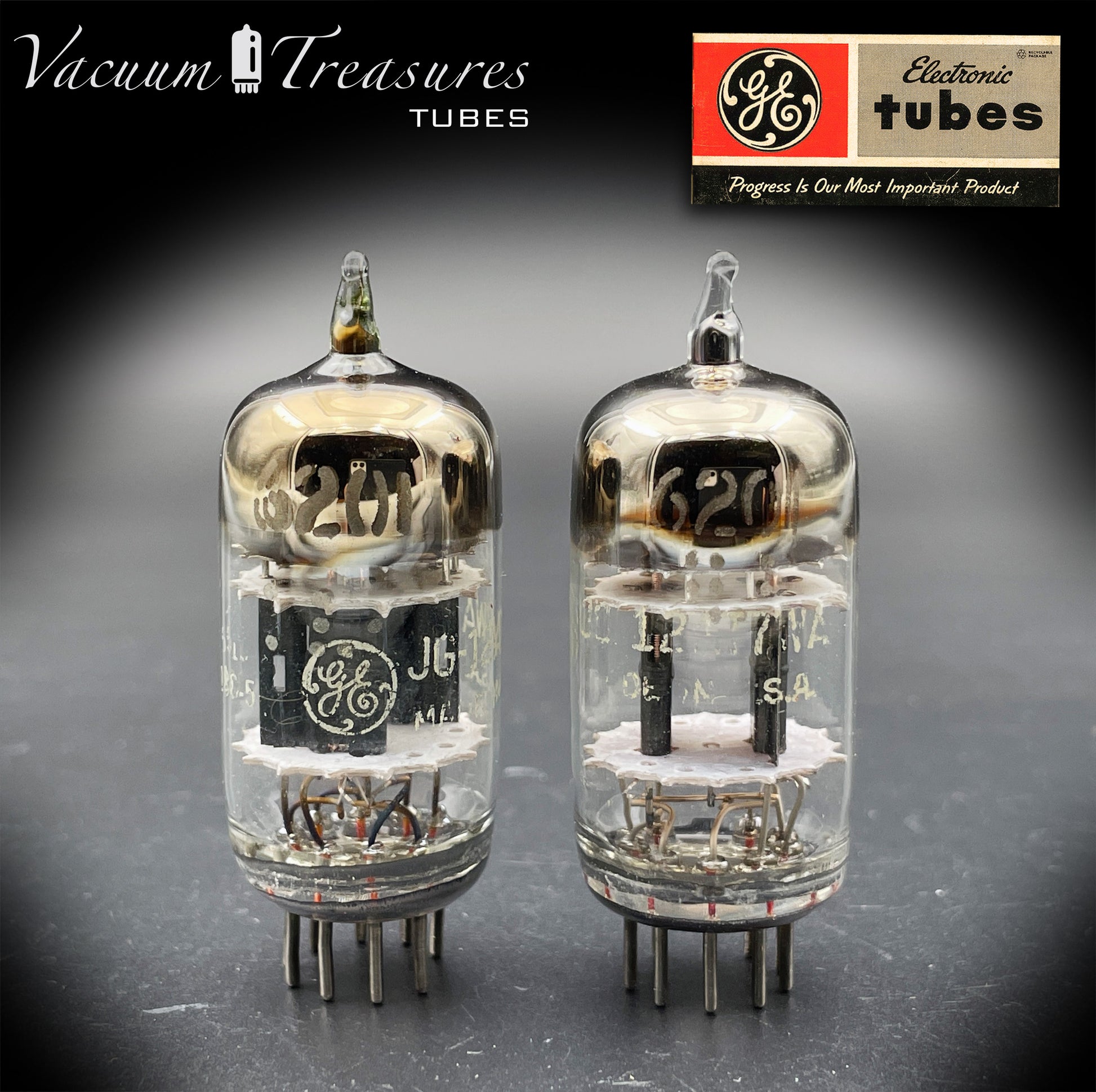 Questa coppia selezionata di 6201 / JG-12AT7WA è stata prodotta da General Electric (GE) negli Stati Uniti, e rappresenta una versione militare (Joint Army-Navy) ad alta affidabilità della classica 12AT7.