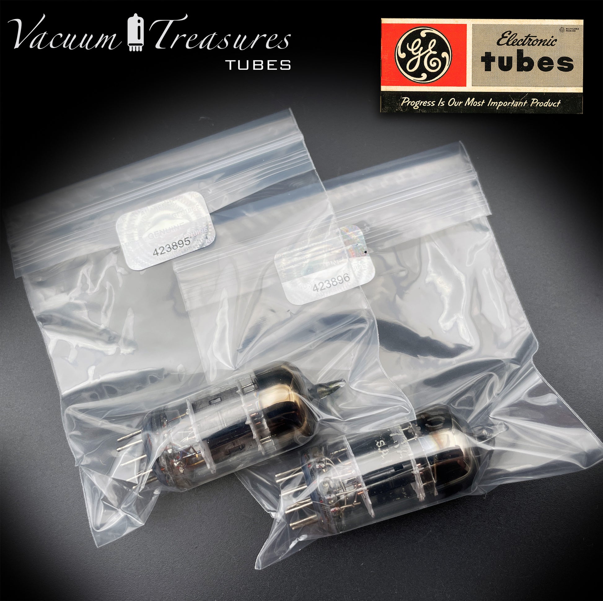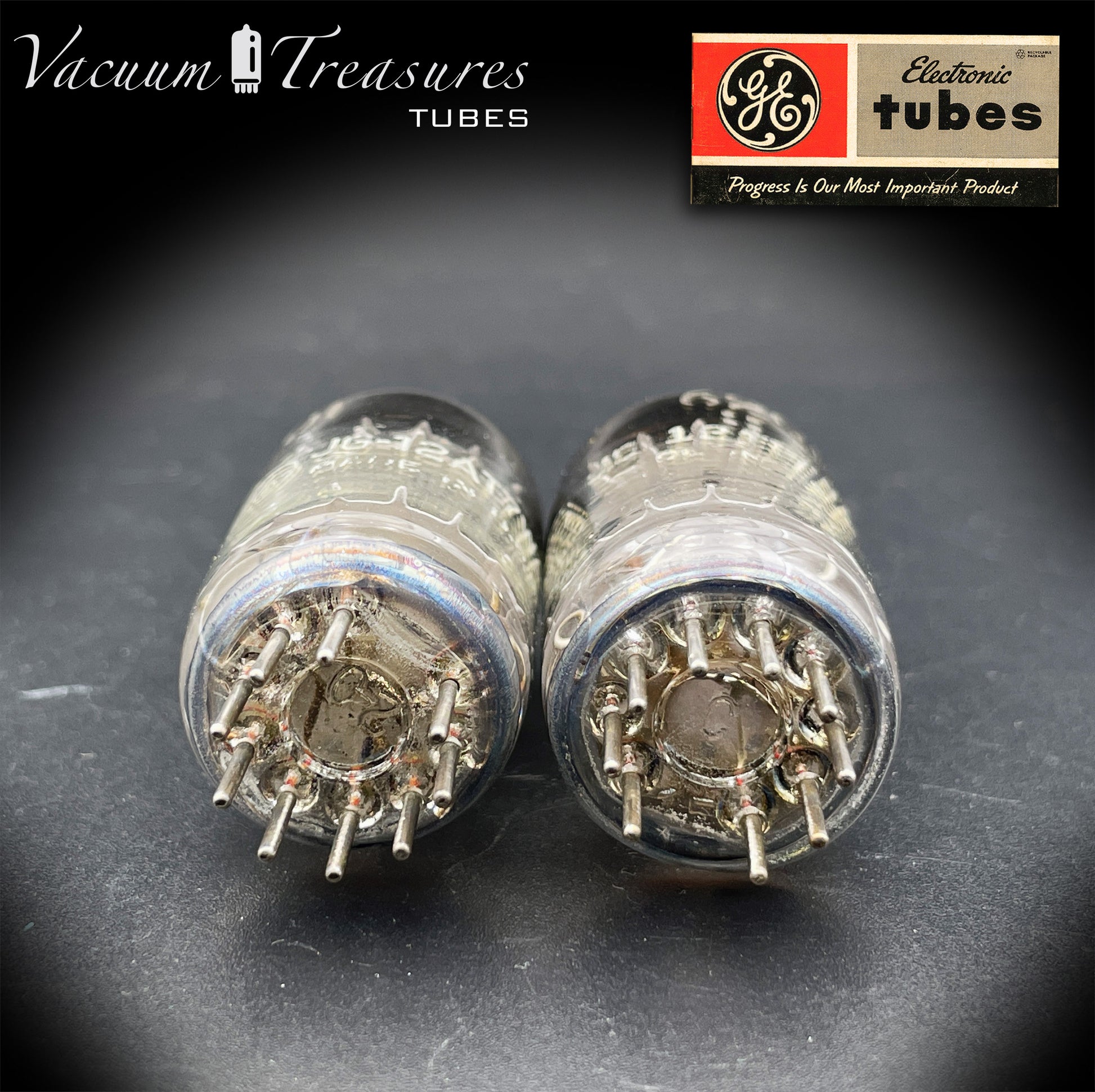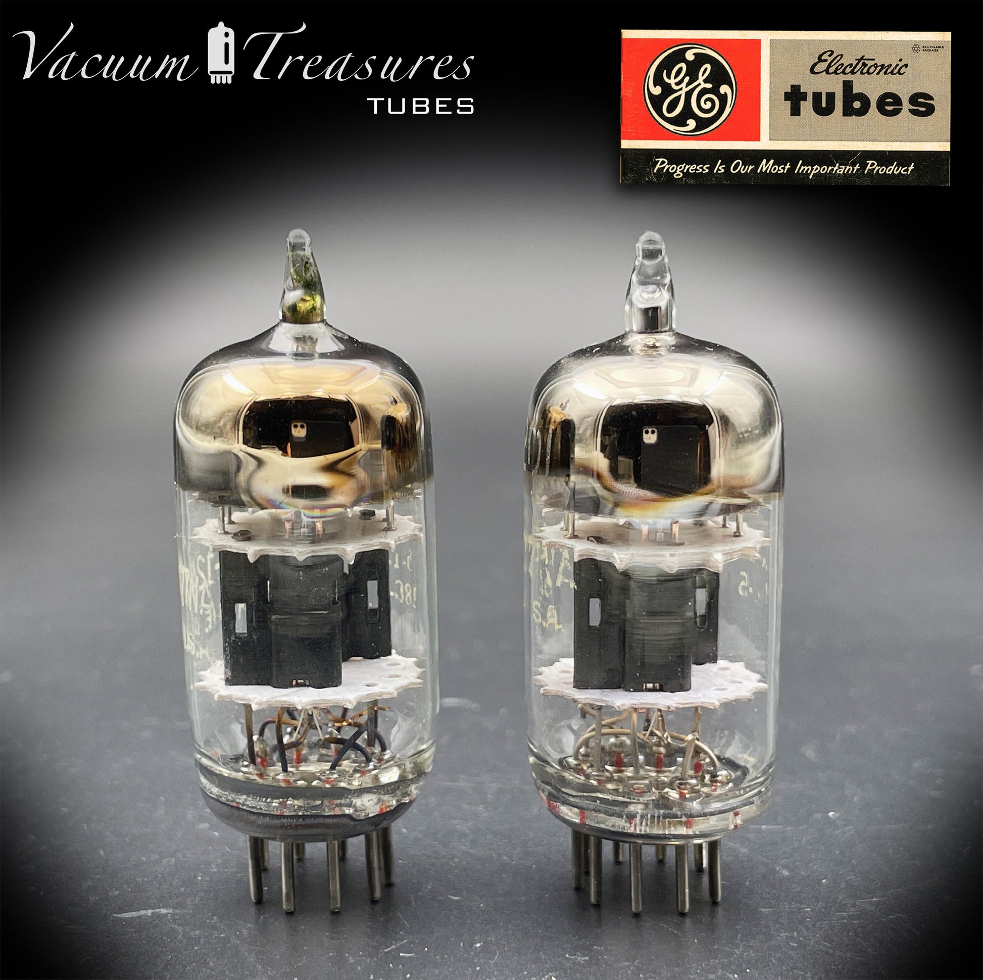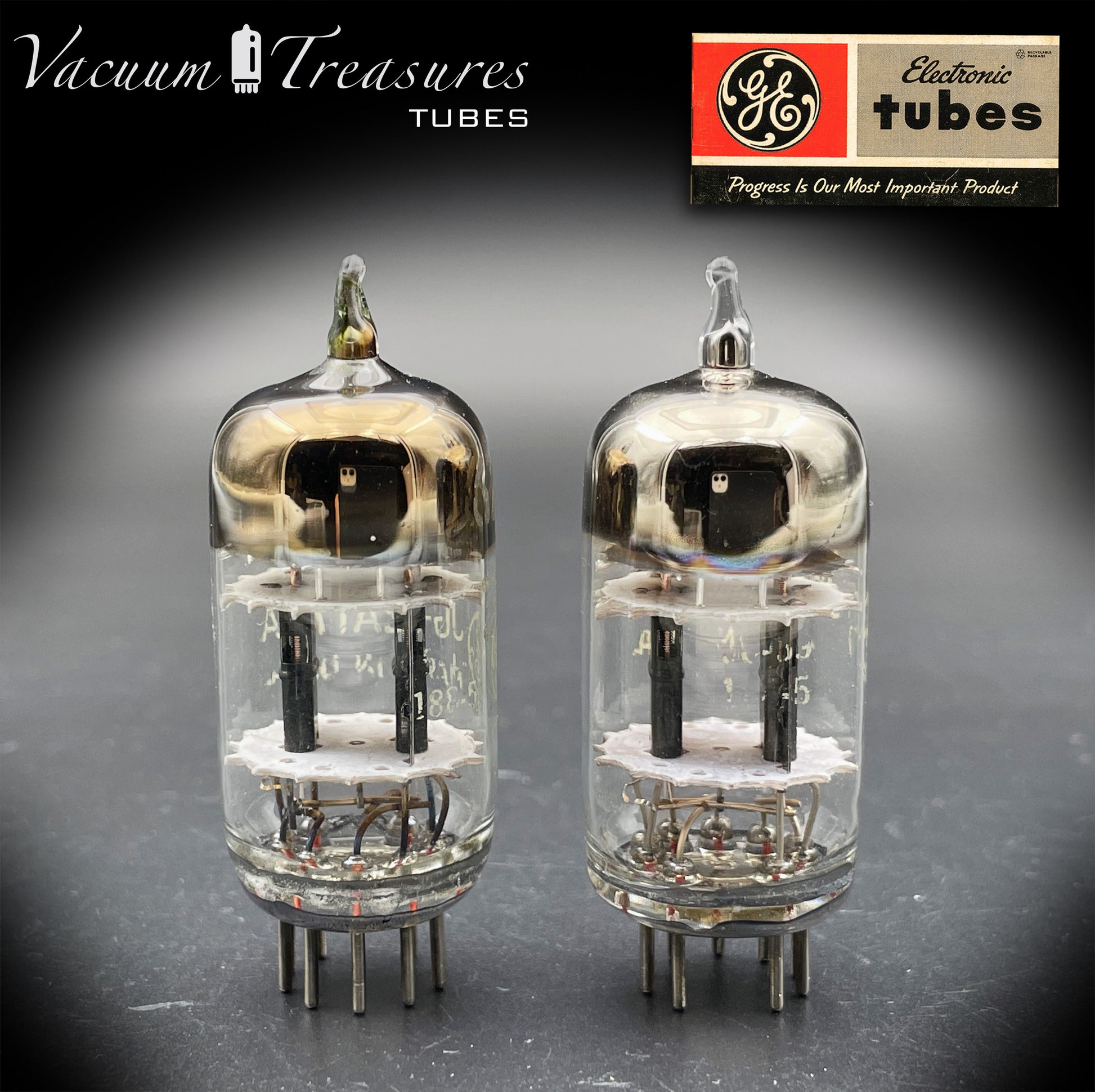 Le valvole presentano la tipica struttura a 3 mica, con placche nere a forma di ala (black wing plates), caratteristiche di molte delle migliori produzioni GE degli anni ’50–’60.
