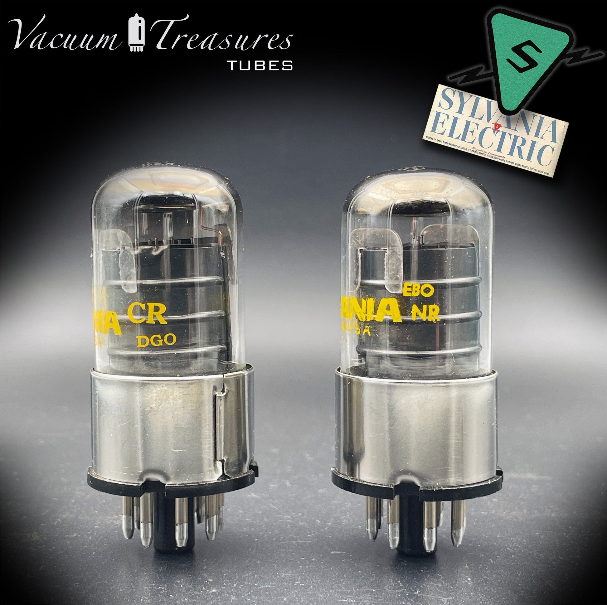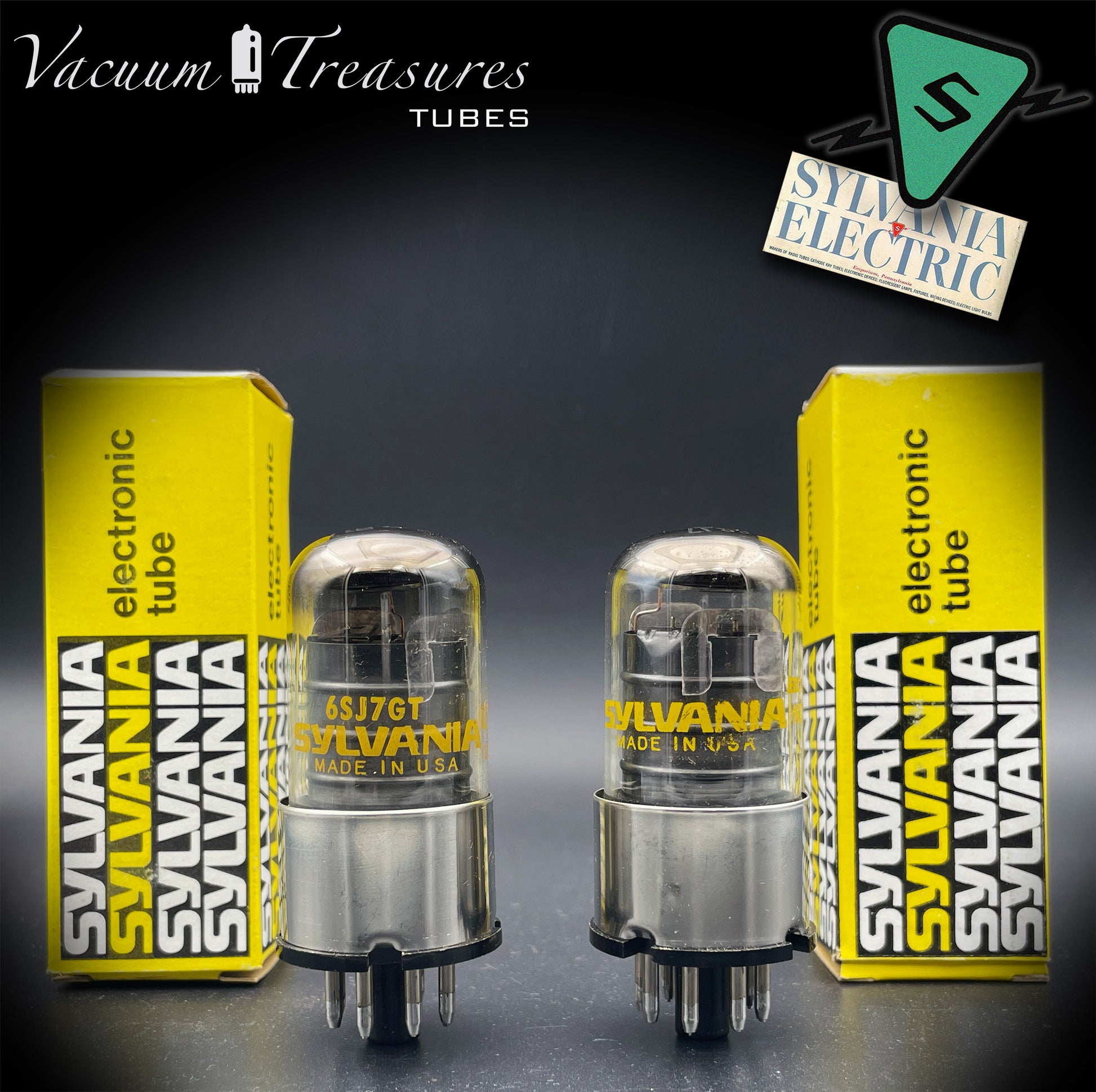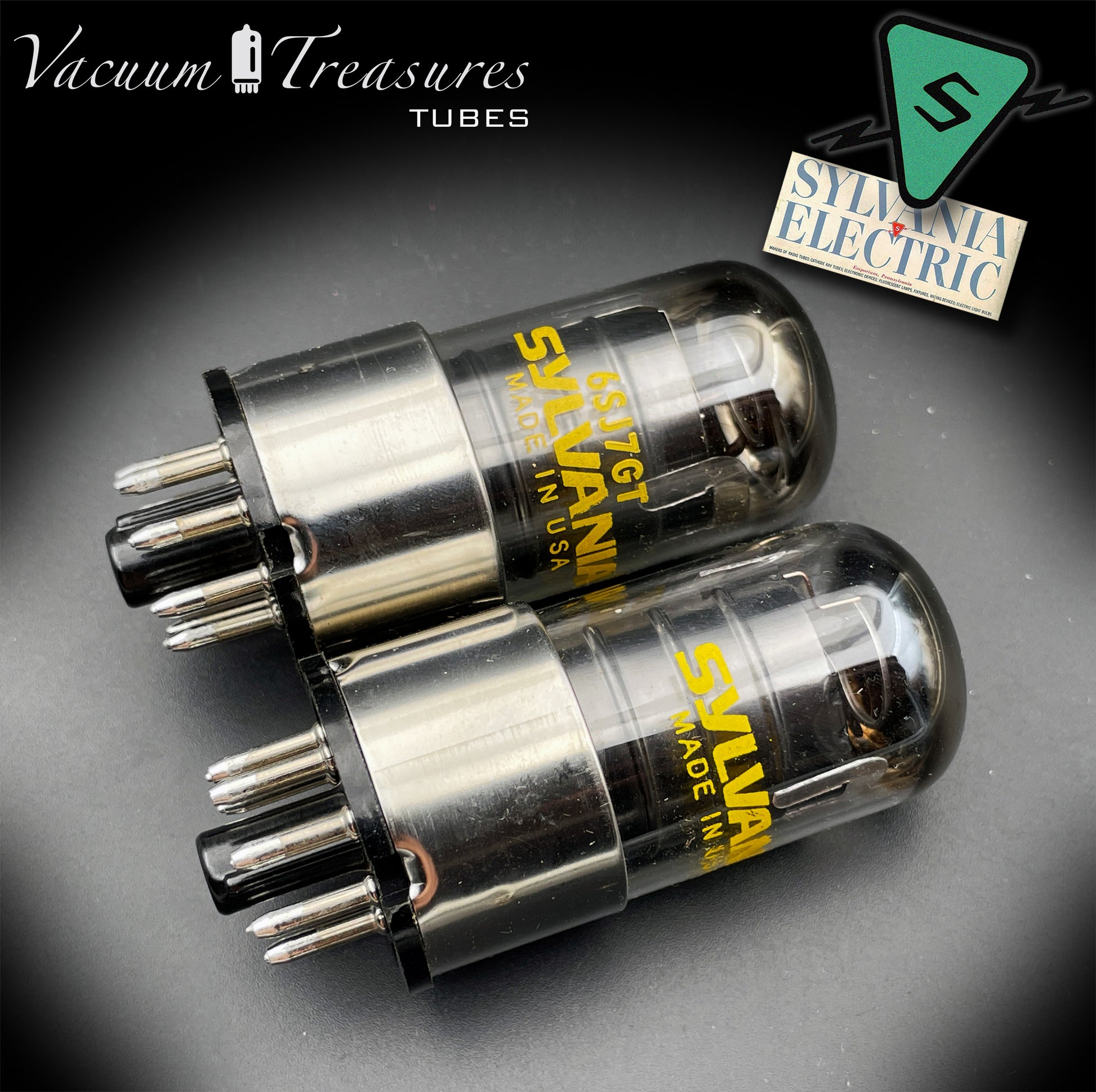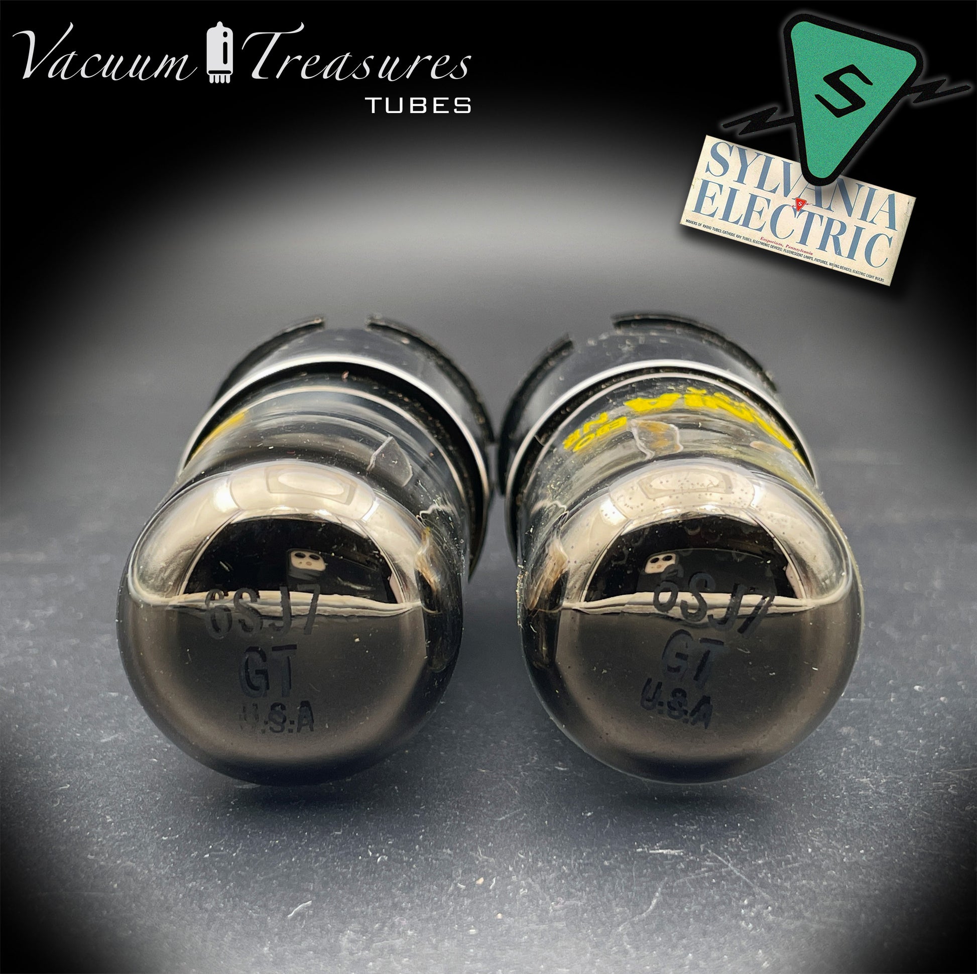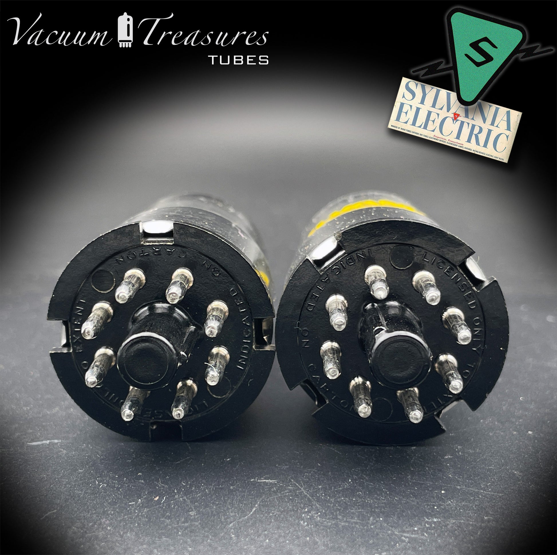 6SJ7GT SYLVANIA Matched Pair Metal Base Black Plates Halo Getter Made in USA '60s