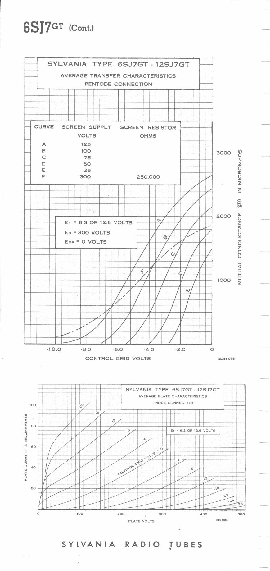 Questa coppia matched di 6SJ7GT Sylvania proviene dalla produzione americana degli anni ’60 ed è caratterizzata da base metallica, placche nere e getter ad anello (halo getter).
