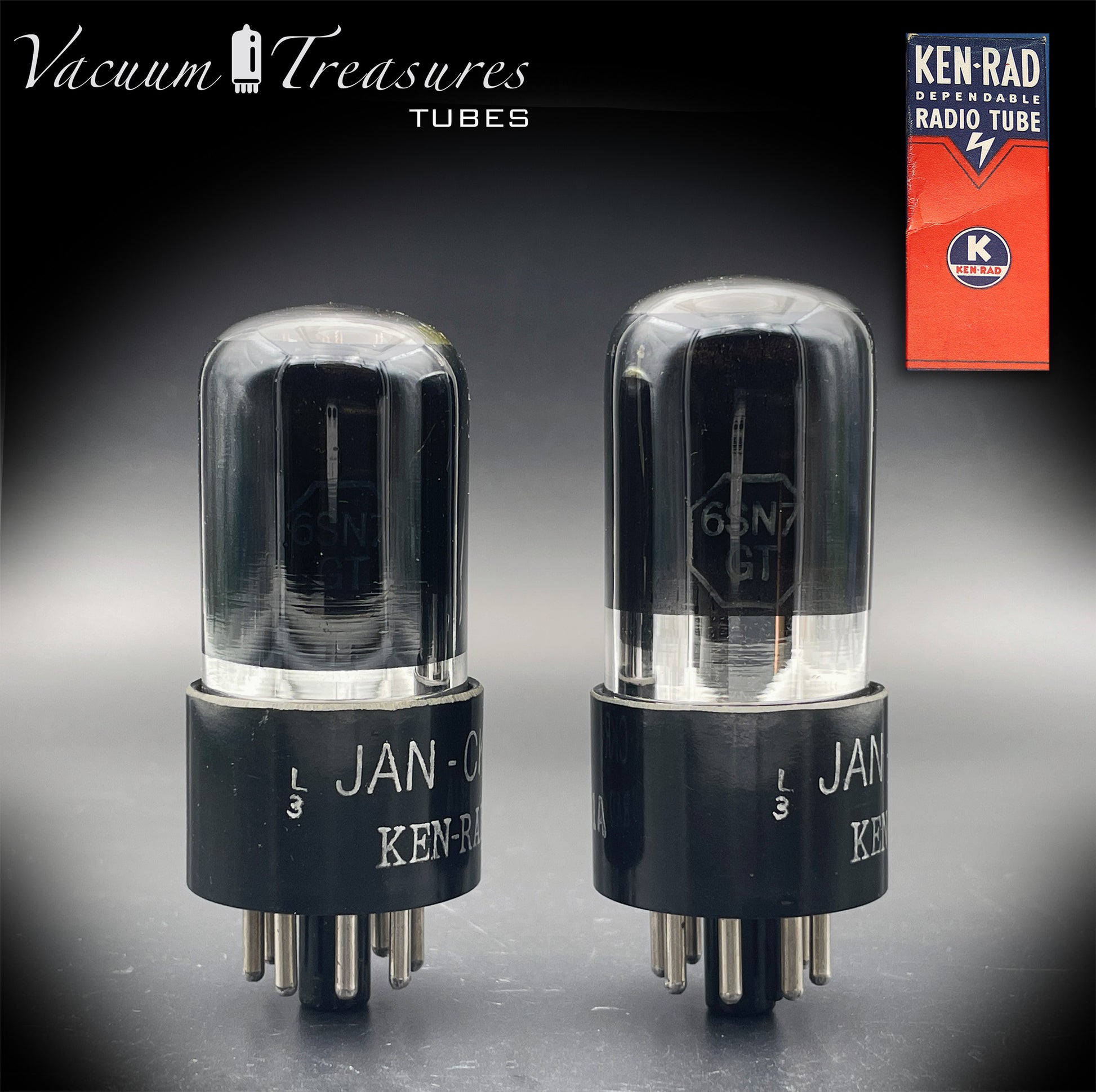 6SN7GT ( VT-231 ) KEN-RAD Black Plates Black Glass Foil Getter Matched Pair Made in USA '40s