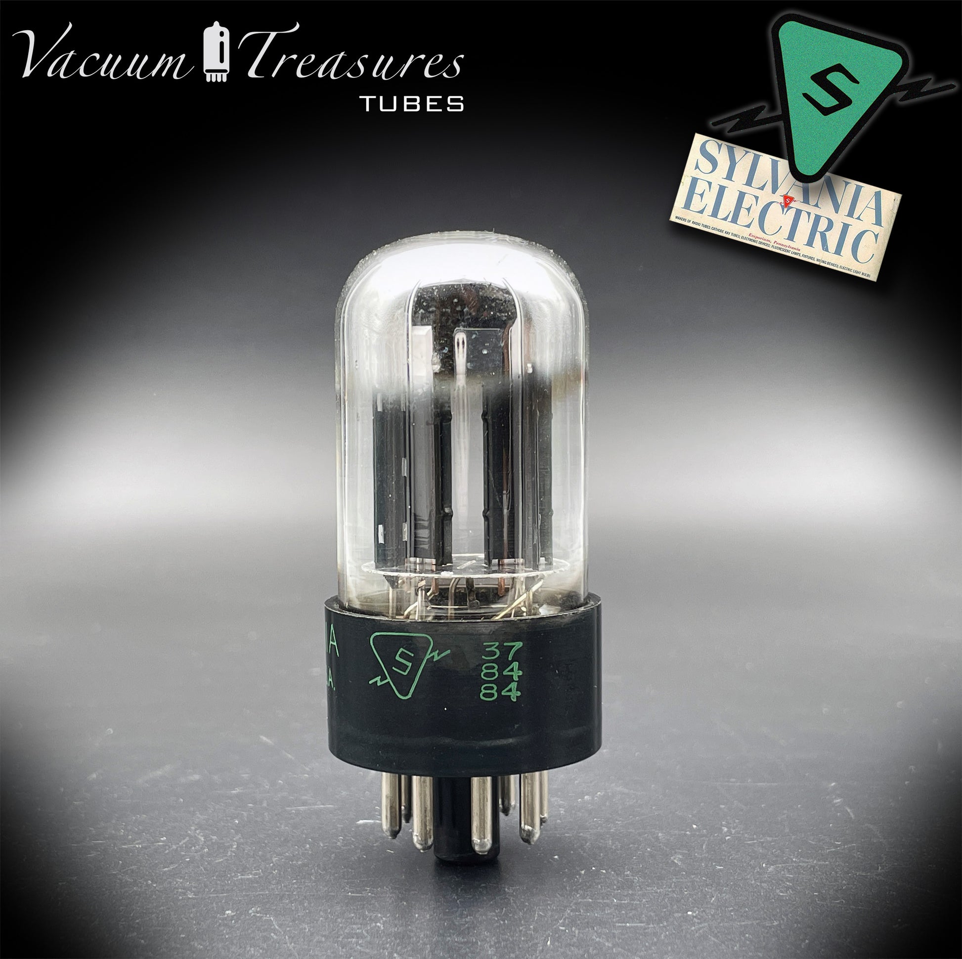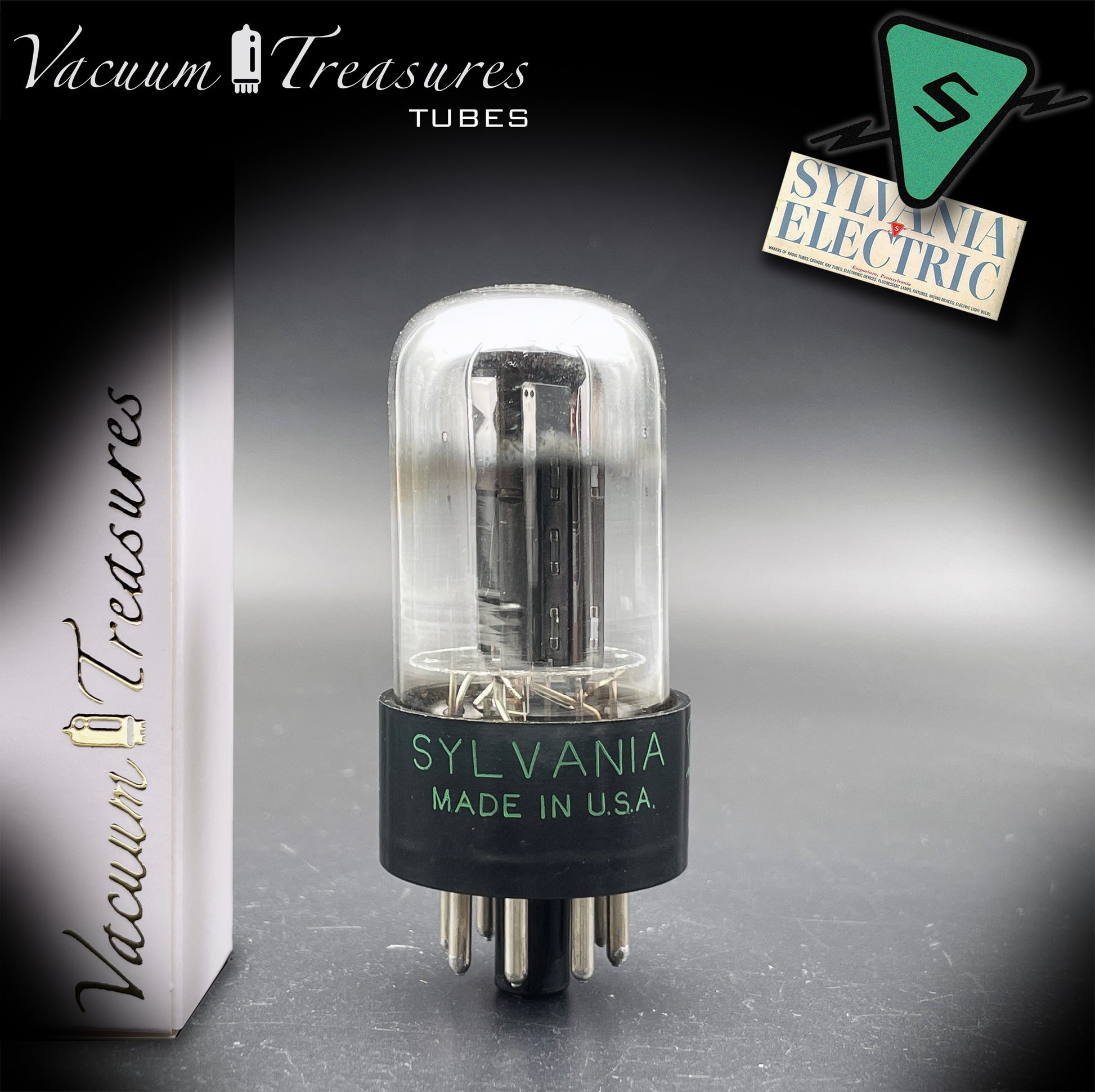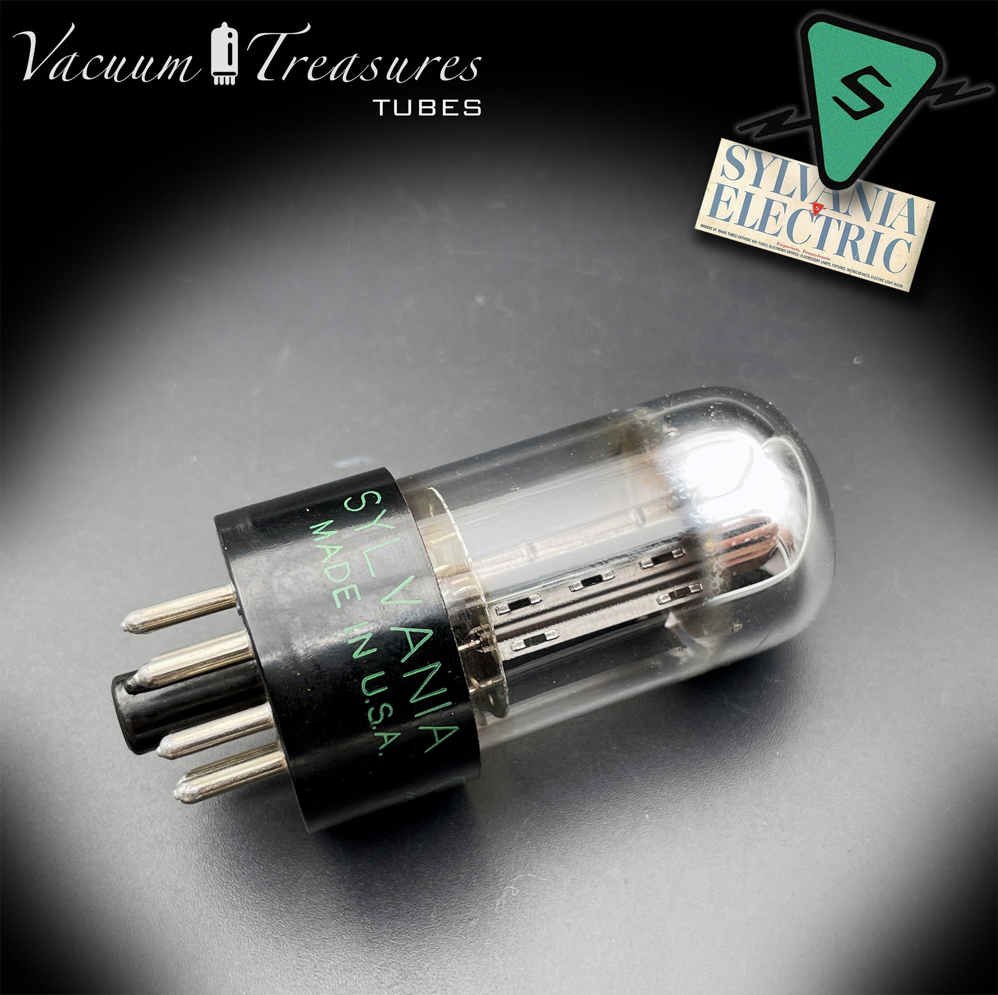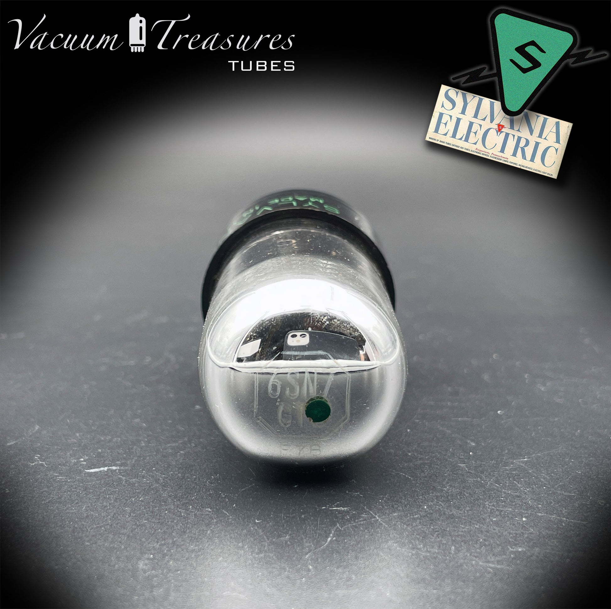 6SN7 GTB NOS SYLVANIA CHROME TOP Green Dot Black Plates Tested Tube Made in USA '47