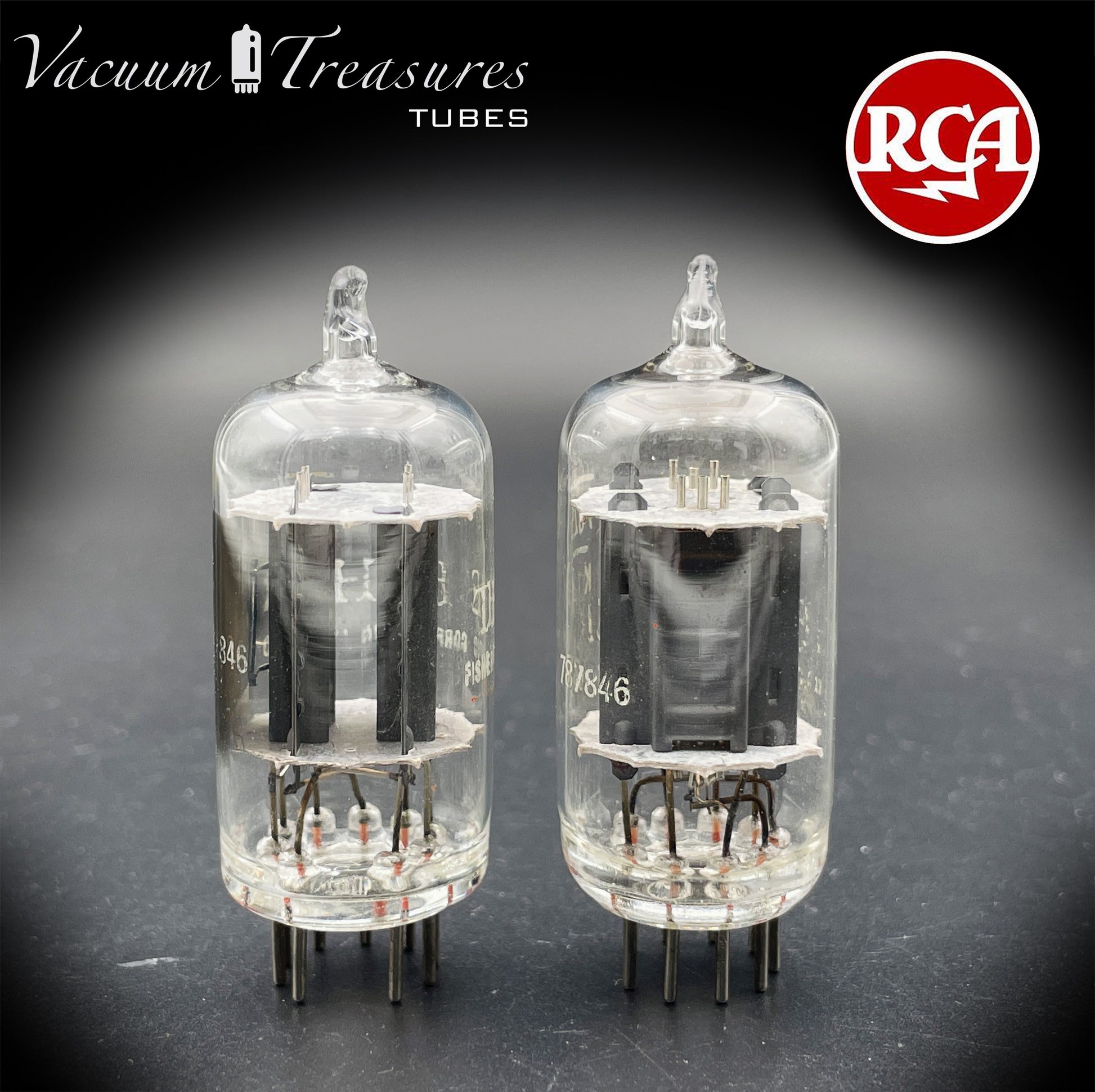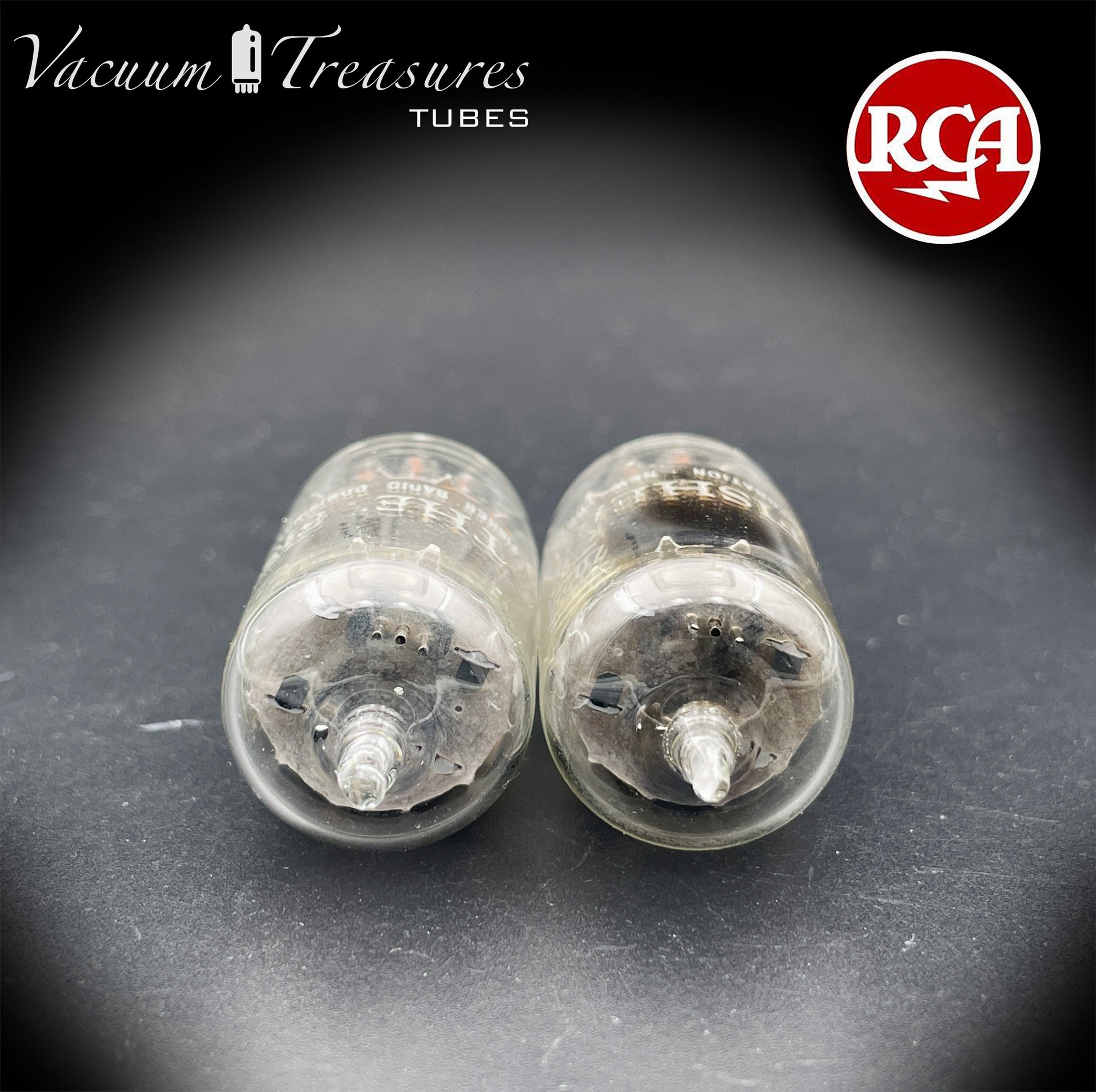 7025 ( ECC83 12AX7 ) RCA Clear Top Matched Pair Long Gray Plates Side D Getter Tubes Made in USA '60s