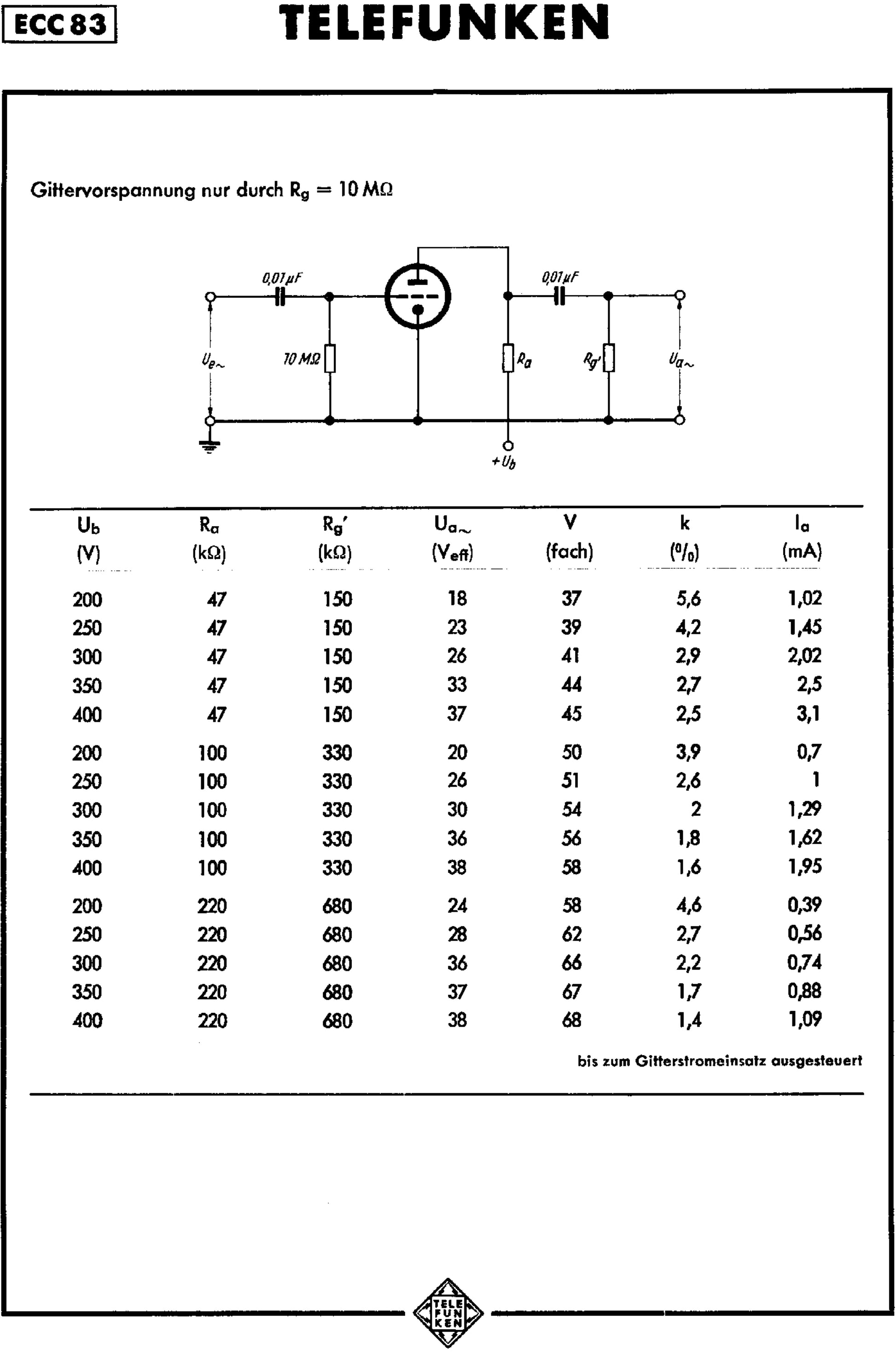 • Media 100%: Gm = 1600 ; Ia = 1,2 mA