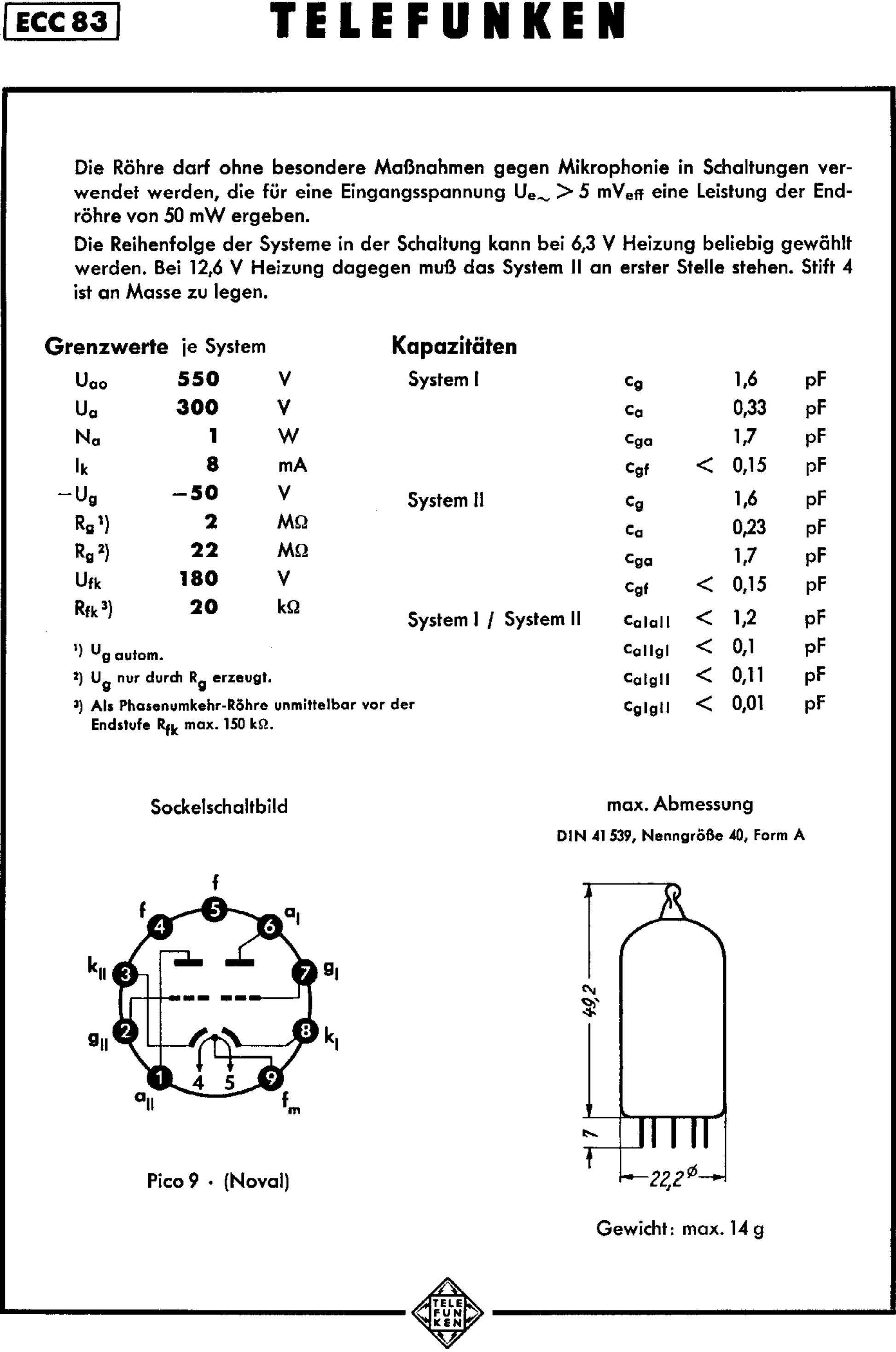 ECC83 ( 12AX7 ) TELEFUNKEN NOS Ribbed Plates Diamond <> Bottom Tested Tube Made In Western Germany