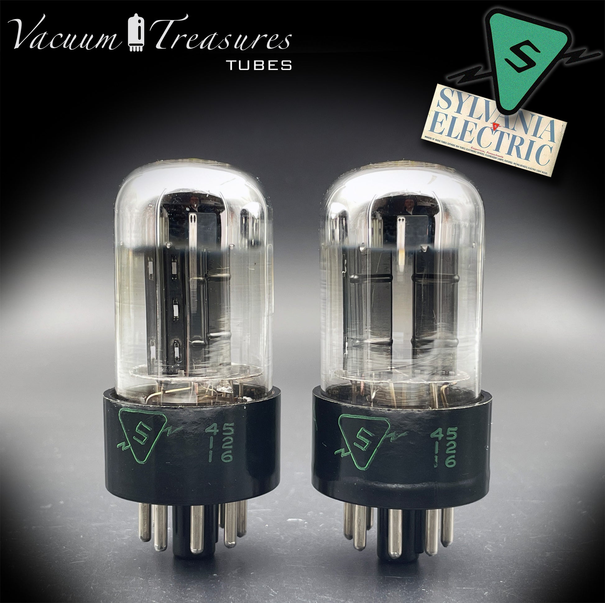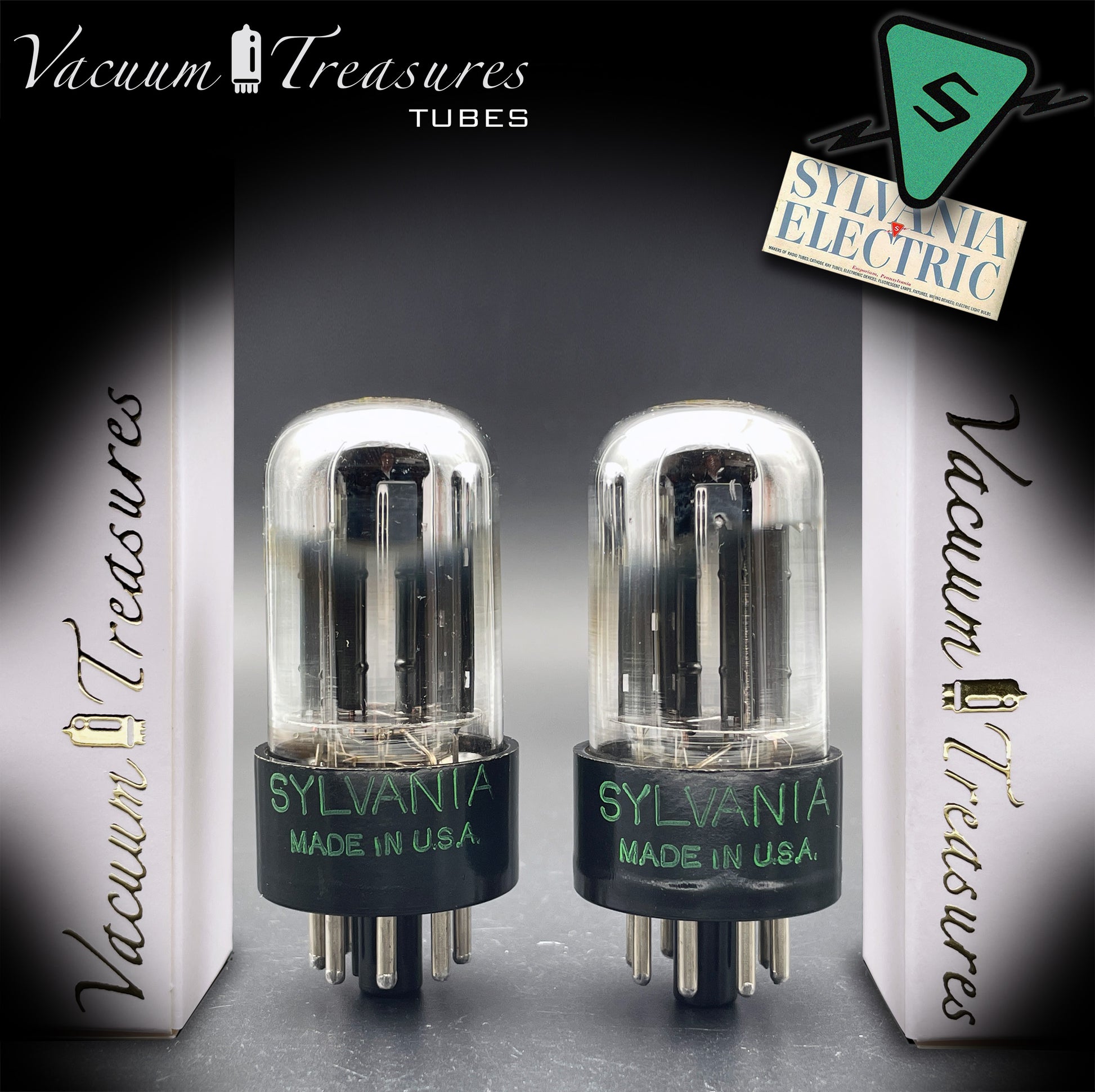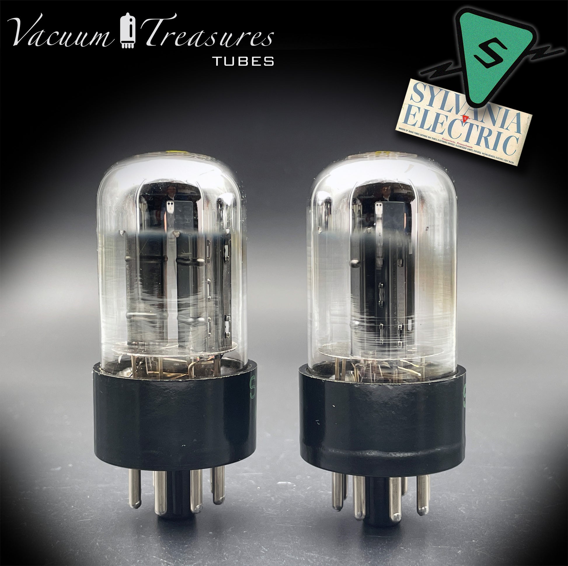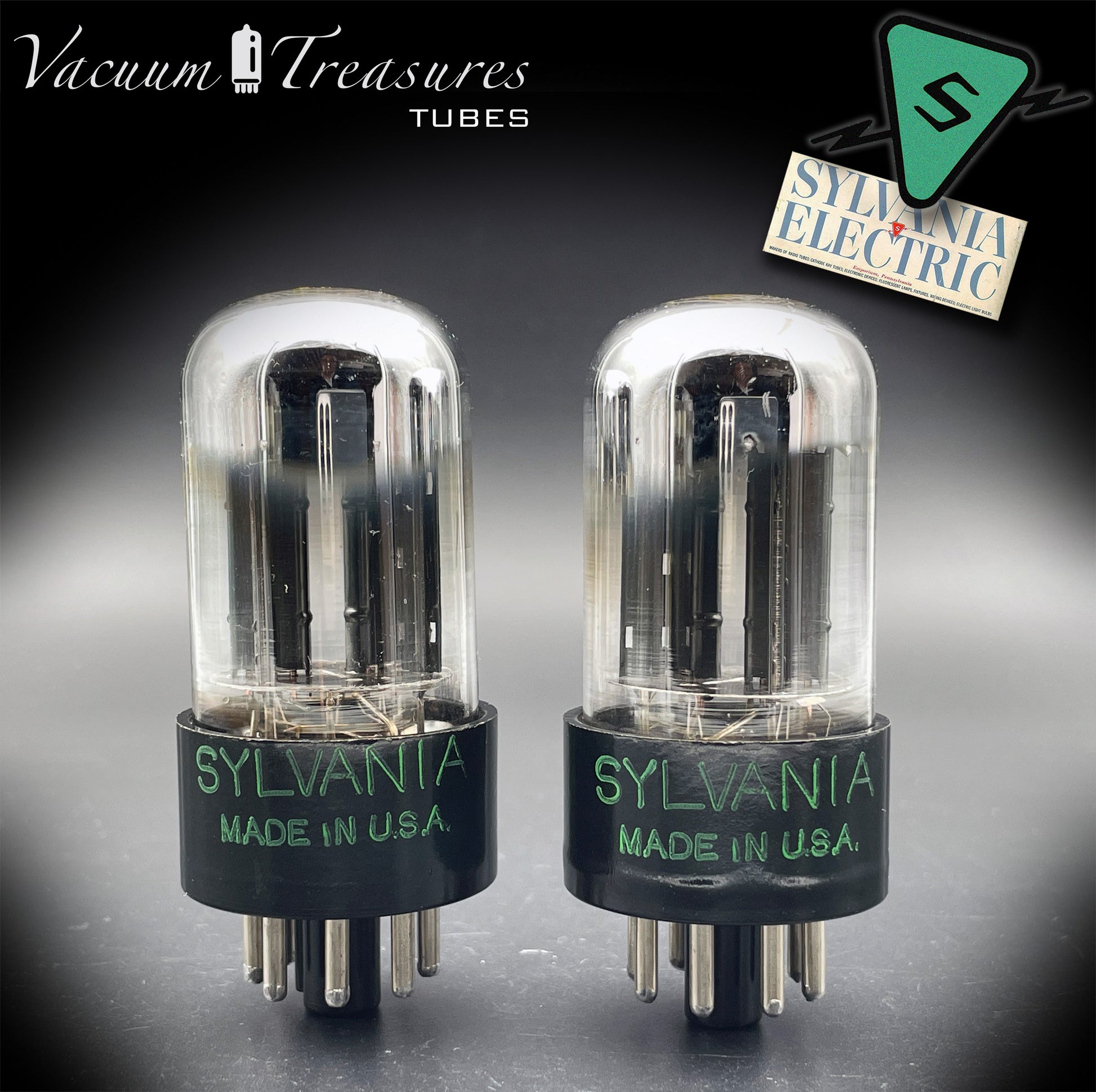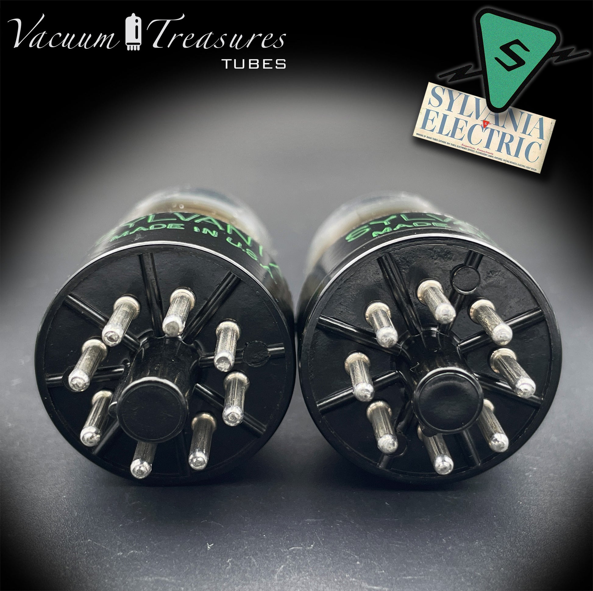 6SN7GTB NOS SYLVANIA CHROME TOP Matched Pair Low Noise & Mic Black Plates Tubes USA 1955