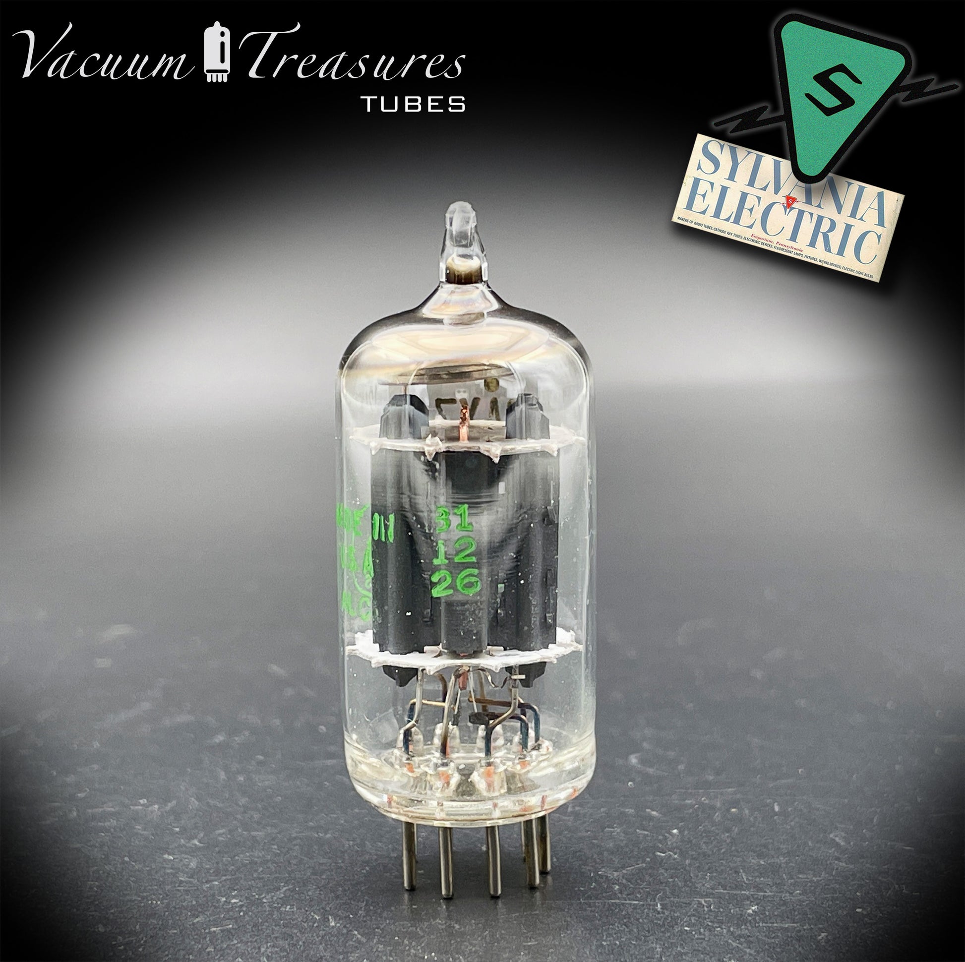 12AX7 ( ECC83 ) Baldwin by SYLVANIA Long Gray plates Halo Getter Tested Tube Made in USA