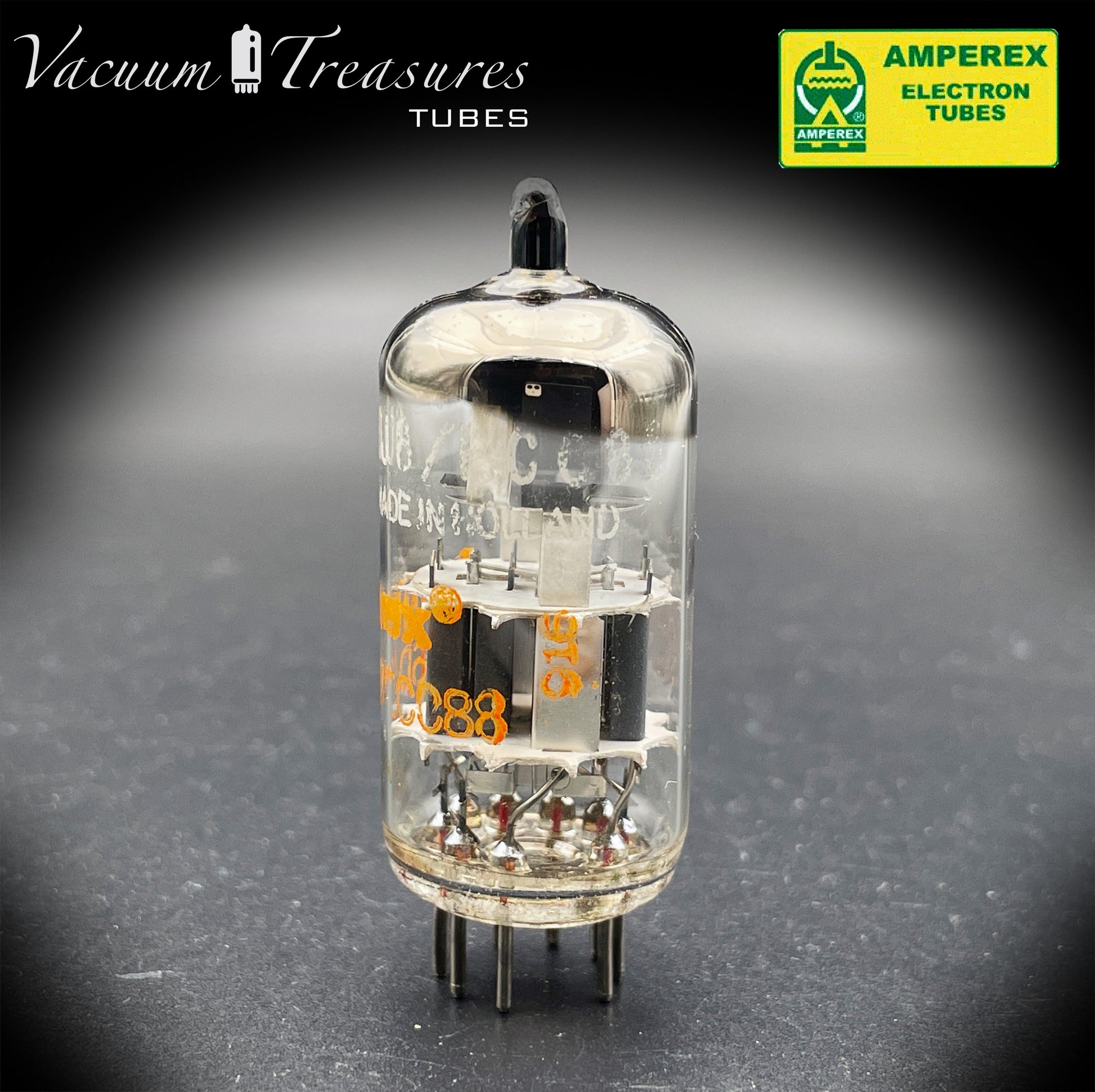 ECC88 6DJ8 NOS AMPEREX Disc Getter AMPLITREX Tested Tube Made in HOLLAND '60s