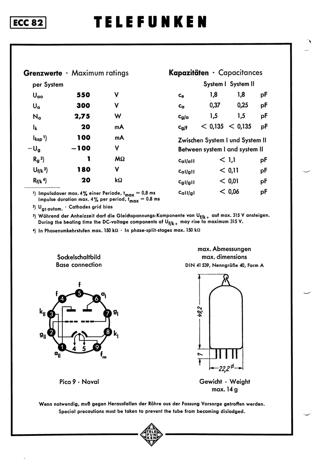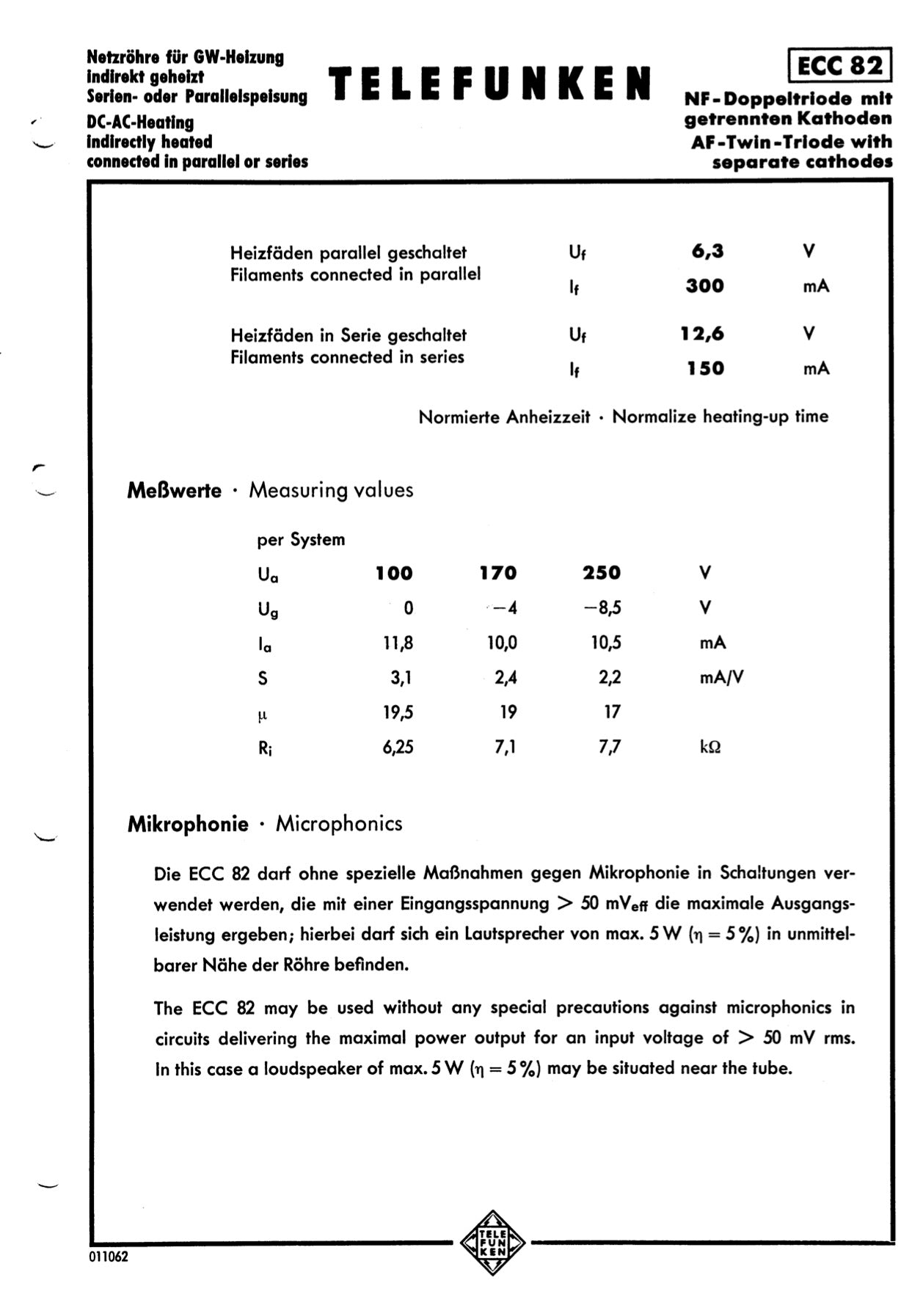 • Produzione originale Telefunken – Made in W. Germany