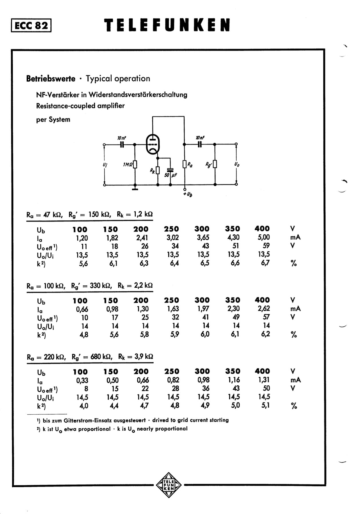 • Media 100%: Gm = 2200 ; Ia = 10.5 mA